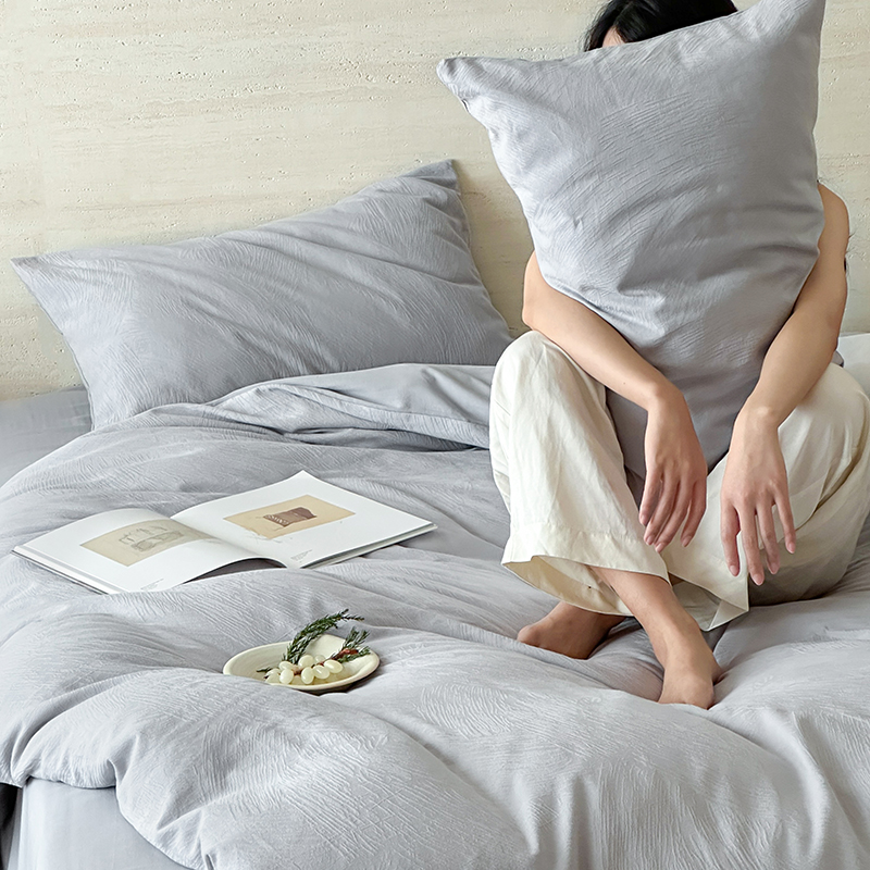 梦享生活家居 2025新款全棉三层肌理提花四件套-素写系列 素写-银灰