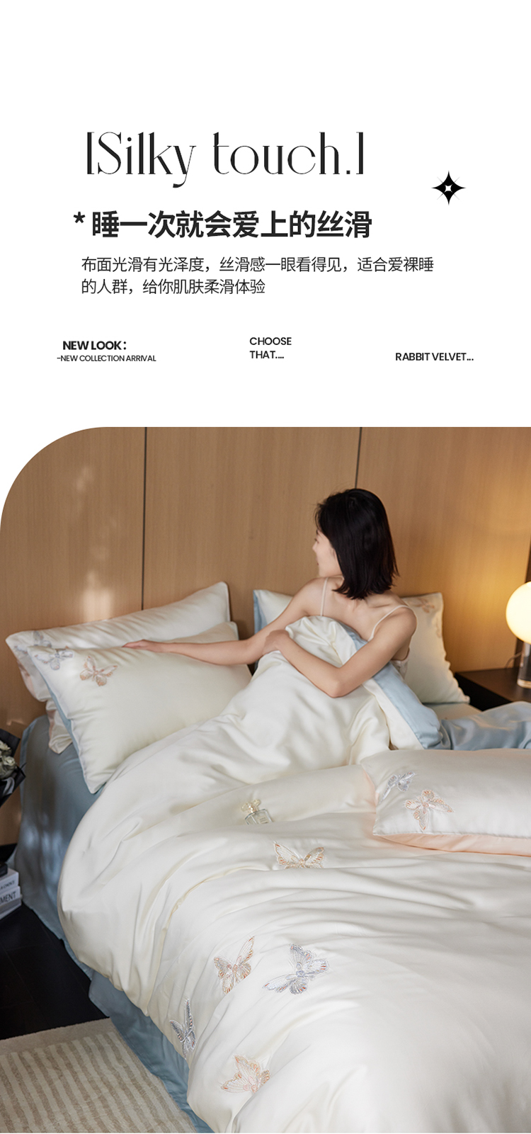 当前位置: 91家纺网 > 商品网购 > 床品套件 > 四件套 > 莱赛尔四件套 > 简纯主义 2025新款 庄周梦蝶天丝四件套 梦蝶蓝