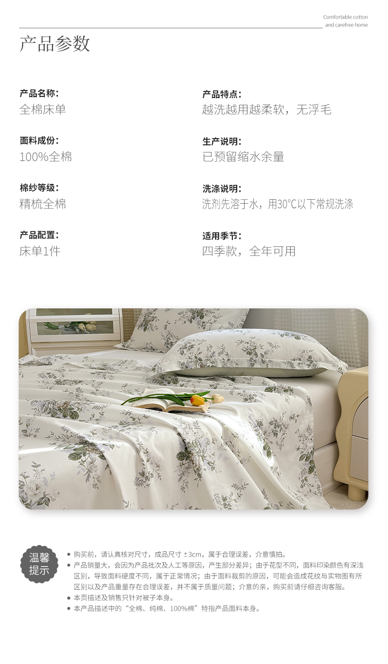 商品名称:元元被芯 2025新款40支13372全棉印花全棉床单 若萱