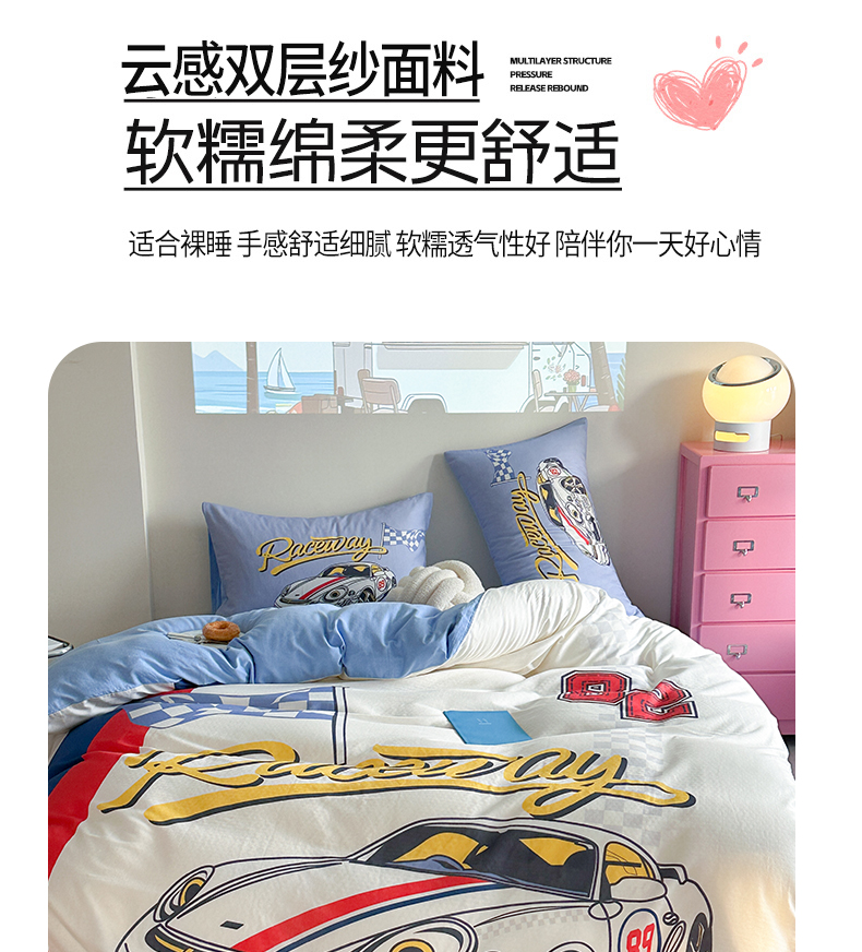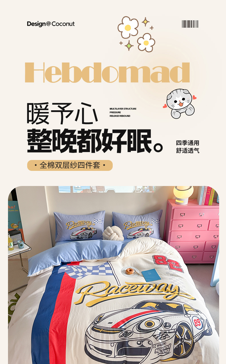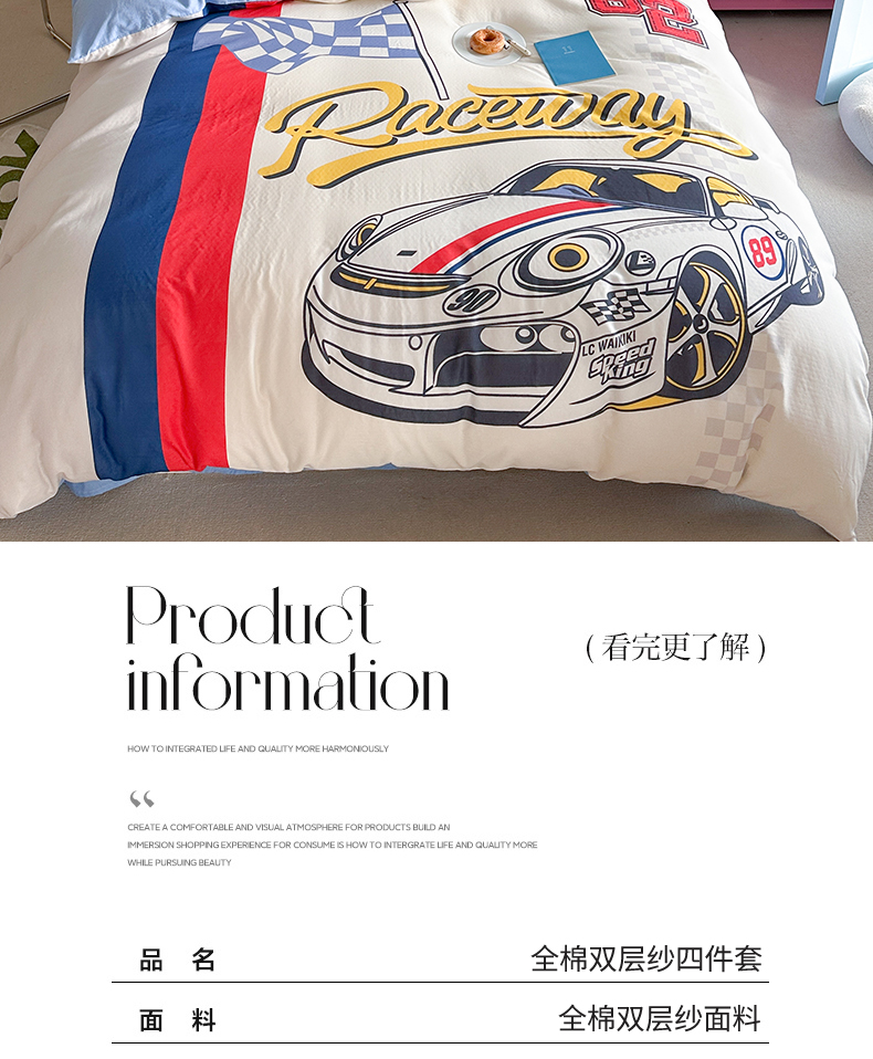 当前位置: 91家纺网 > 商品网购 > 床品套件 > 四件套 > 双层纱四件套 > 馨语家居 2025新款全棉双层纱四件套 速度之王