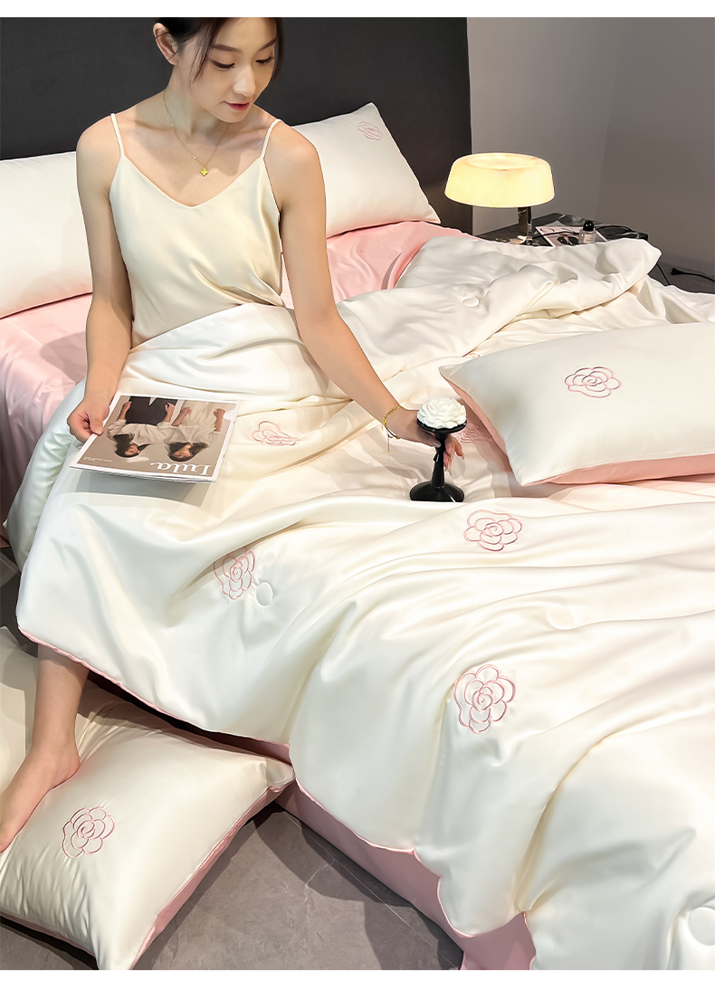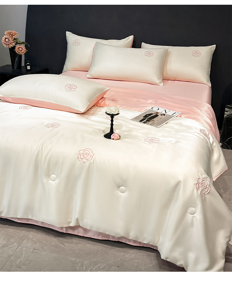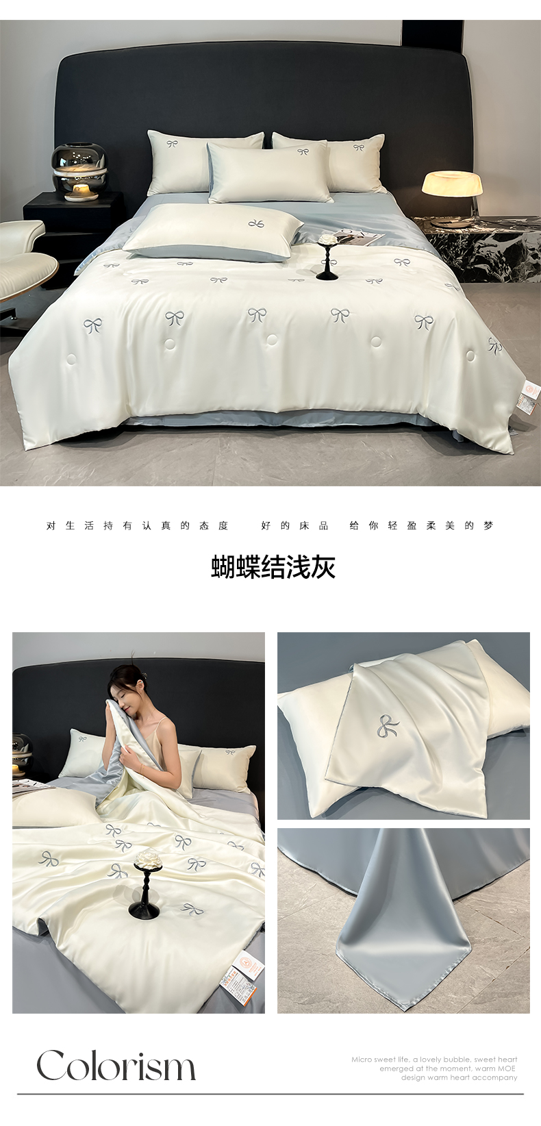 (总)宇航家纺 2025新款水洗真丝天丝绣花夏被四件套夏凉被空调被 单夏被,山茶花白拼粉玉,蝴蝶结白拼浅灰,蝴蝶结白拼浅香槟,蝴蝶结白拼深灰,蝴蝶结白拼天蓝,蝴蝶结白拼粉玉,山茶花白拼浅灰,山茶花白拼浅香槟,山茶花白拼深灰,山茶花白拼天蓝
