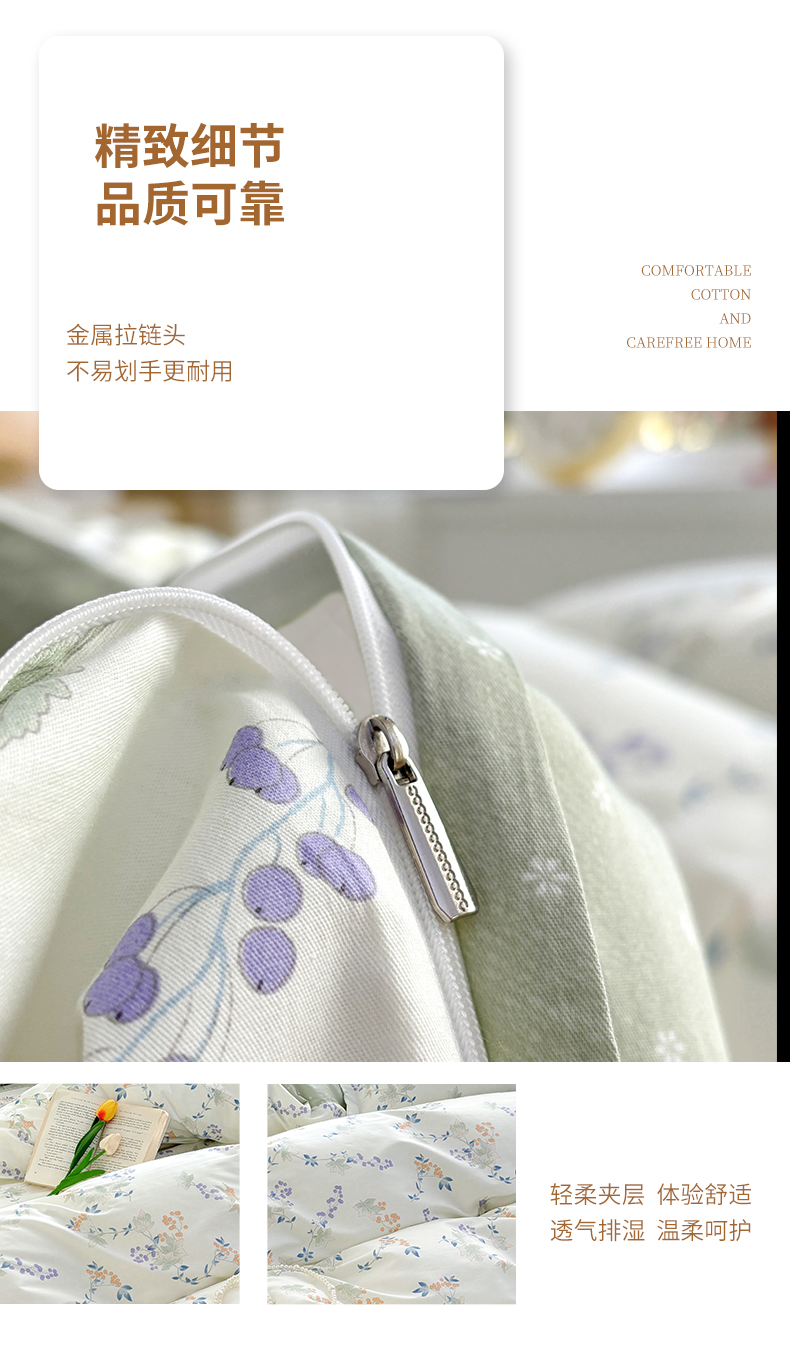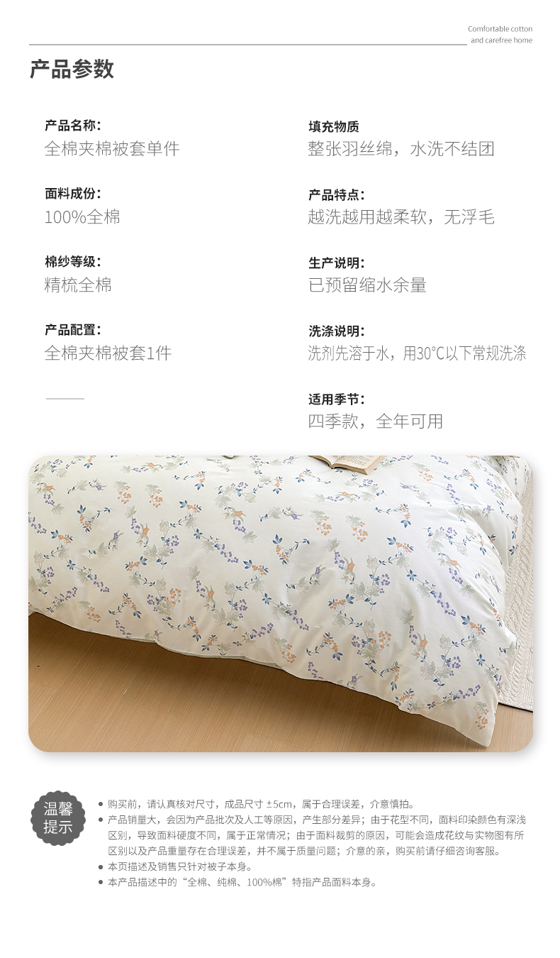 商品名称:元元被芯 2025新款40支13372全棉印花全棉隐藏式夹棉被套 硕果