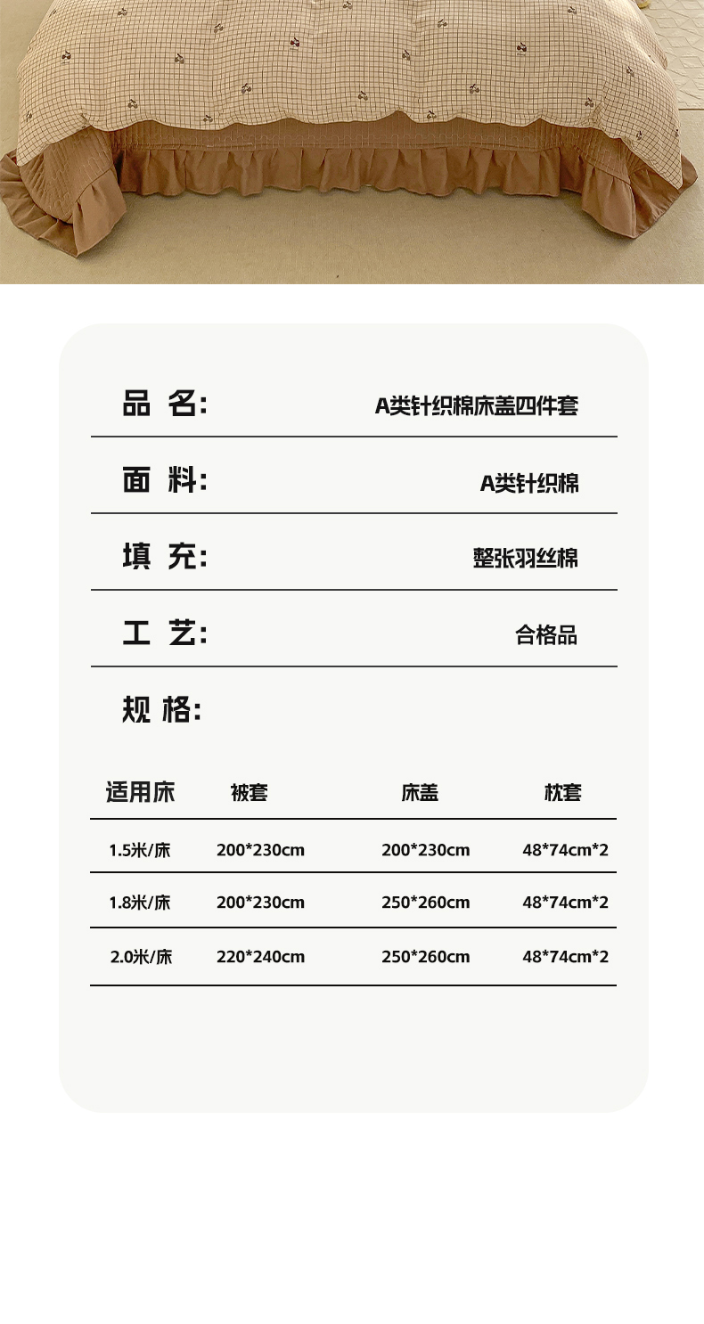 商品名称:梦莱斯 2025直播爆款公主风A类针织棉床盖四件套AA版被套 樱桃派对