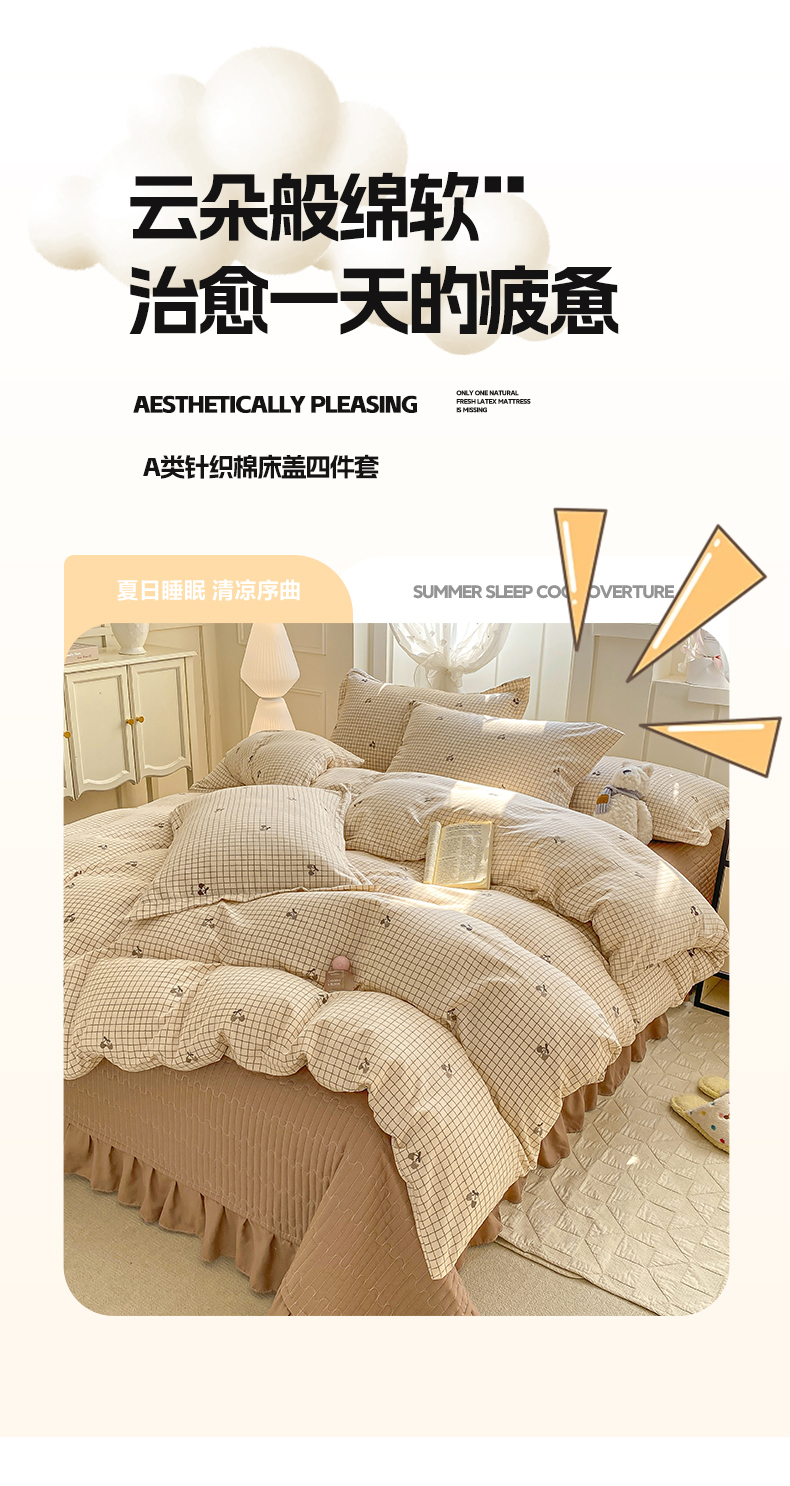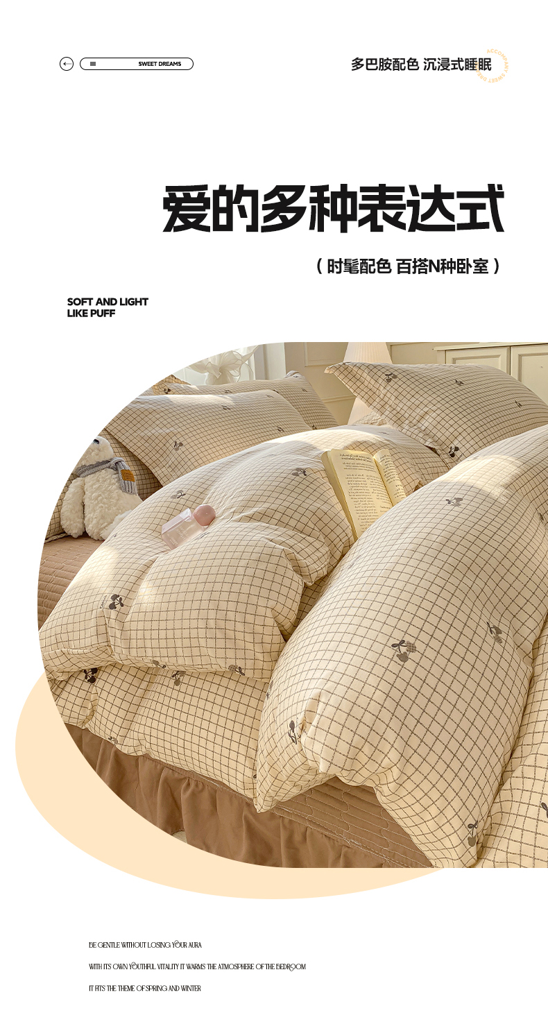 (总)梦莱斯 2025新款高克重云感棉四件套-花边款,赫拉,花盖绿,花盏灰,罗逸维绿,梦想熊,秋日记忆粉,若梦红,庭院春深,樱桃季,星星狗,灰调花笺,浅褐疏影,柔紫花绪,紫雾漫花