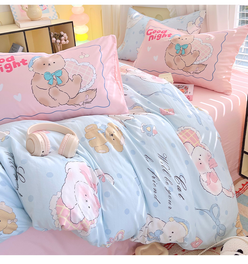 大麦乐田2025新款超柔大版印花四件套 少女心粉