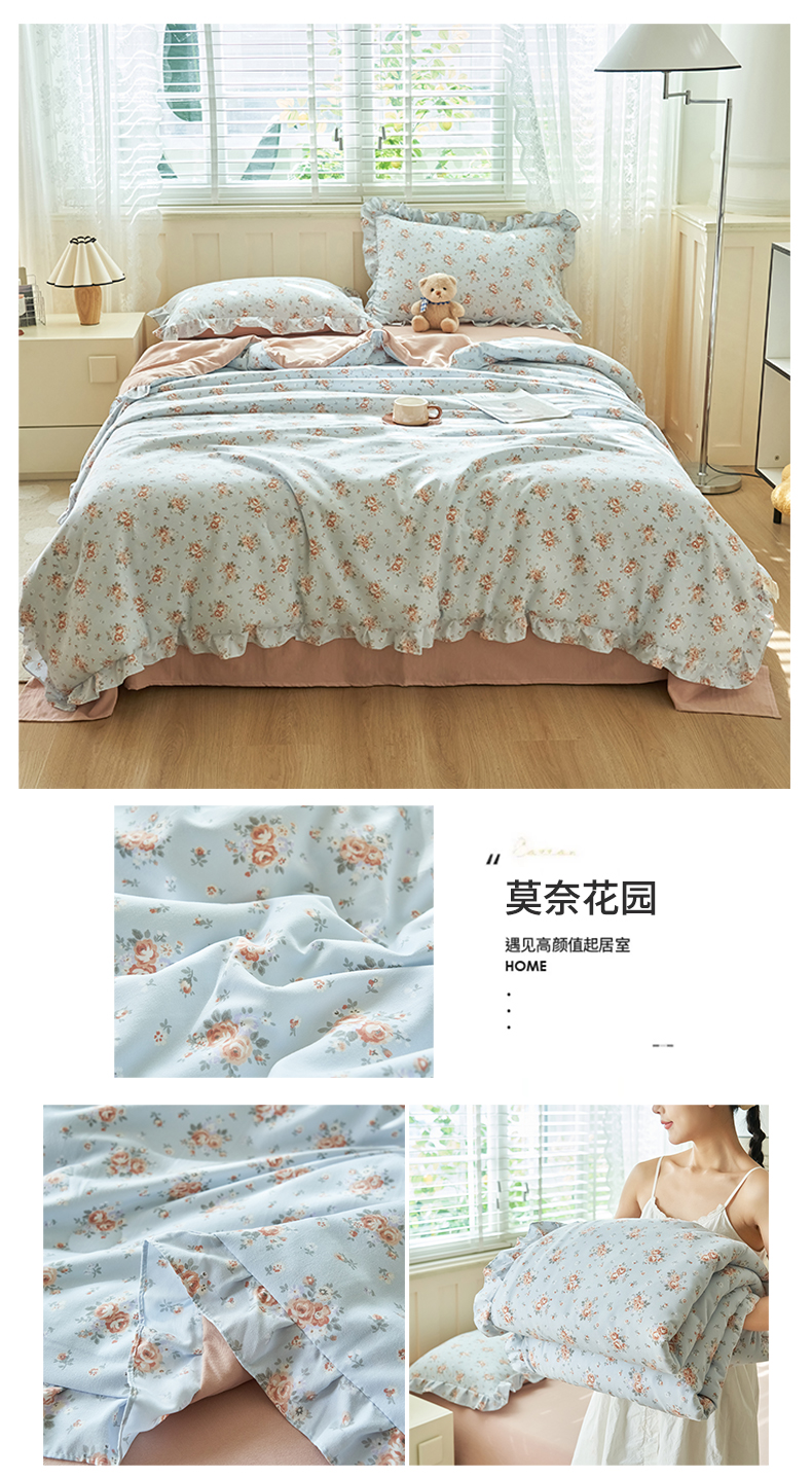 • 91家纺网 家纺一手货源 找家纺 换种生活 2025新款荷叶边款针织单夏被 四件套 莫奈花园