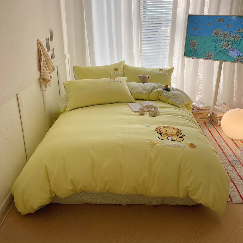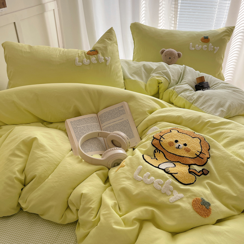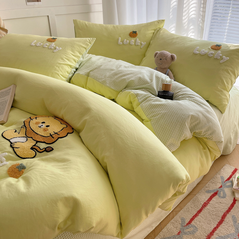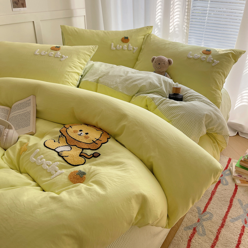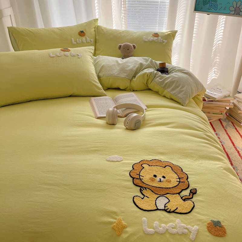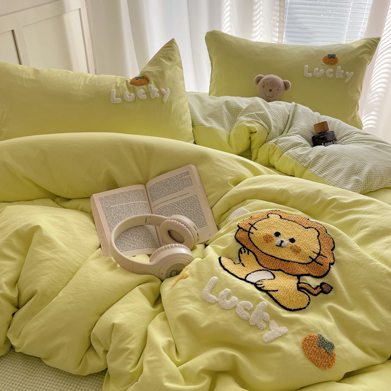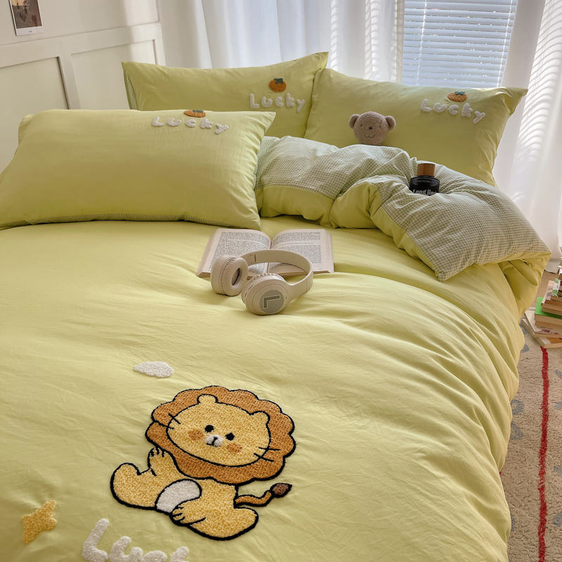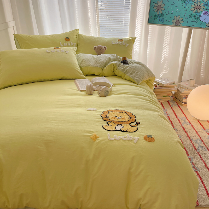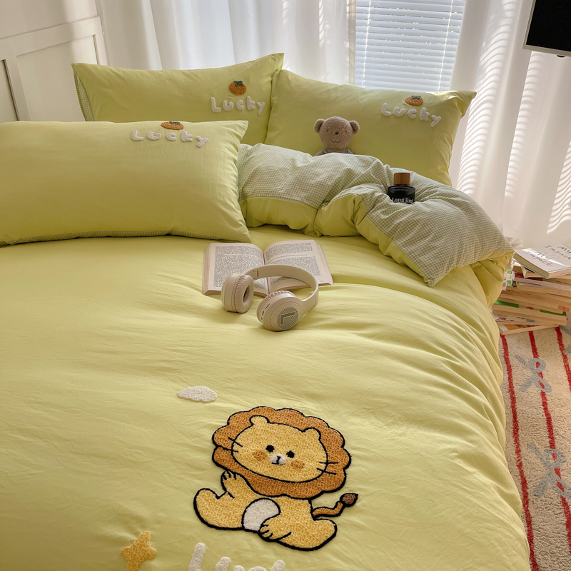 当前位置: 91家纺网 > 商品网购 > 床品套件 > 四件套 > 毛巾绣四件套 > 凯洛奇 2025新款1格子水洗棉卡通毛巾绣四件套 小狮子-黄绿