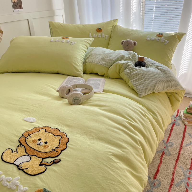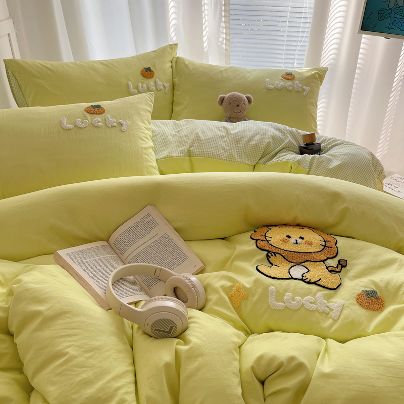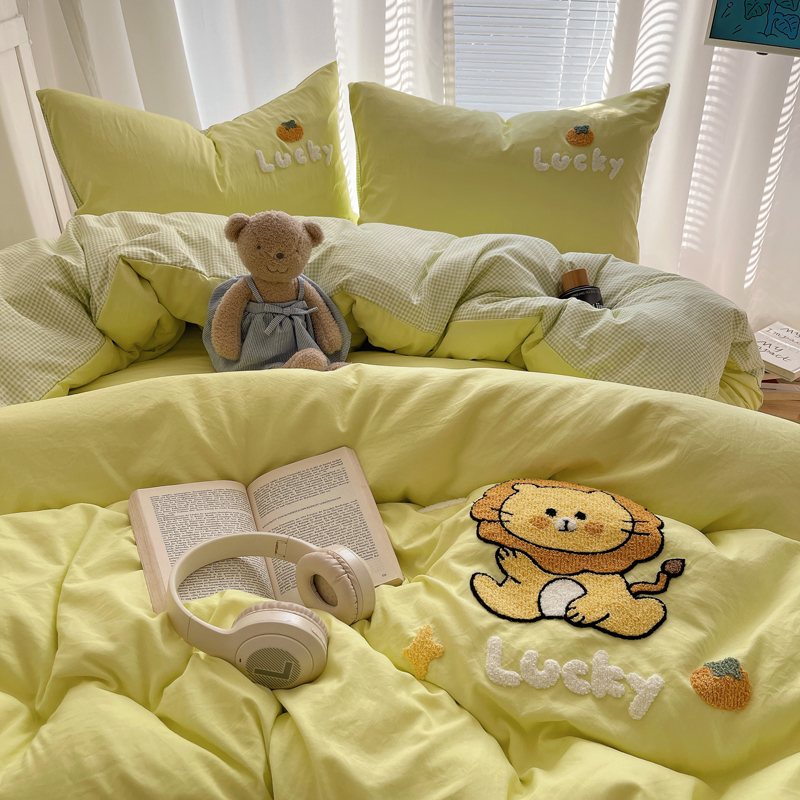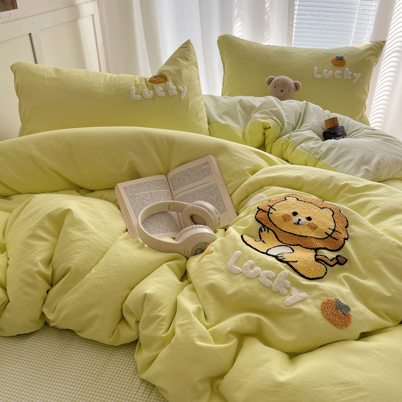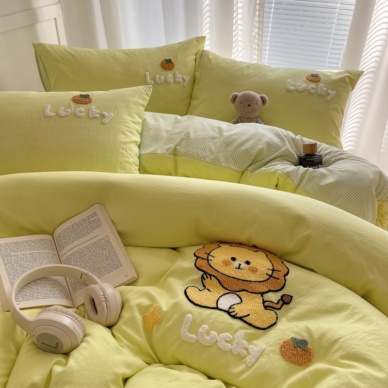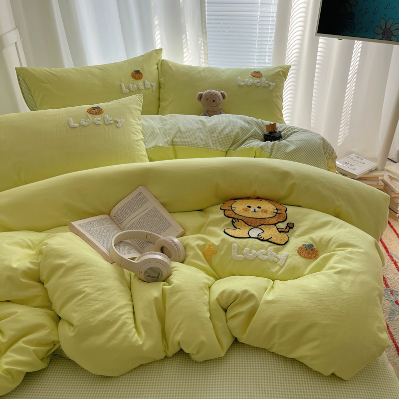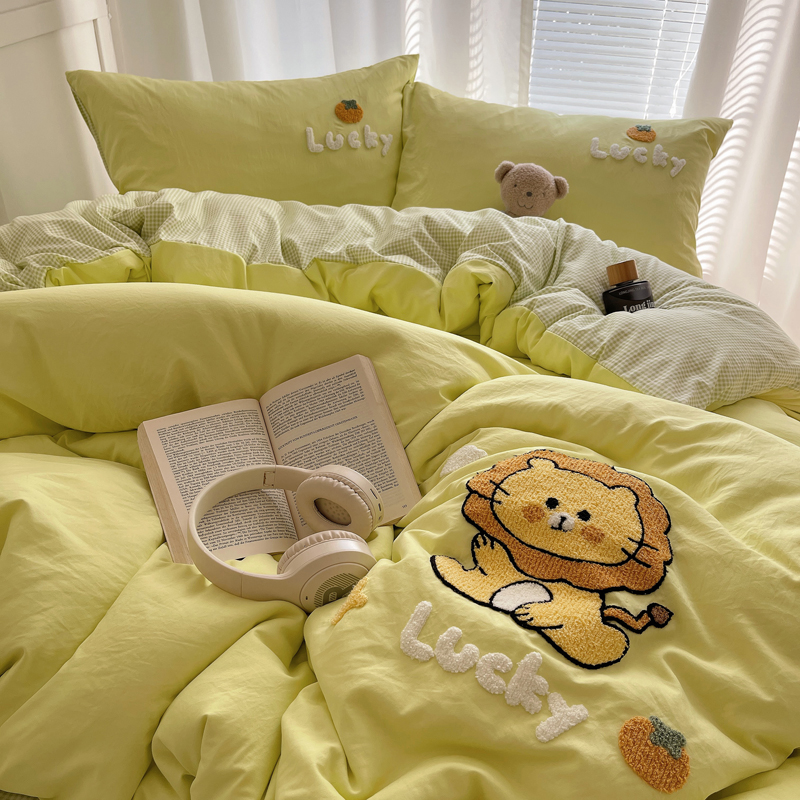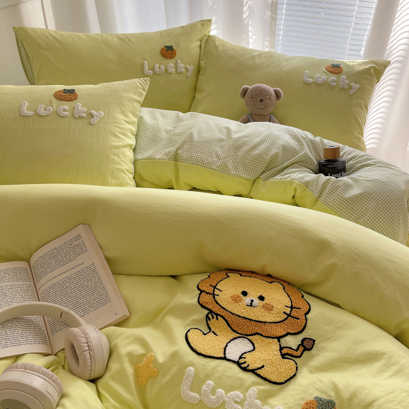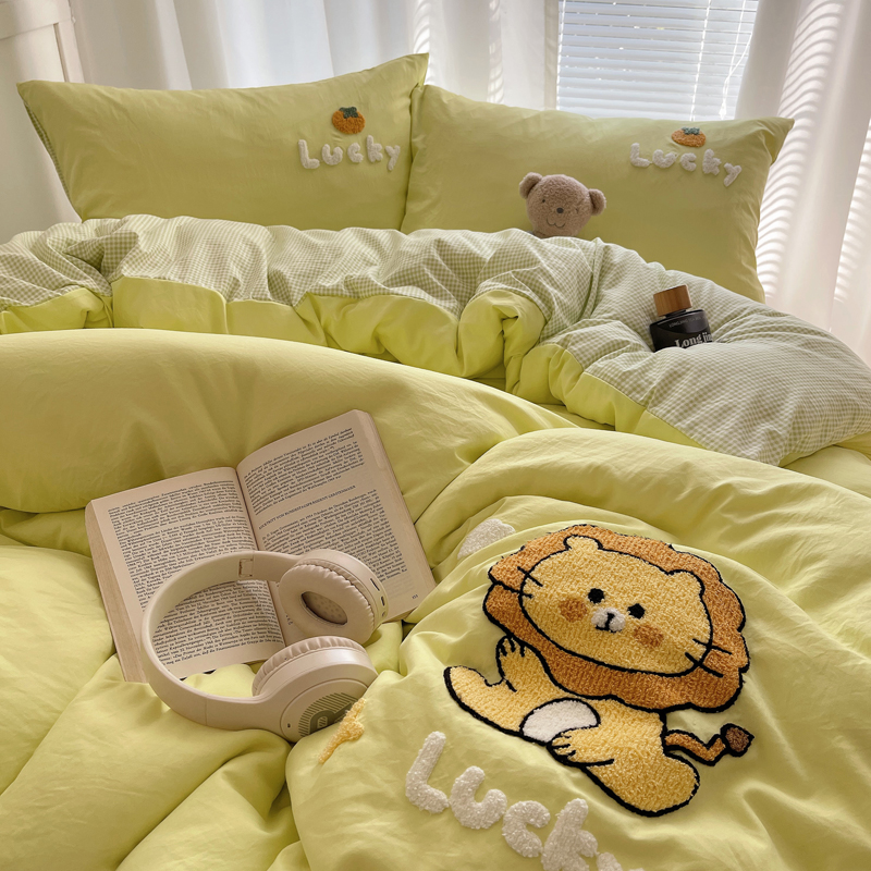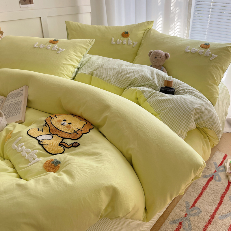 当前位置: 91家纺网 > 商品网购 > 床品套件 > 四件套 > 毛巾绣四件套 > 凯洛奇 2025新款1格子水洗棉卡通毛巾绣四件套 小狮子-黄绿