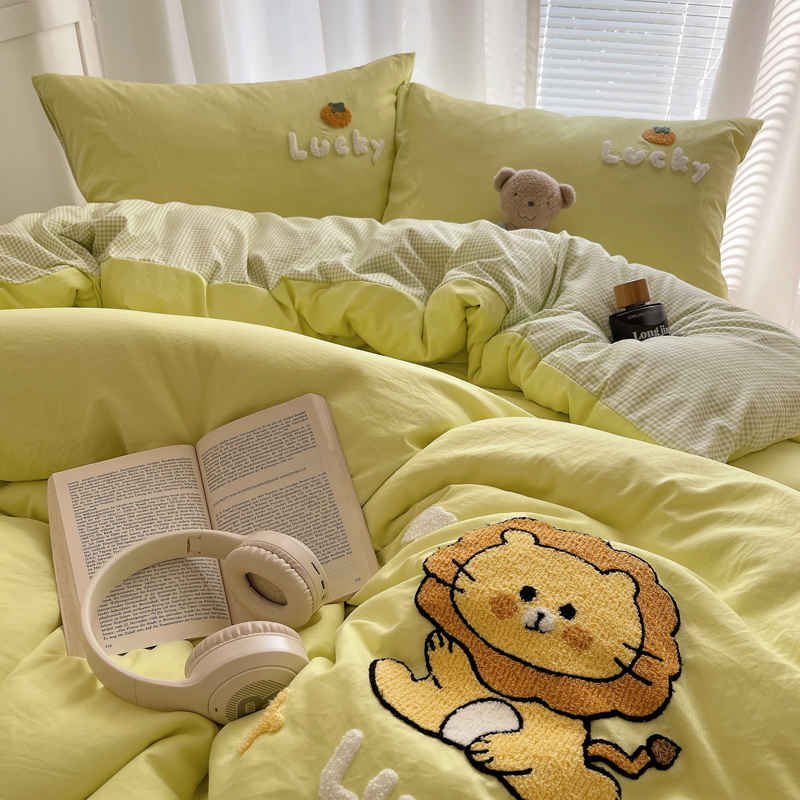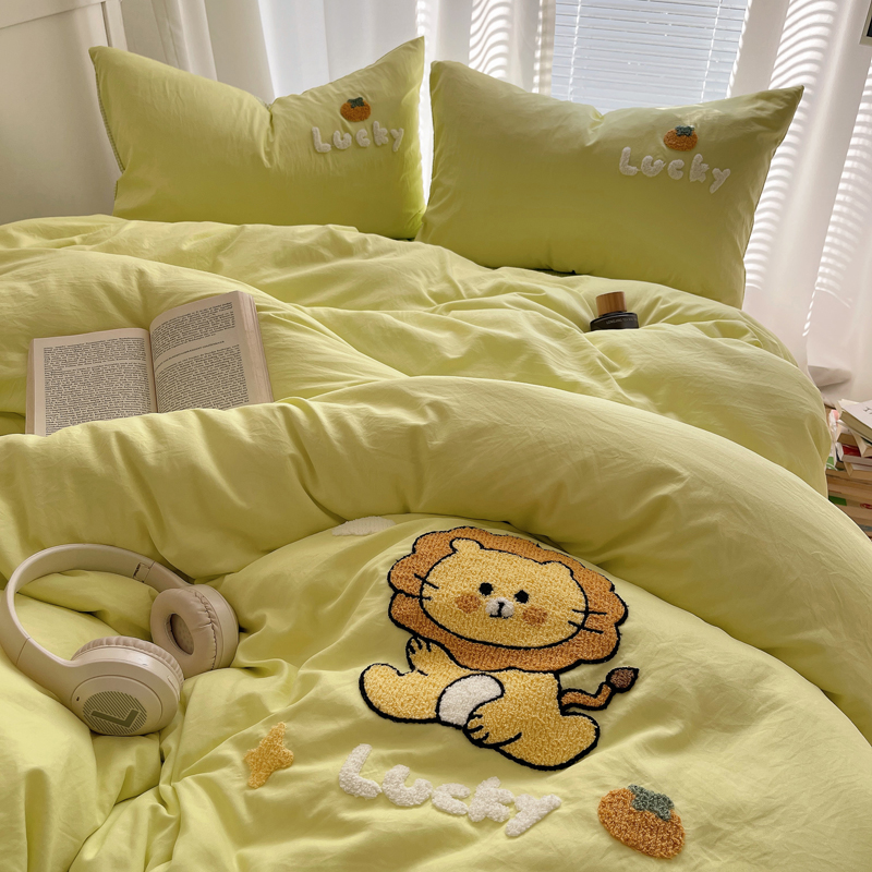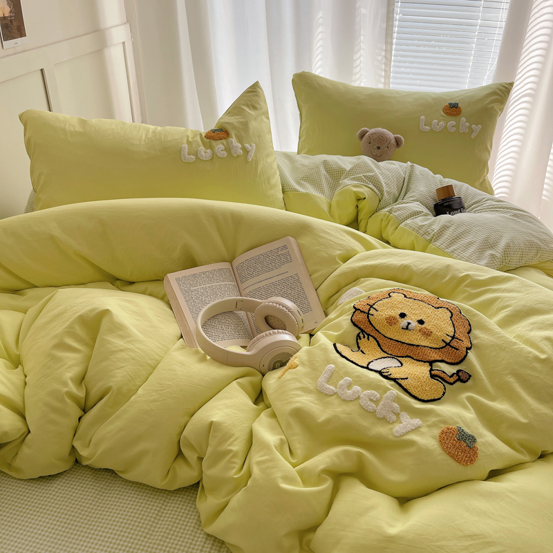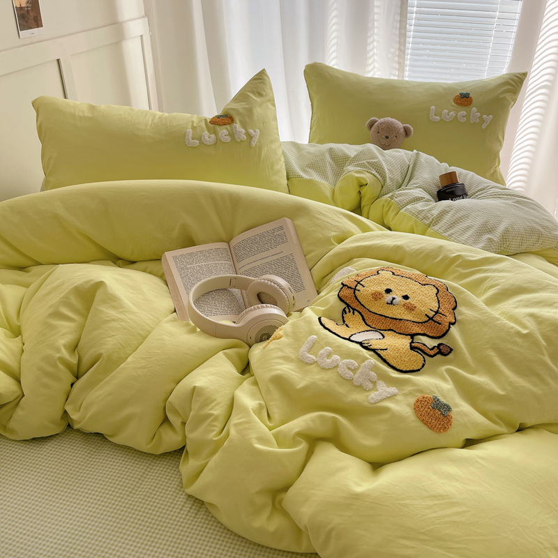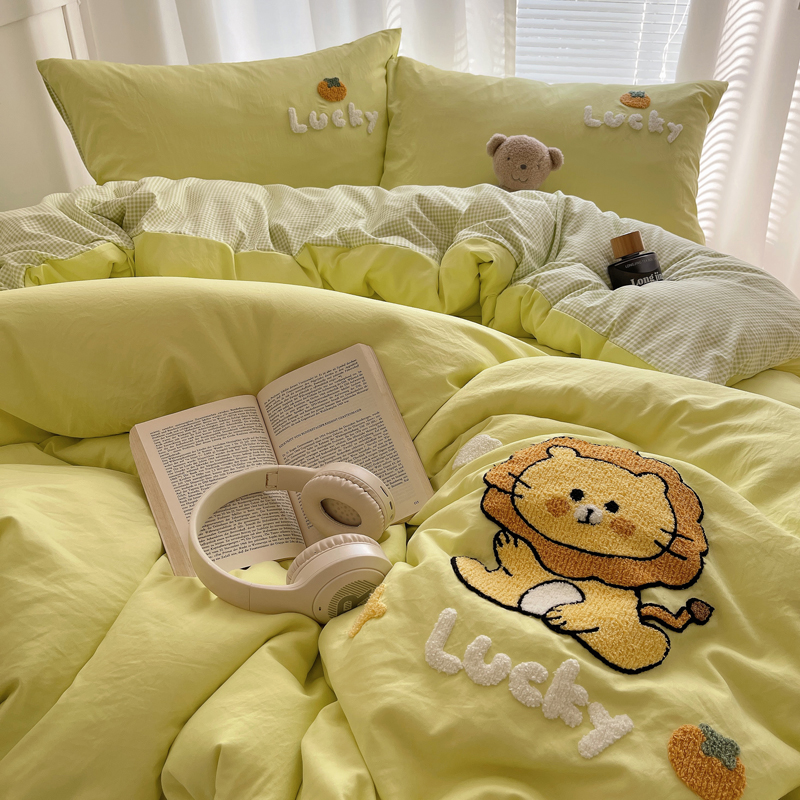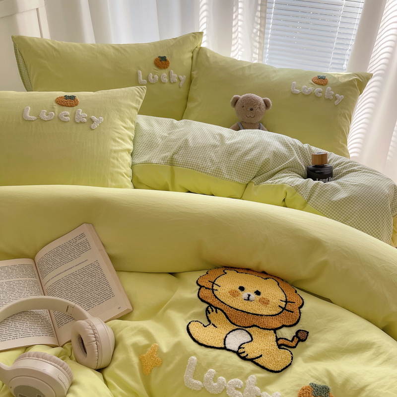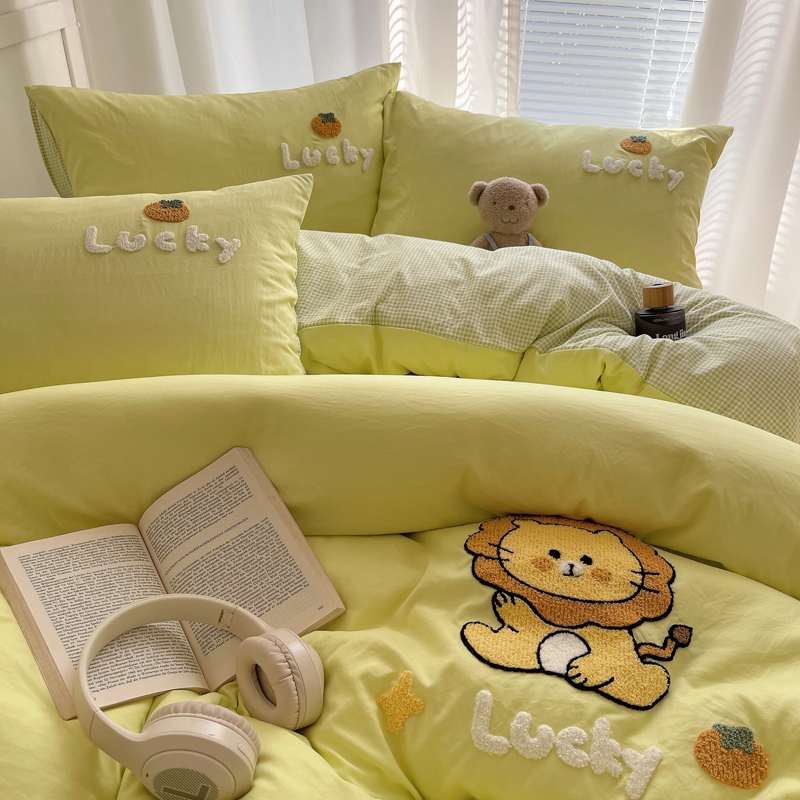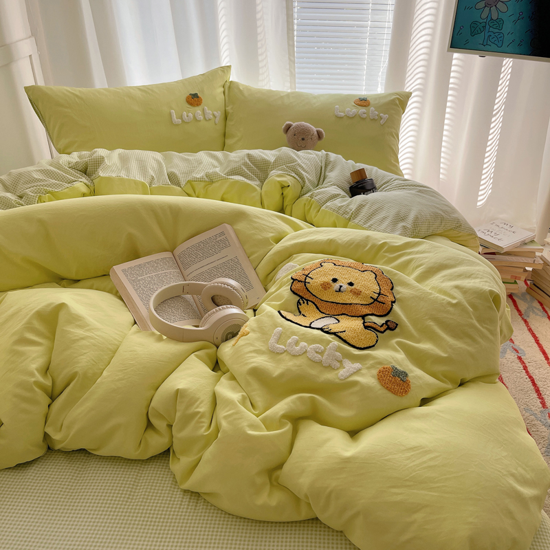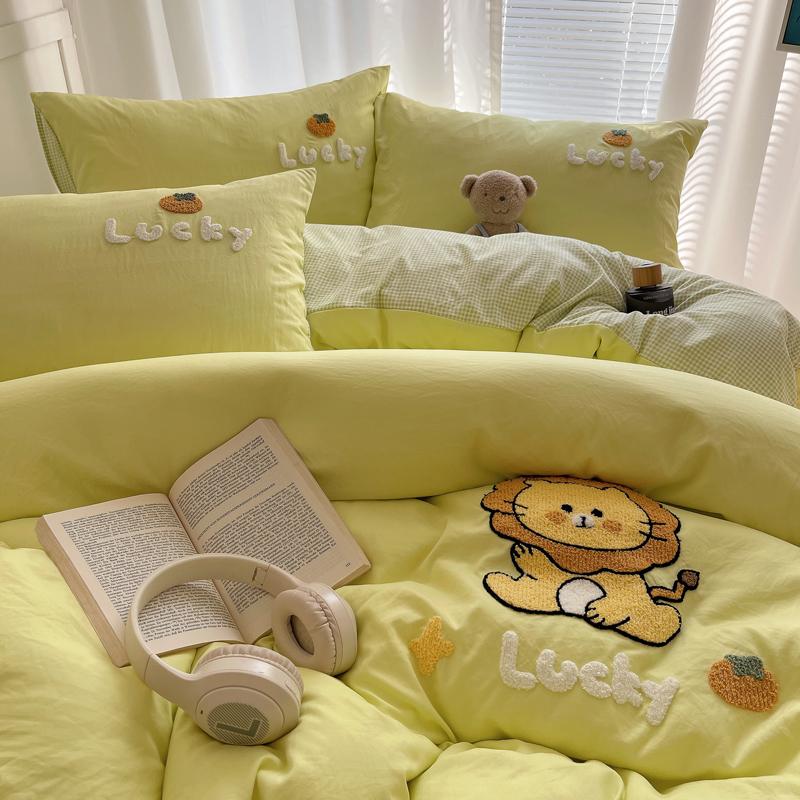当前位置: 91家纺网 > 商品网购 > 床品套件 > 四件套 > 毛巾绣四件套 > 凯洛奇 2025新款1格子水洗棉卡通毛巾绣四件套 小狮子-黄绿