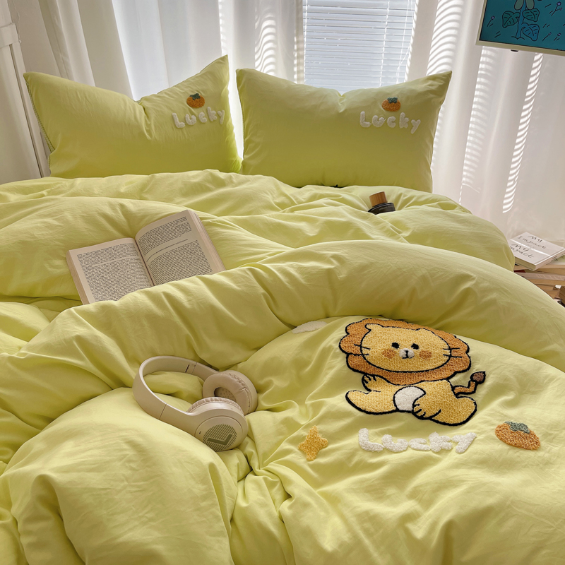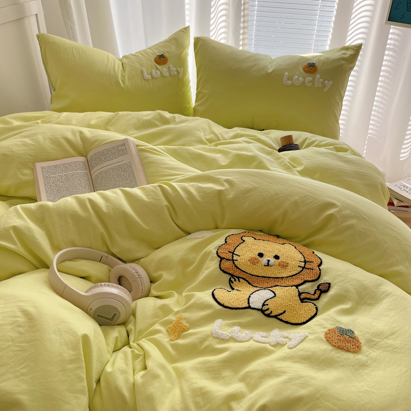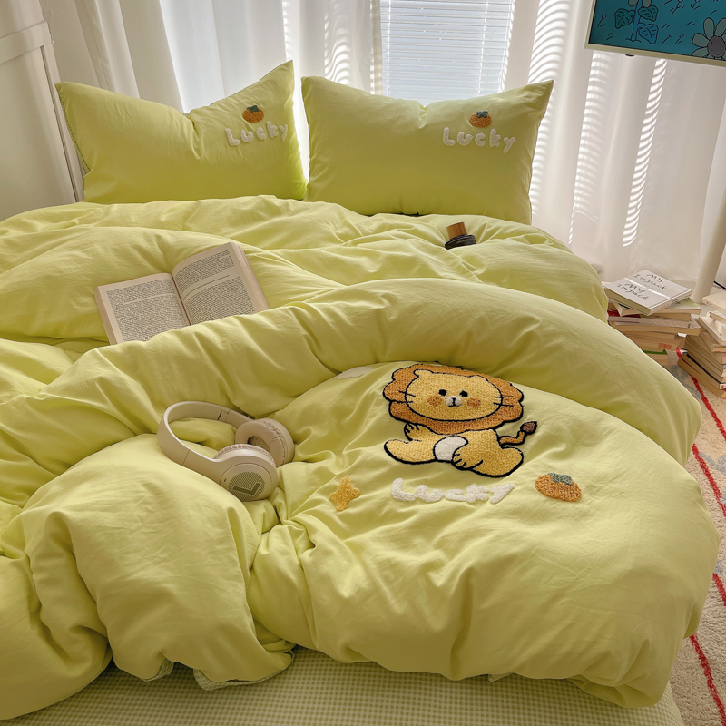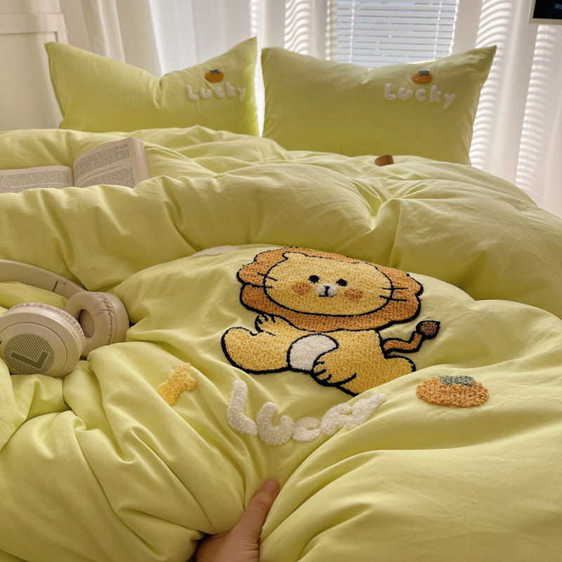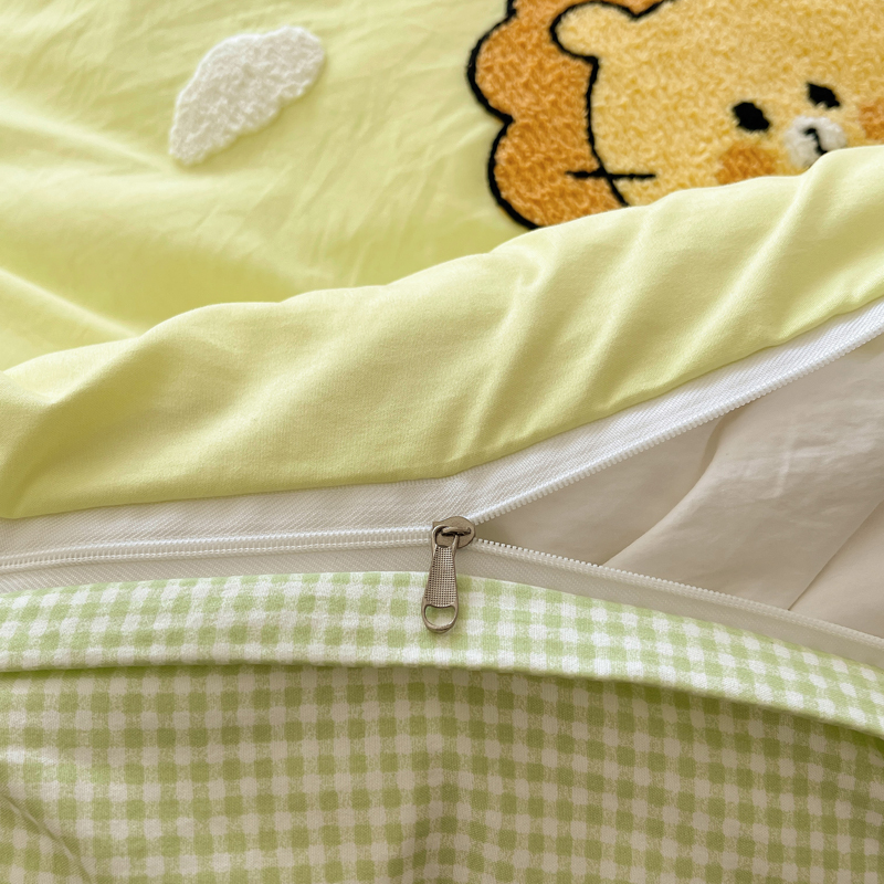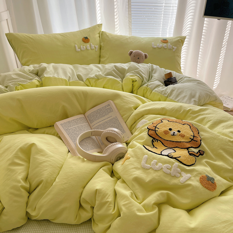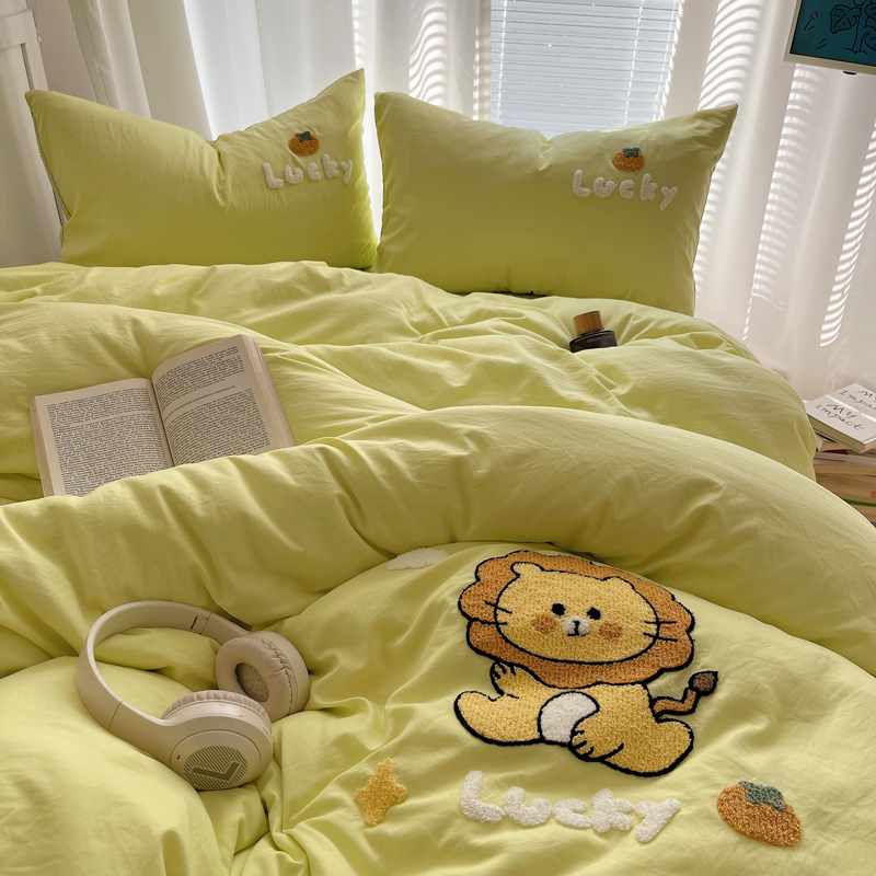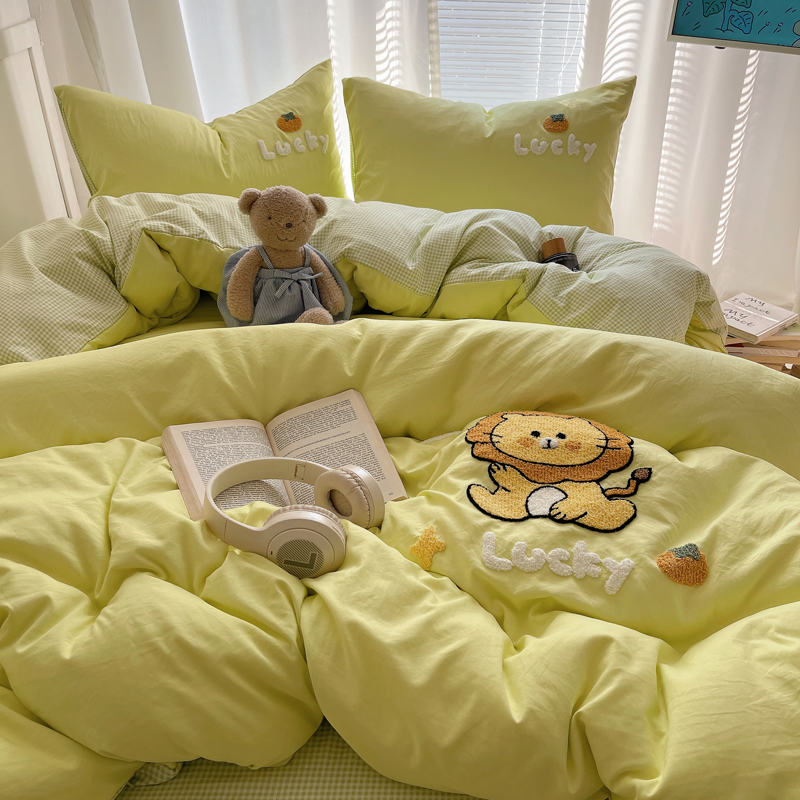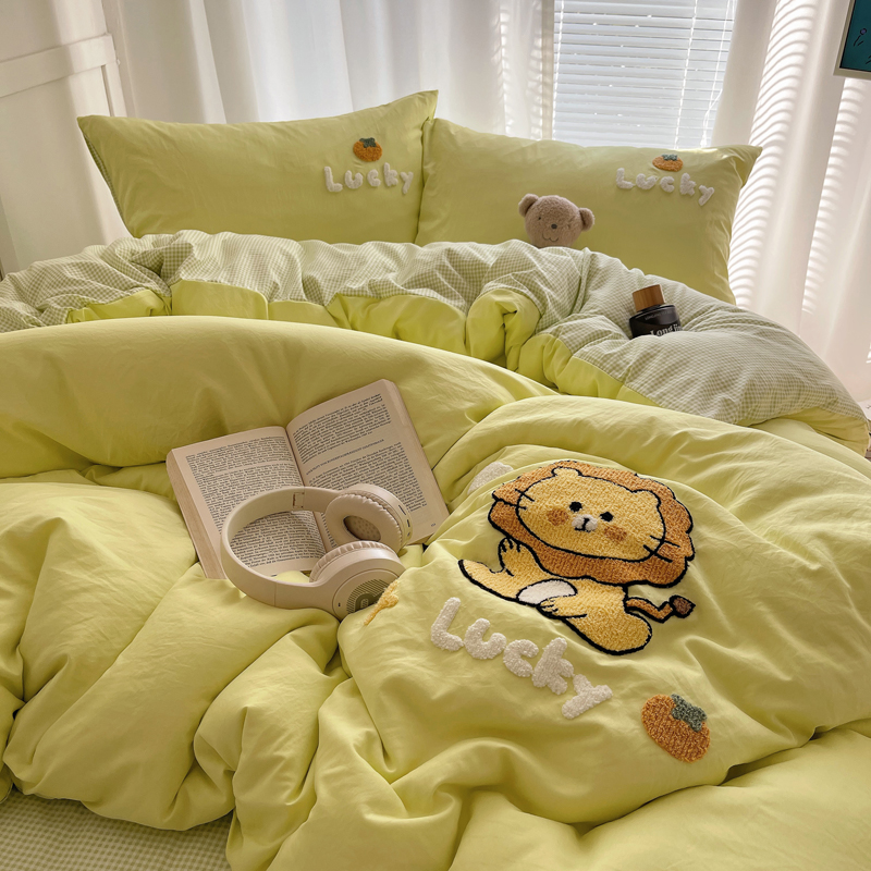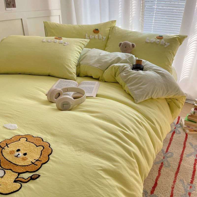当前位置: 91家纺网 > 商品网购 > 床品套件 > 四件套 > 毛巾绣四件套 > 凯洛奇 2025新款1格子水洗棉卡通毛巾绣四件套 小狮子-黄绿