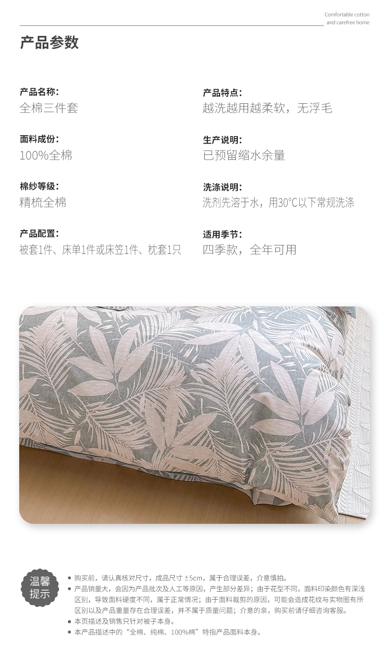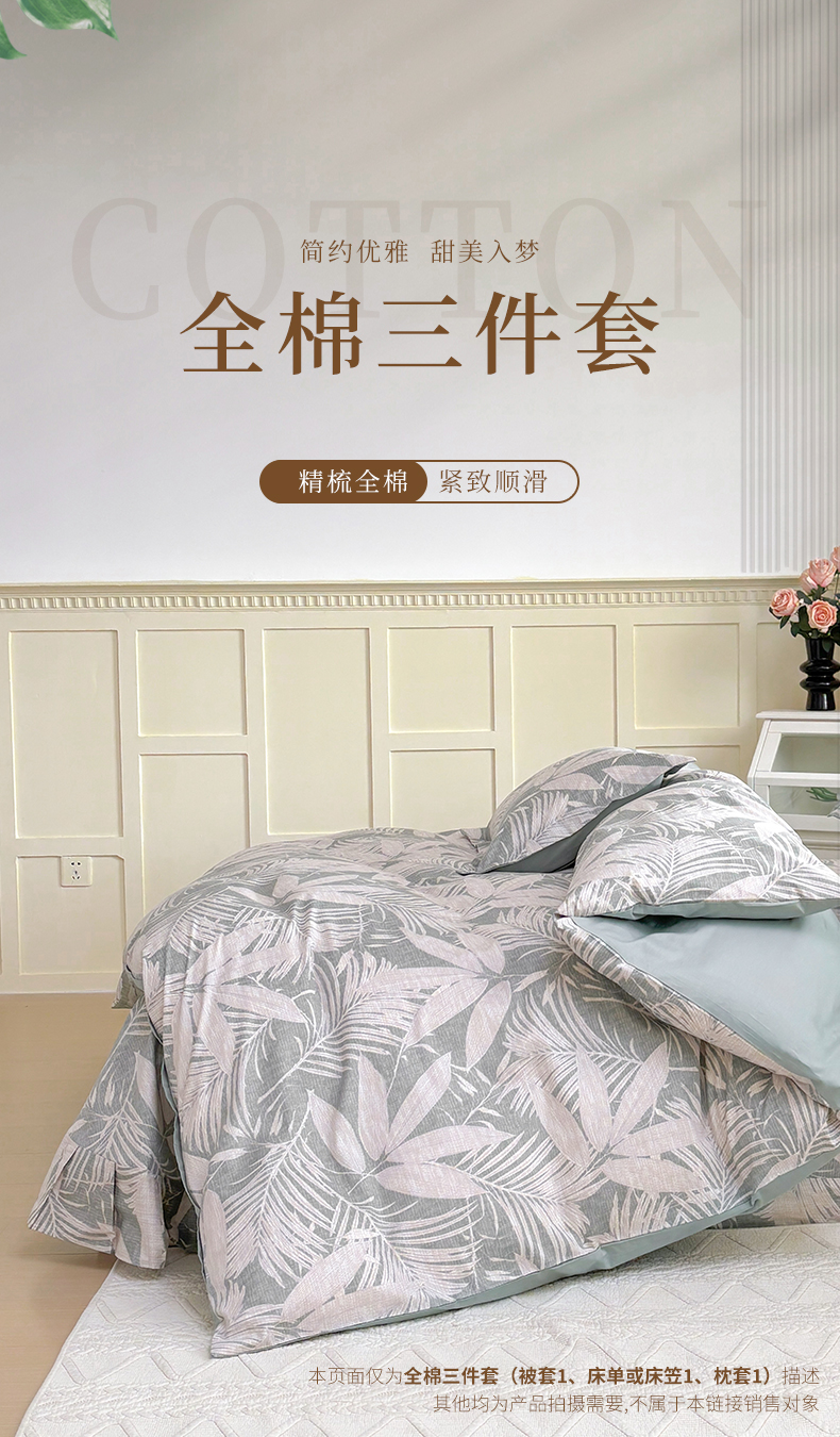 当前位置: 91家纺网 > 商品网购 > 床品套件 > 三件套 > 元元被芯 2025新款40支13372全棉印花全棉三件套 蔓羽