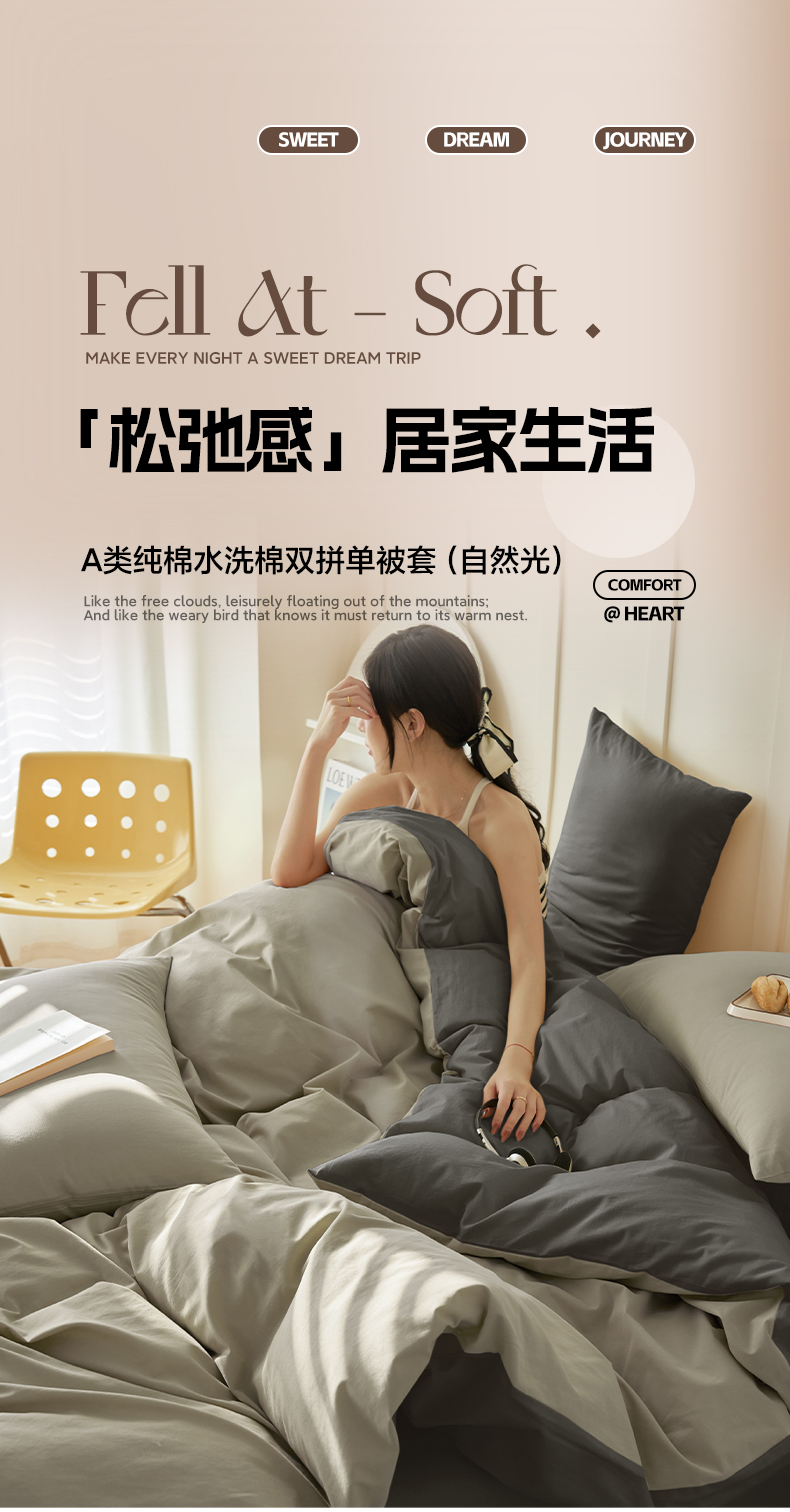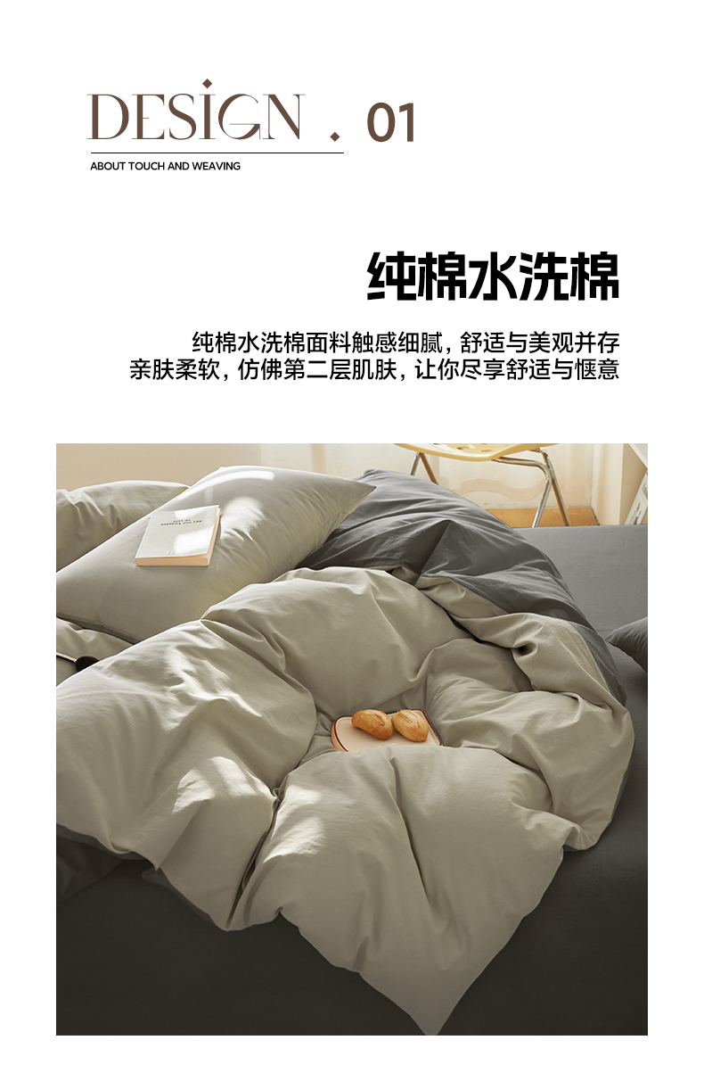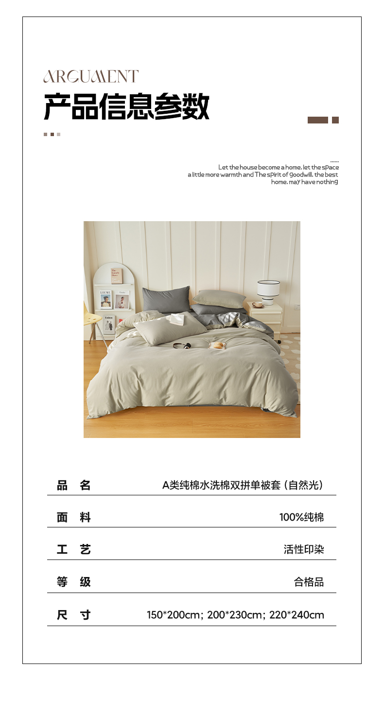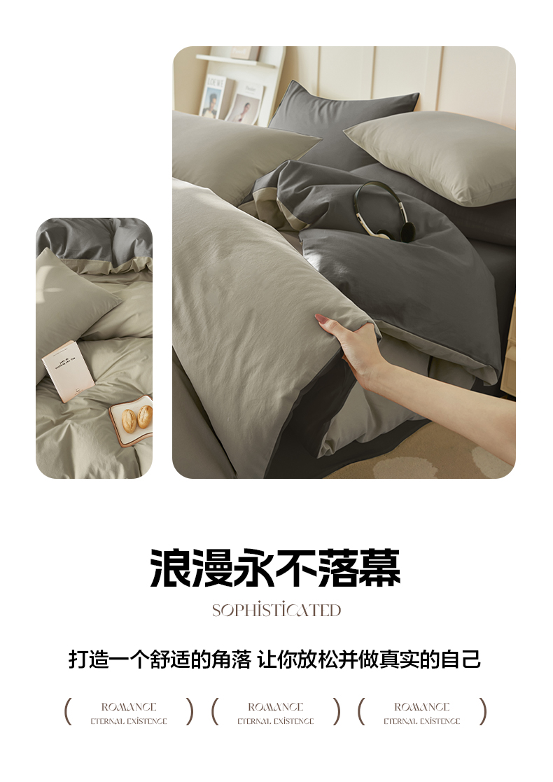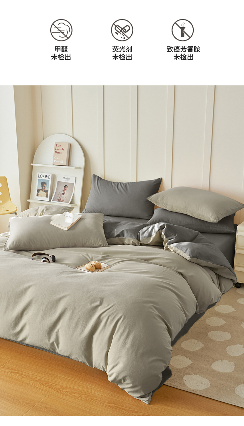 • 91家纺网 家纺一手货源 找家纺 寐绸家纺 2025新款纯棉水洗棉双拼单被套(自然光) 毛毯灰+宝藏灰