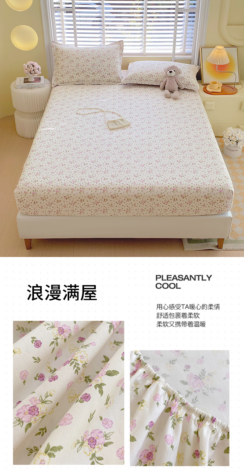 宝齐莱家纺 2025新款13372全棉印花单品系列-单床笠 浪漫满屋