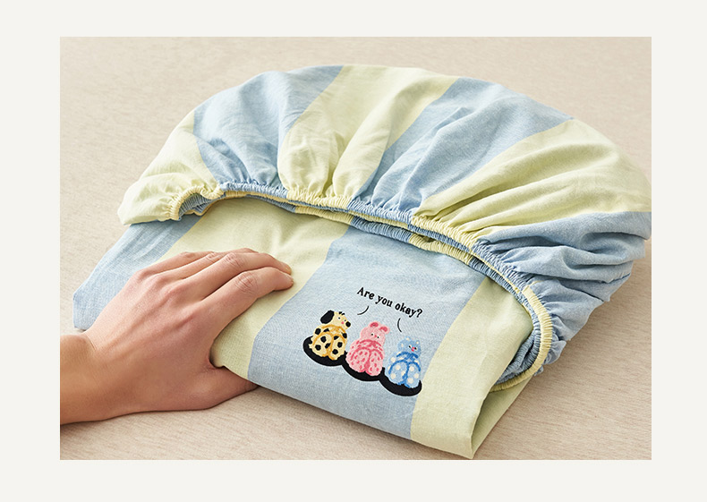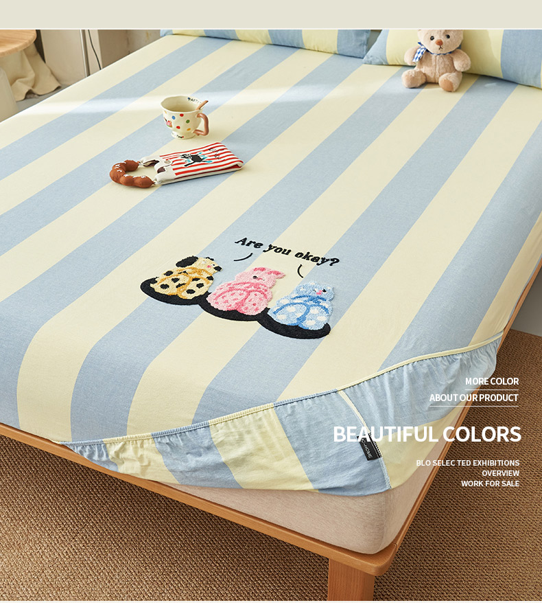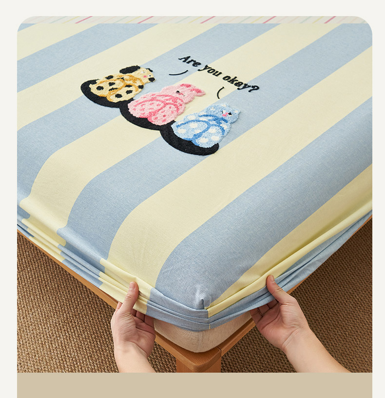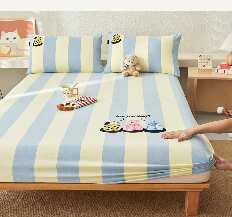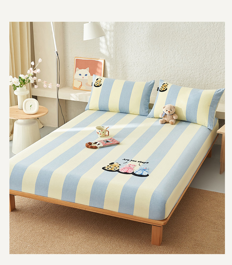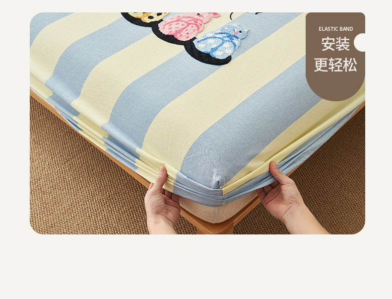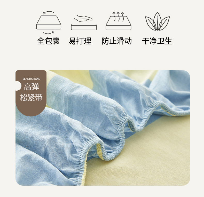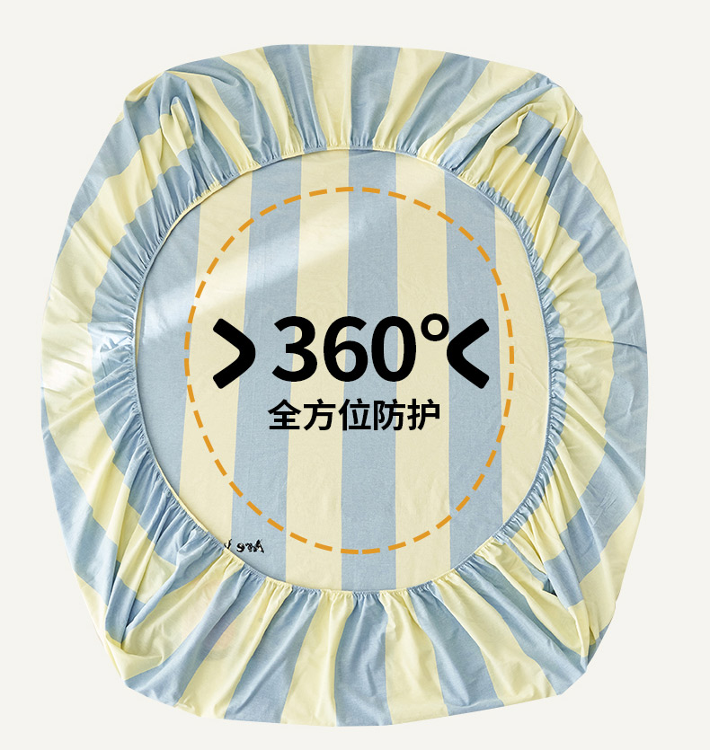 • 91家纺网 家纺一手货源 找家纺 寐绸家纺 2025新款纯棉色织水洗棉竖条单床笠 水洗棉竖条床笠-粗条米黄
