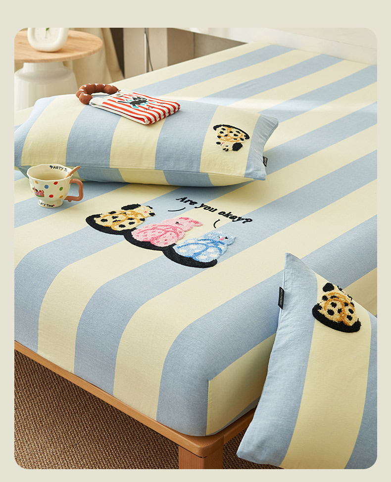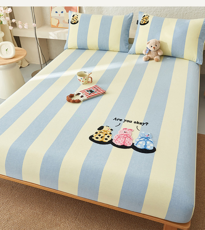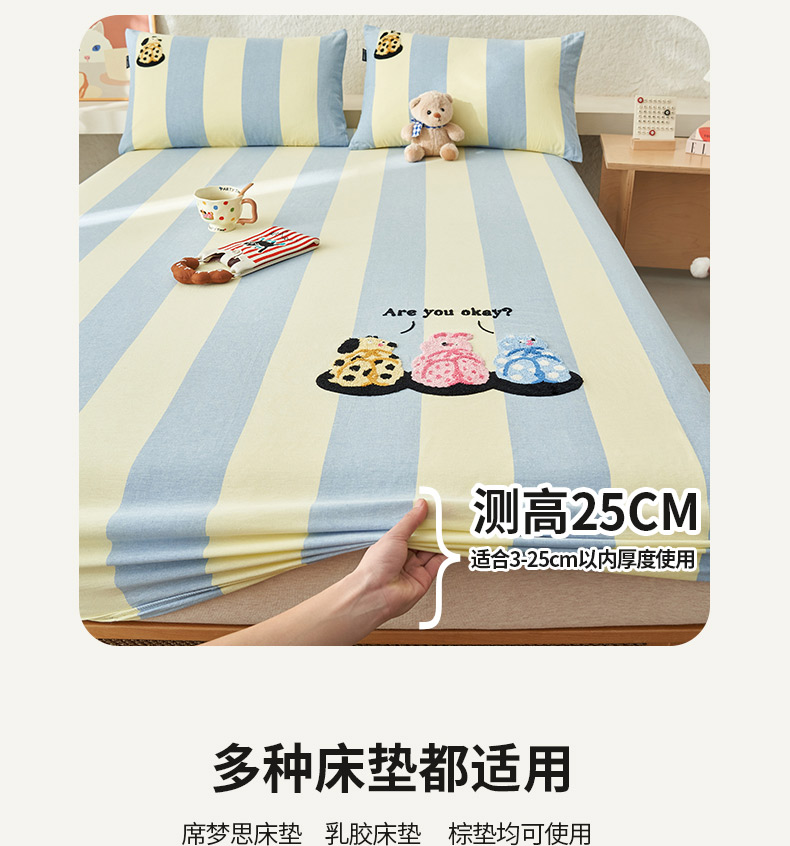 寐绸家纺 2025新款纯棉色织水洗棉竖条单床笠 水洗棉竖条床笠-粗条米黄