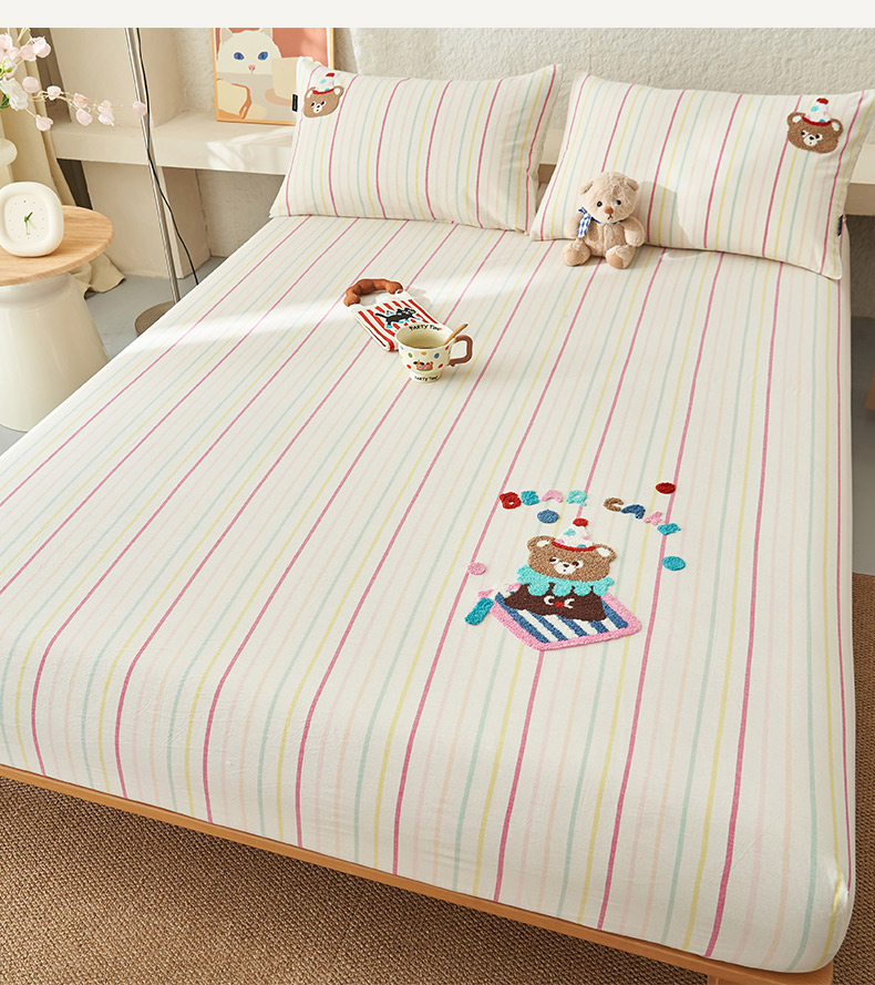 寐绸家纺 2025新款纯棉色织水洗棉竖条单床笠 水洗棉竖条床笠-炫彩粉
