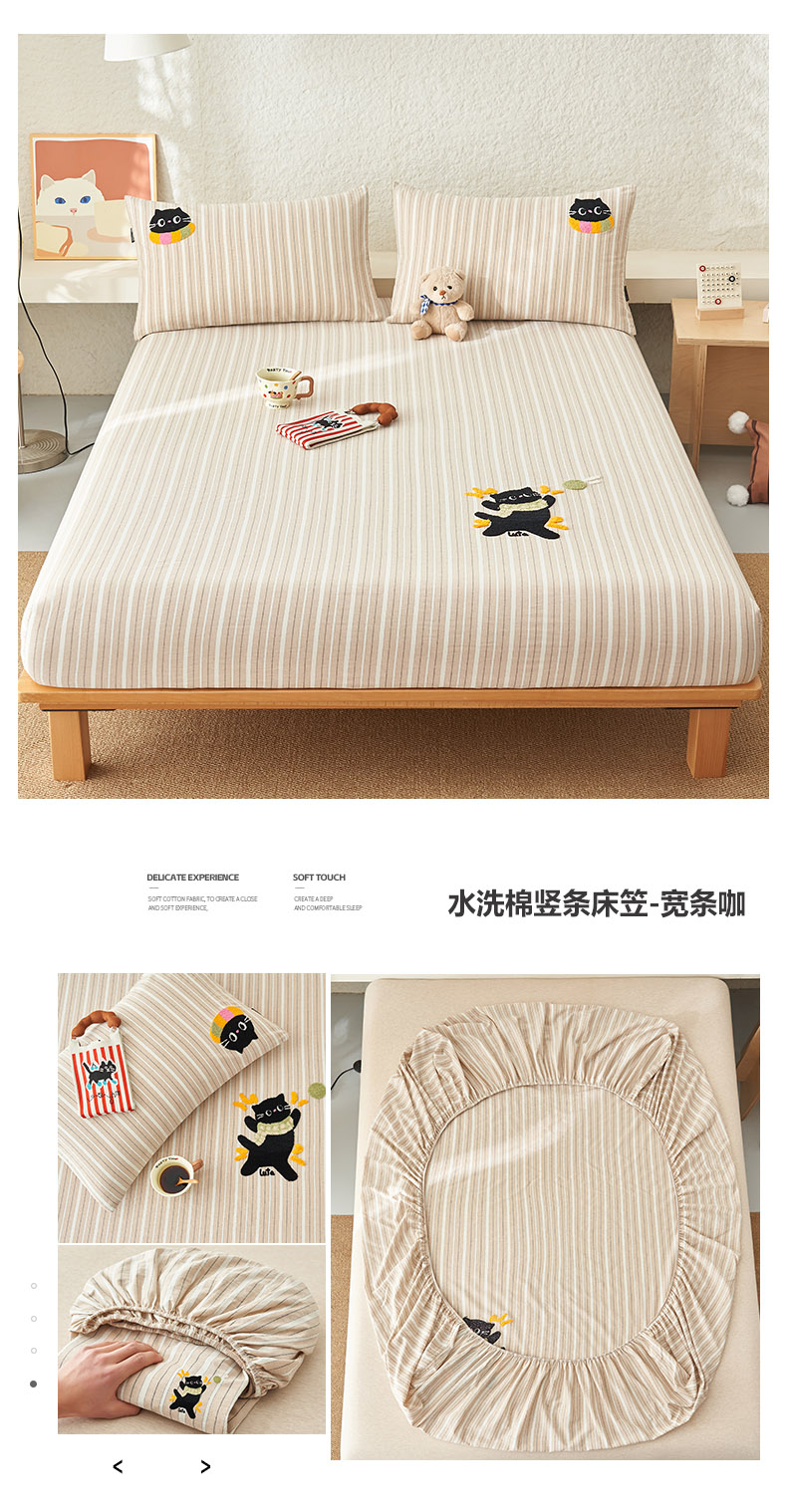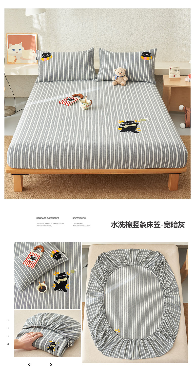 • 91家纺网 家纺一手货源 找家纺 寐绸家纺 2025新款纯棉色织水洗棉竖条单床笠 水洗棉竖条床笠-炫彩粉