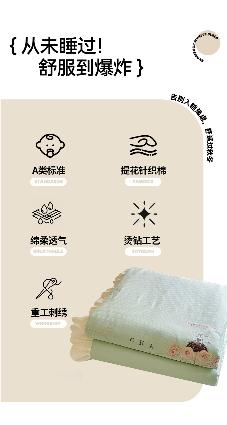 (总)绒世界 2025新款针织棉提花加绣花烫钻夏被四件套翩然系列