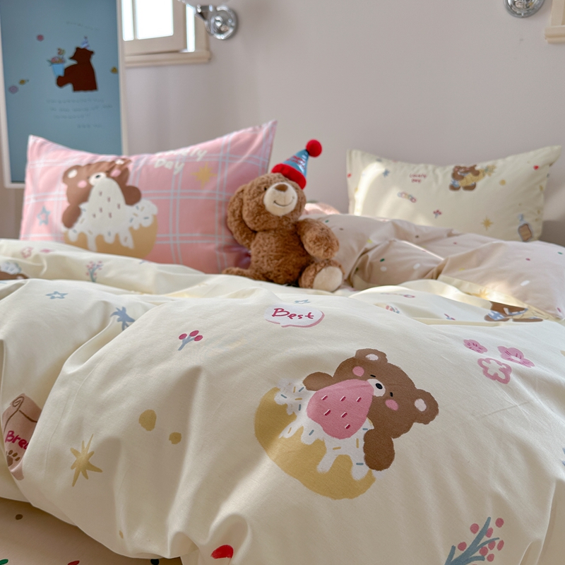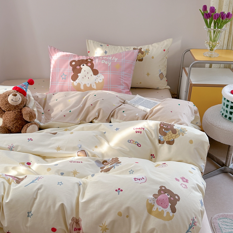 商品名称:时年家纺 2025新款全棉数码趣味系列3.0 四件套 甜圈小熊