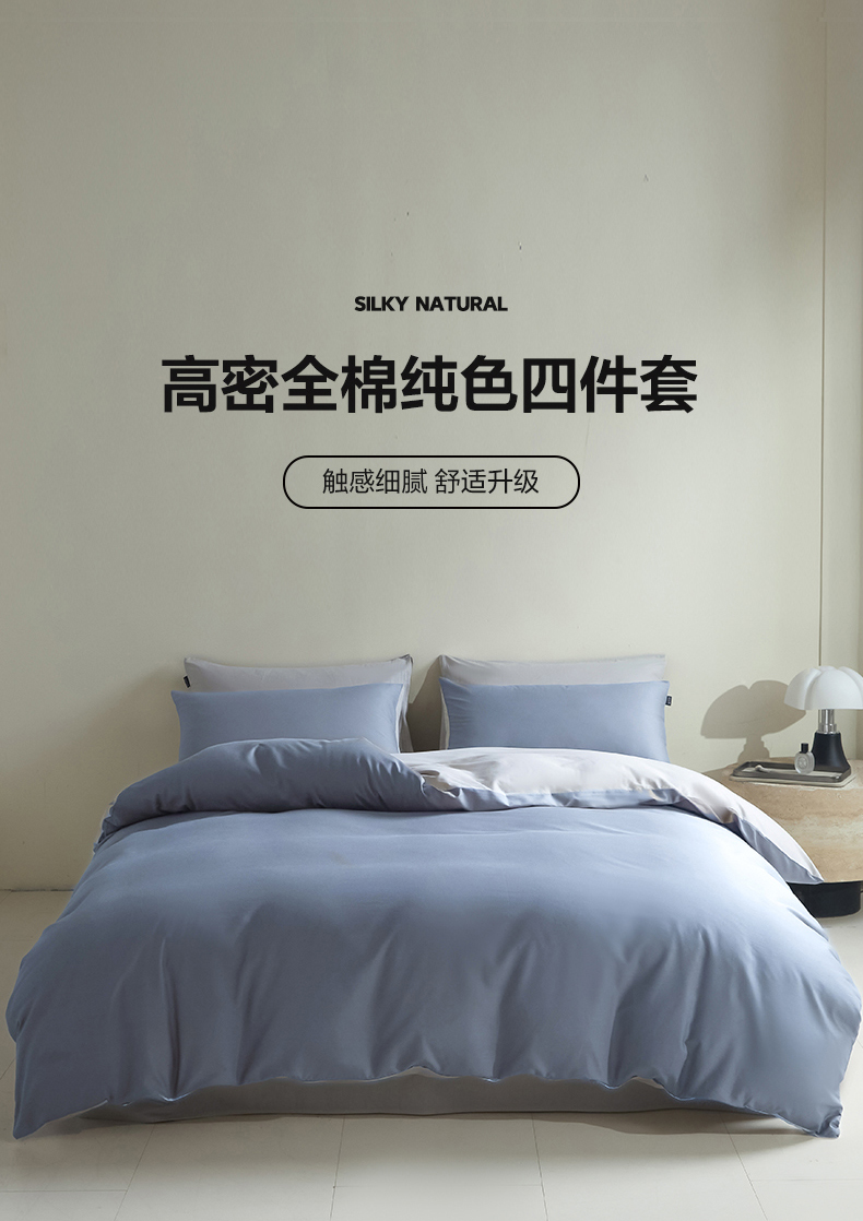 商品名称:帅露家纺 2025新款A类全棉13372纯色四件套 深灰罗尼蓝