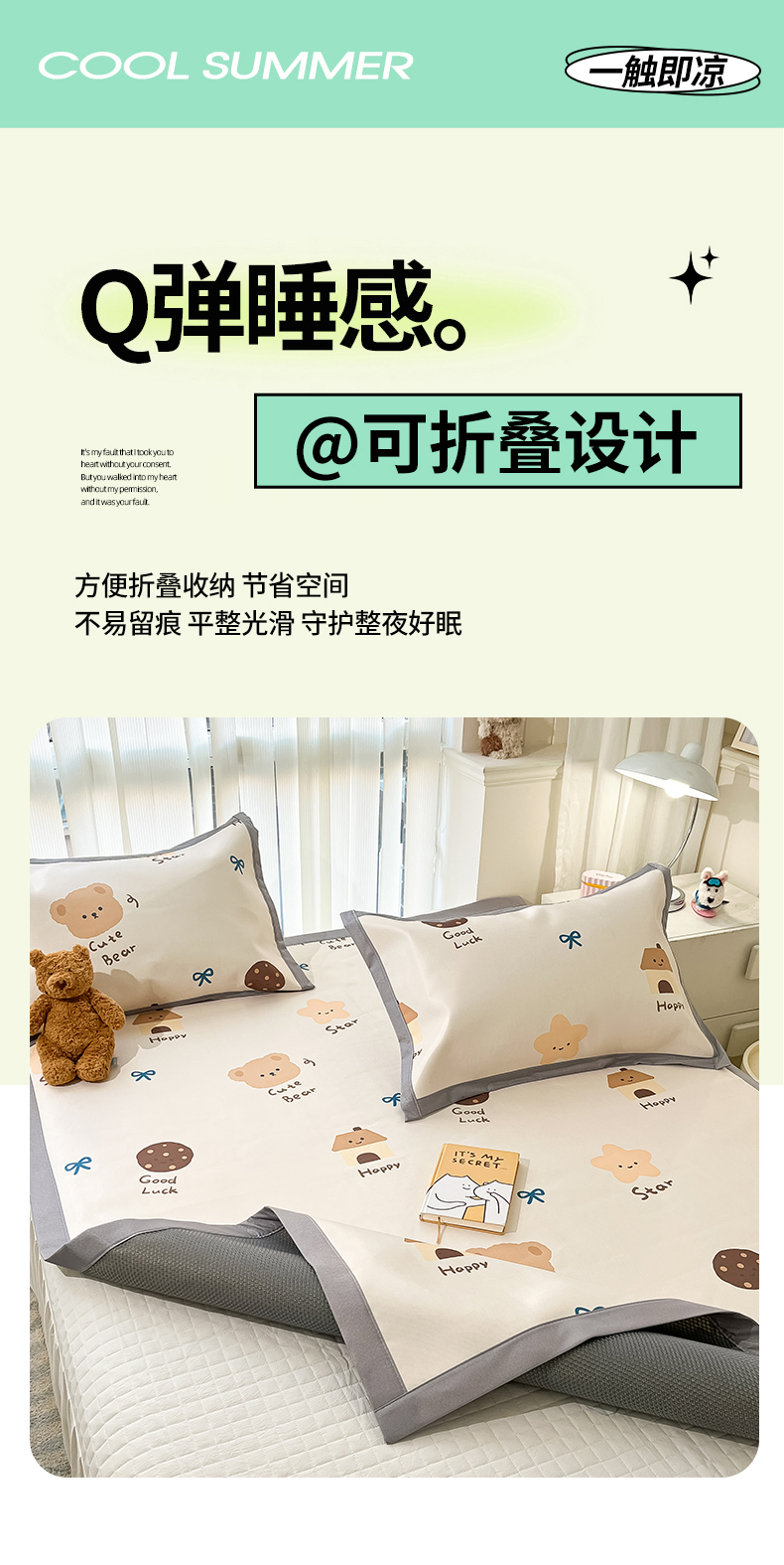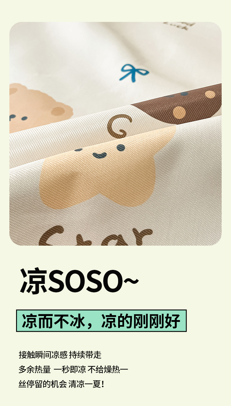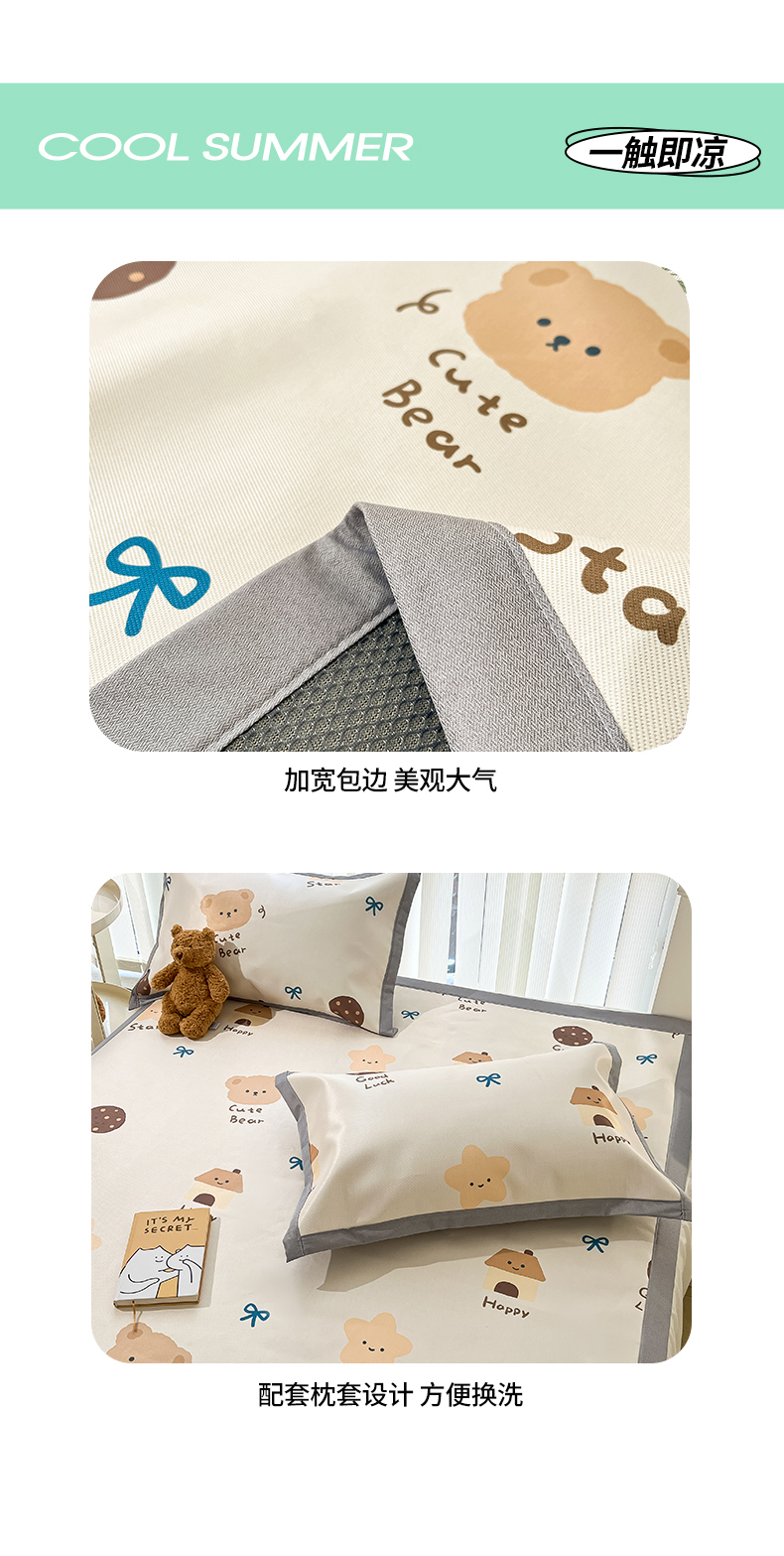 商品名称:川悦生活 2025新款600D立体宽边冰丝印花凉席 小熊幸福语