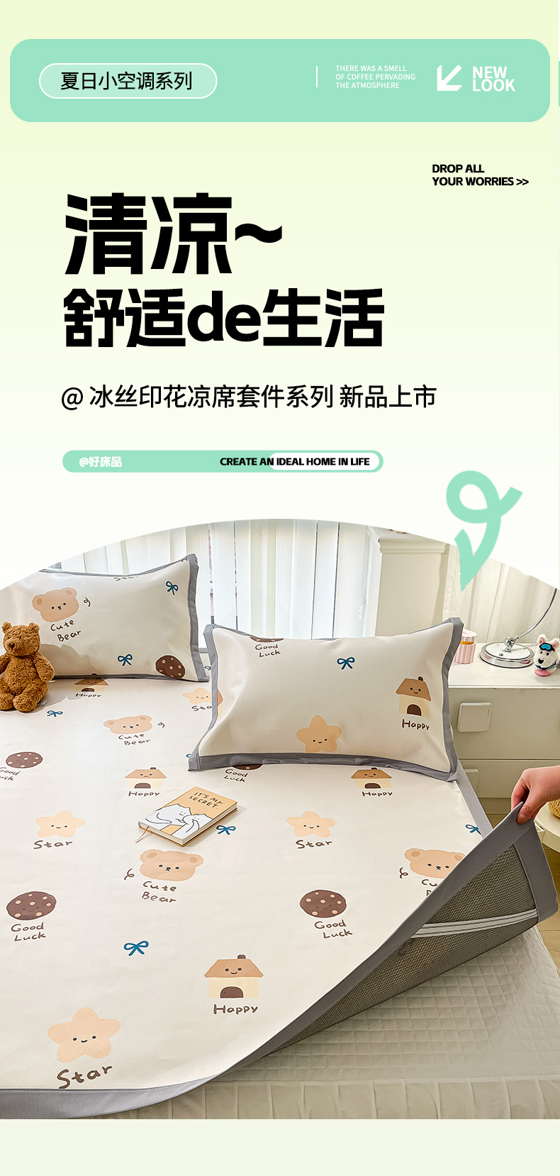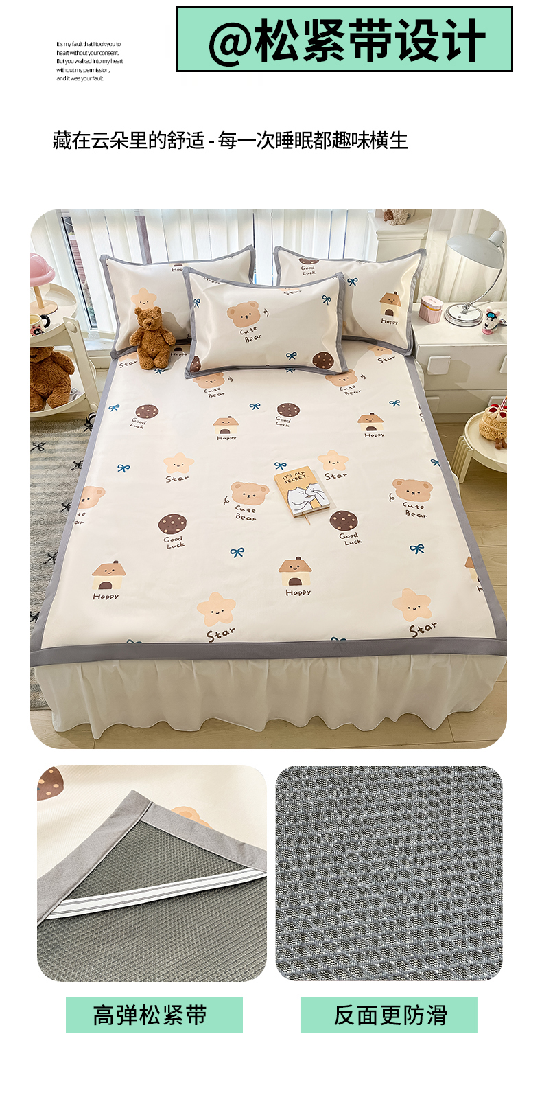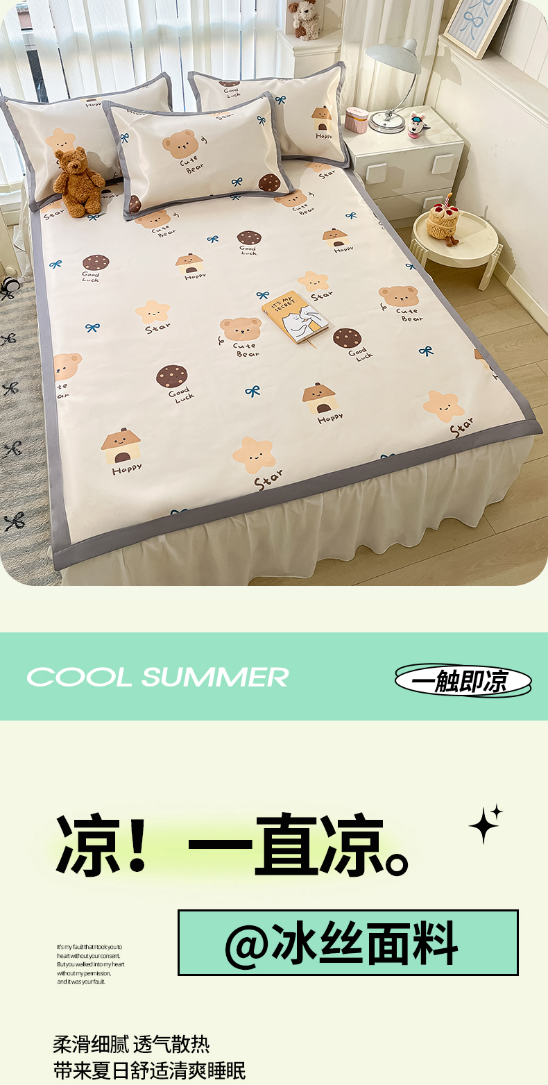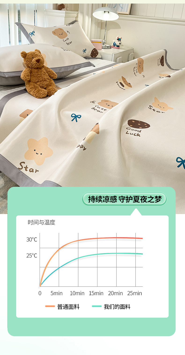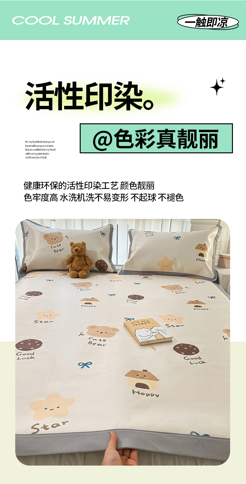 川悦生活 2025新款600D立体宽边冰丝印花凉席 小熊幸福语