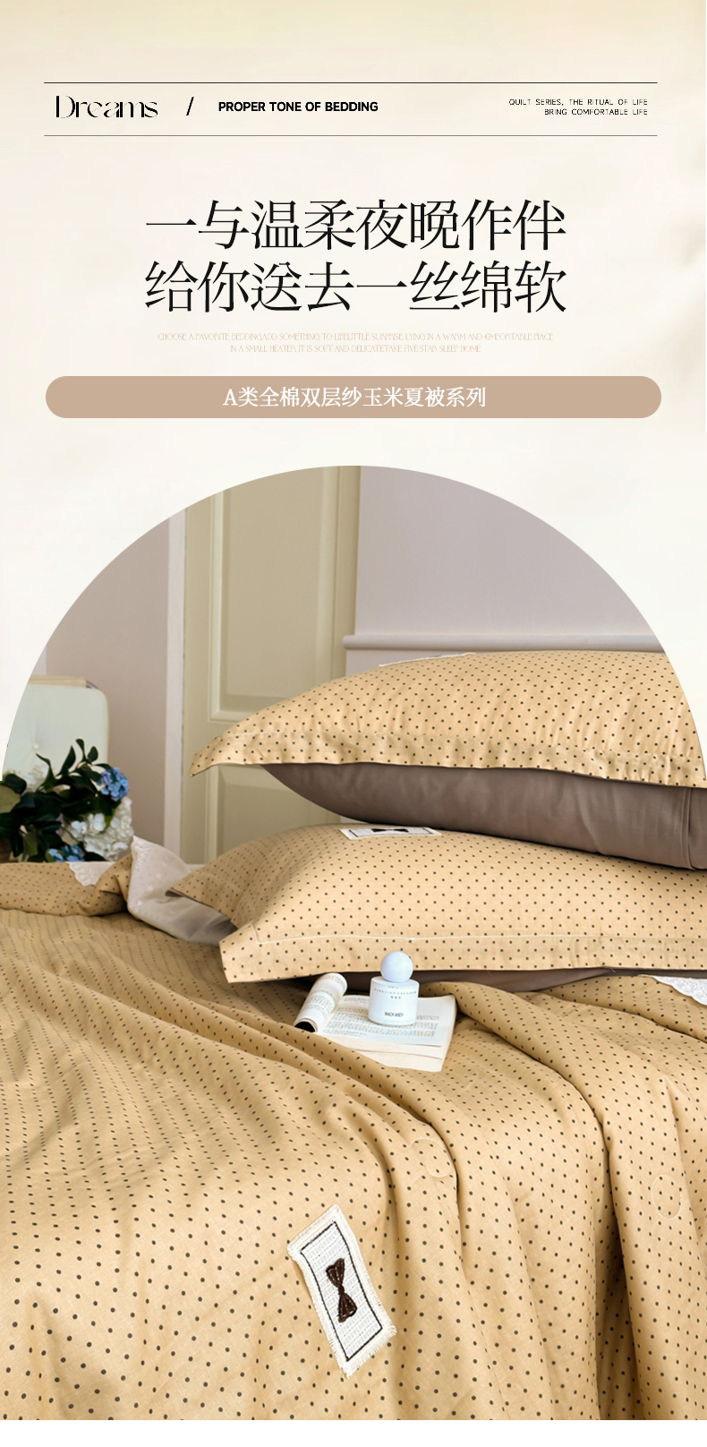 当前位置: 91家纺网 > 商品网购 > 床品套件 > 四件套 > 夏被四件套 > 帕拉美拉 2025新款全棉双层纱玉米聚乳酸夏被春秋被冬被玉米被 三件套四件套 波尔圆舞(咖)