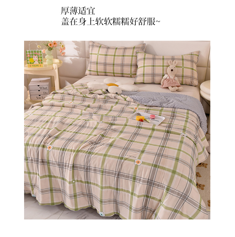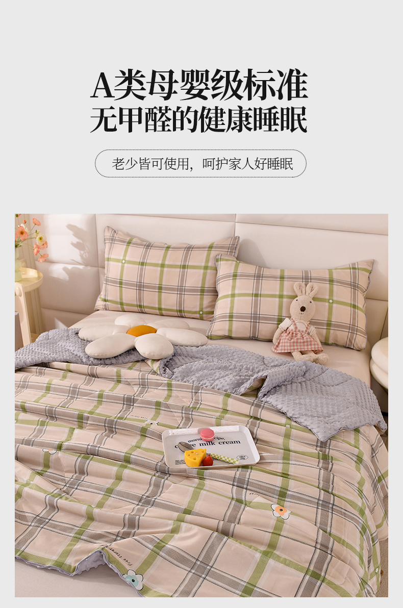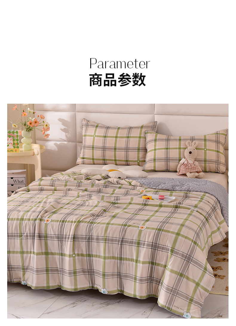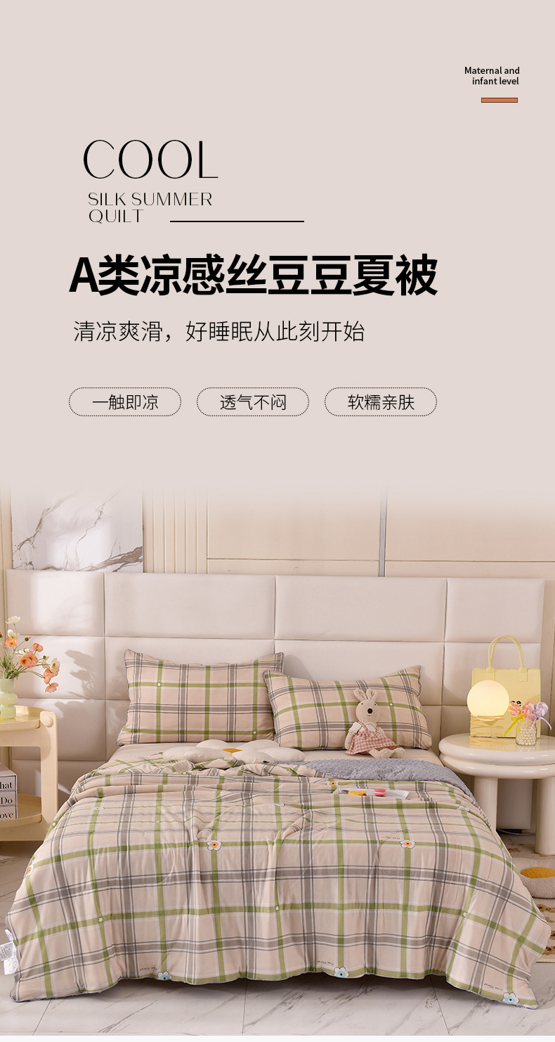 商品名称:经年 2025新款A类凉感丝豆豆夏被 简单格-黄