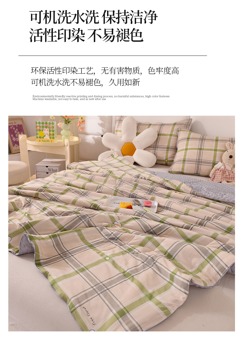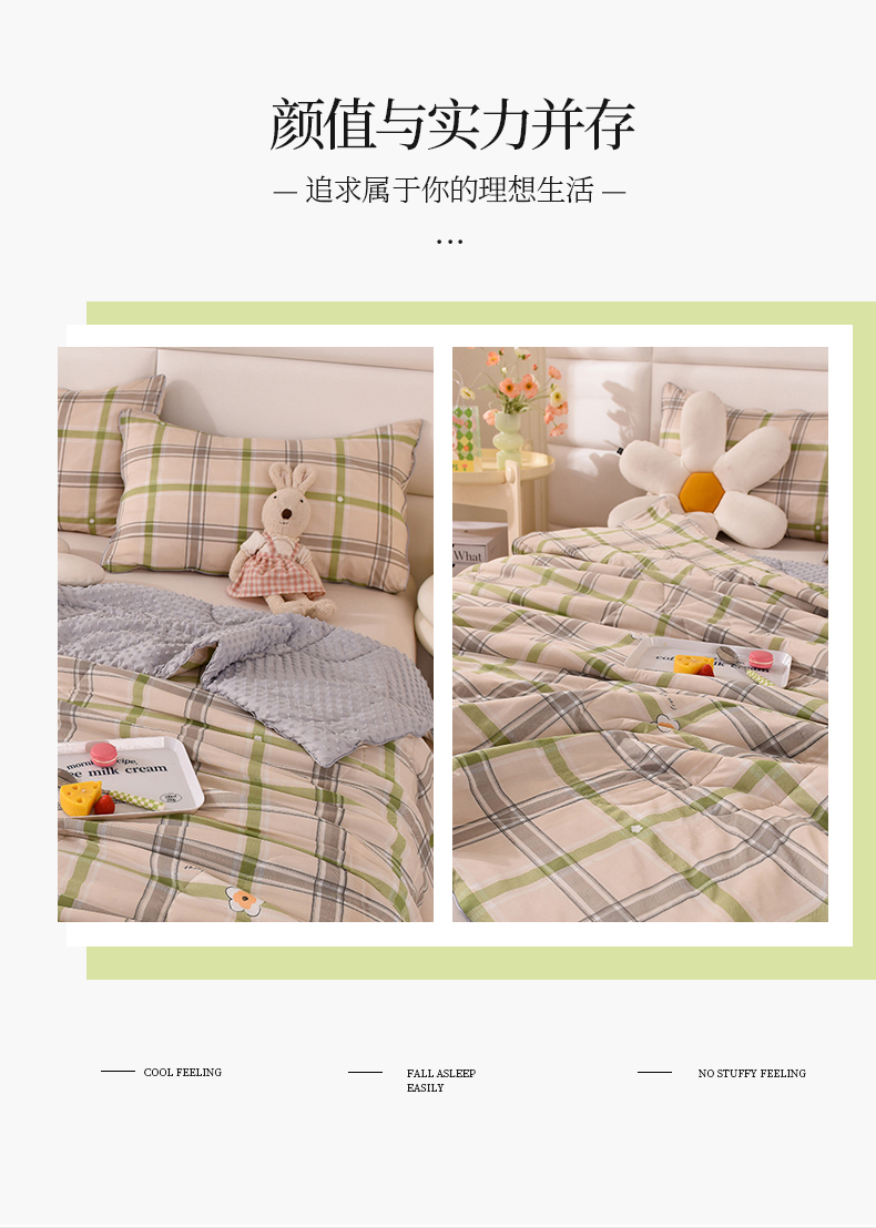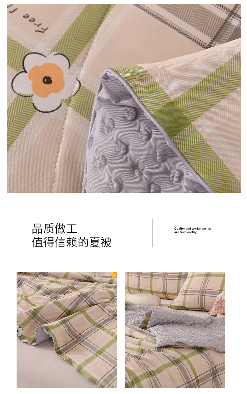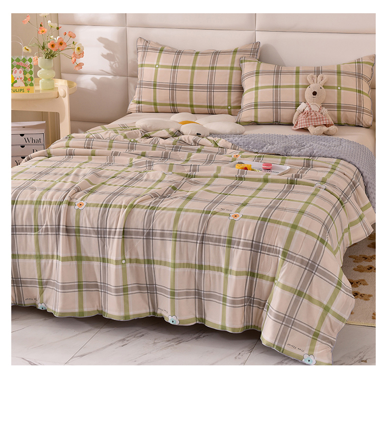 商品名称:经年 2025新款A类凉感丝豆豆夏被 简单格-黄