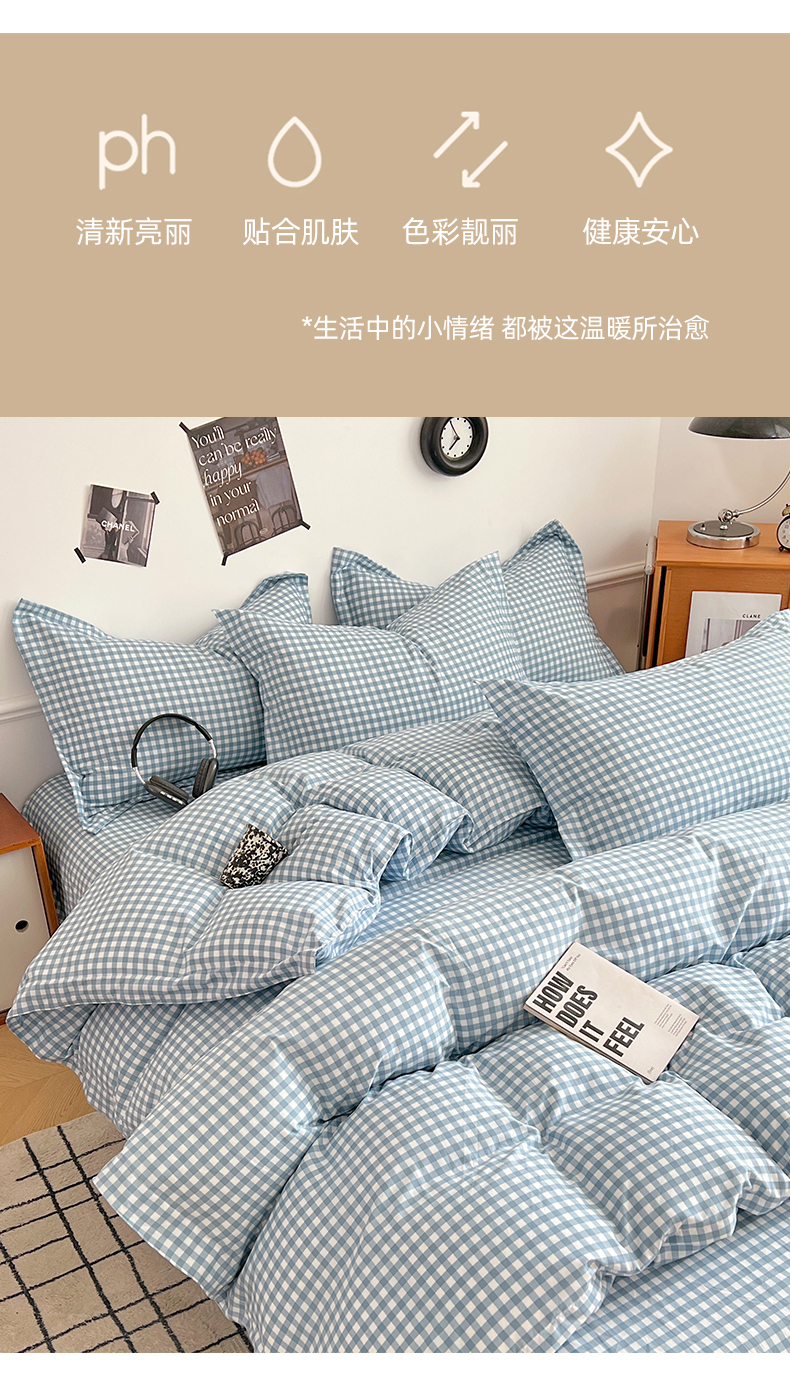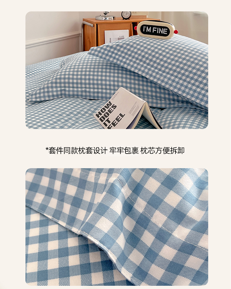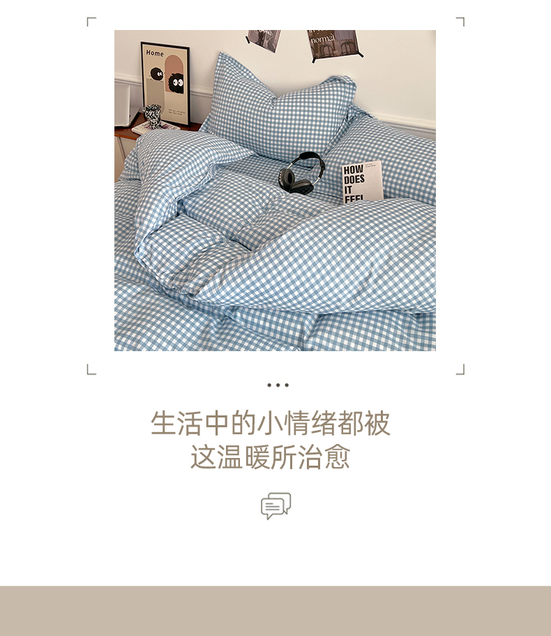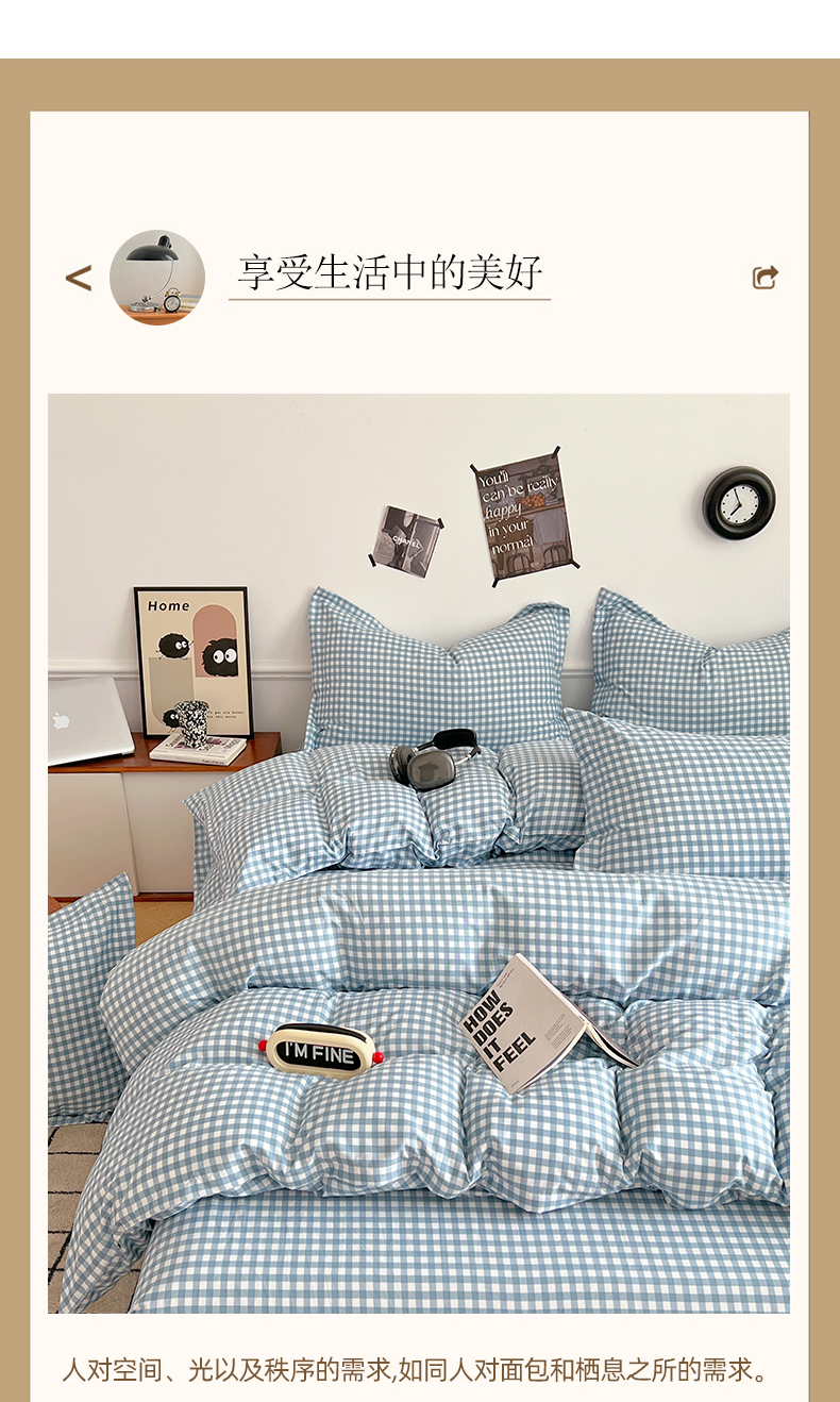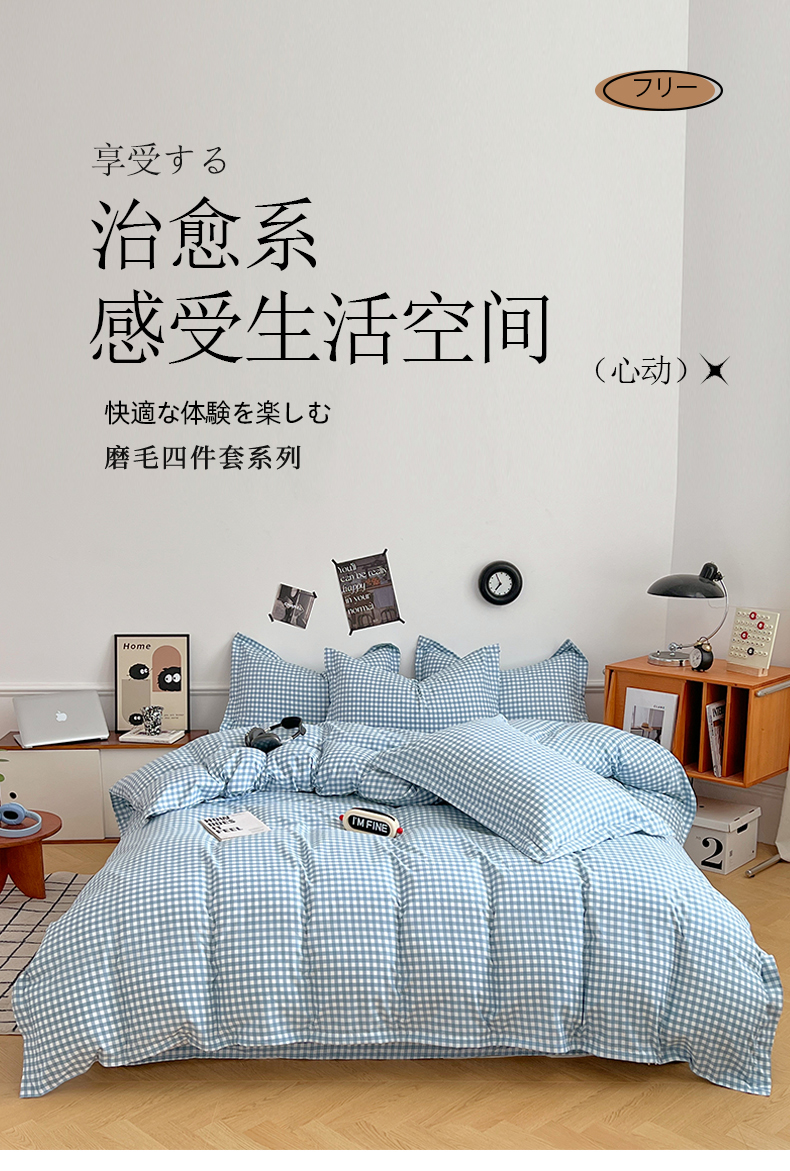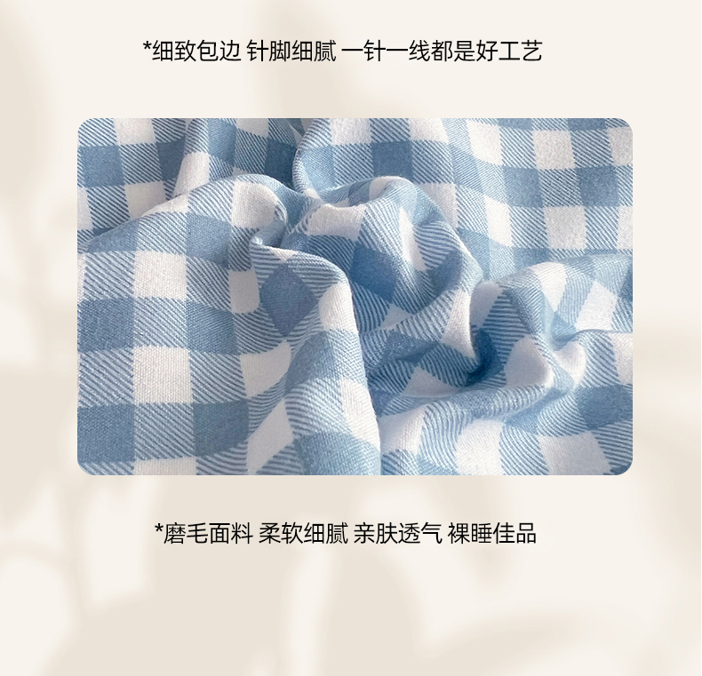 当前位置: 91家纺网 > 商品网购 > 床品套件 > 四件套 > 普通磨毛四件套 > 罗菲尼酒店用品 2025新款磨毛亲肤飞边款四件套 蓝小格