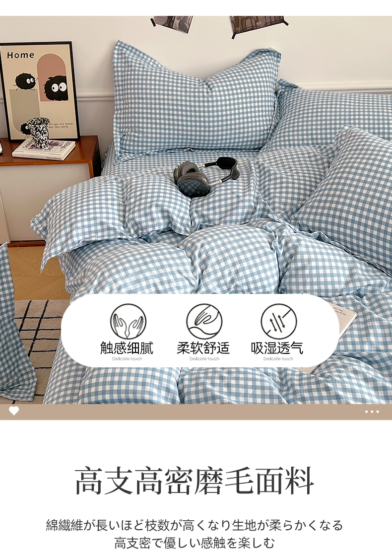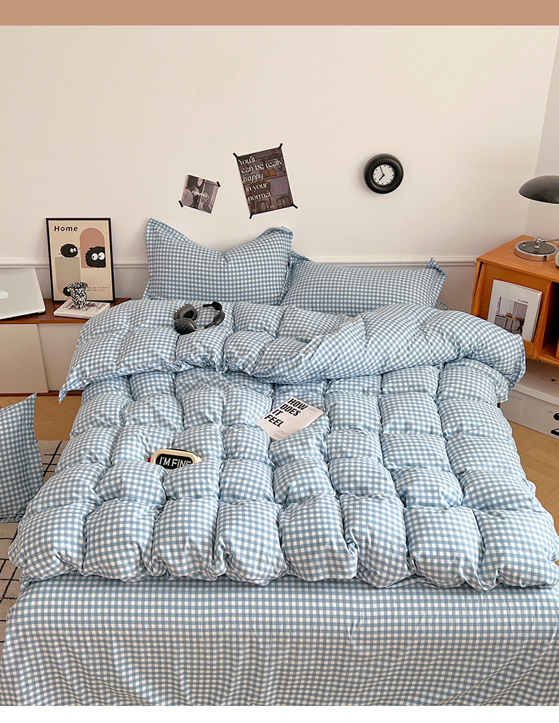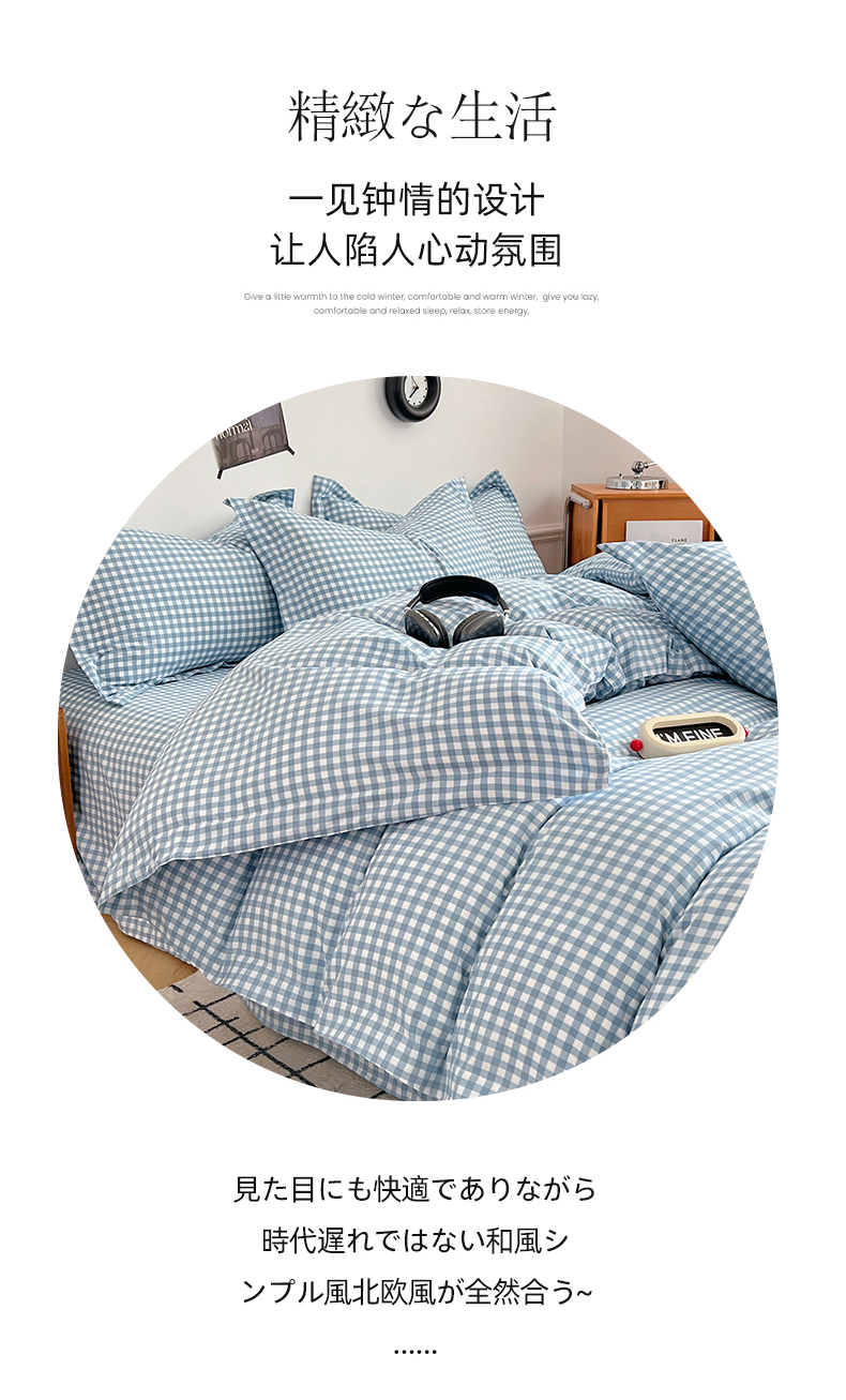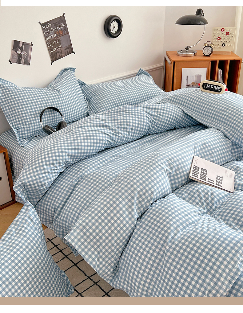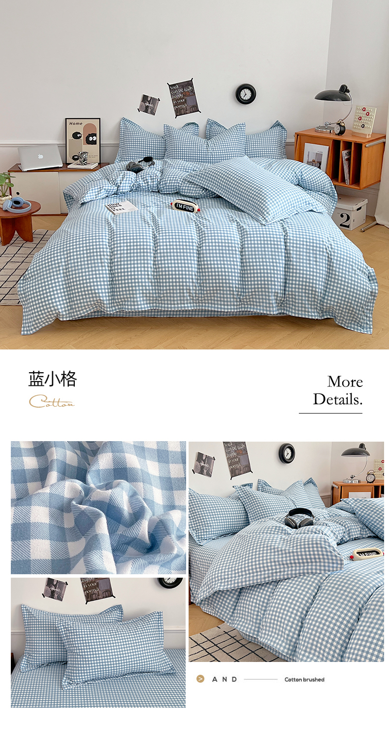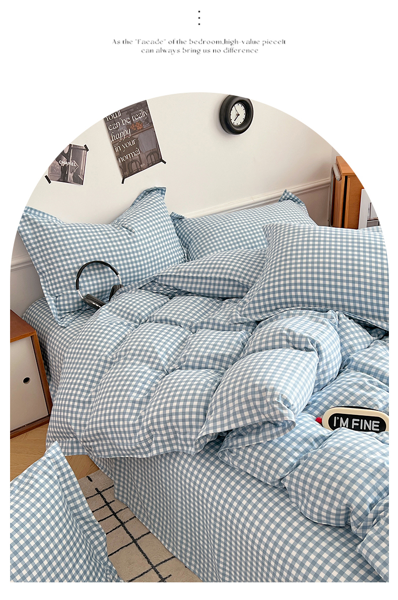 当前位置: 91家纺网 > 商品网购 > 床品套件 > 四件套 > 普通磨毛四件套 > 罗菲尼酒店用品 2025新款磨毛亲肤飞边款四件套 蓝小格