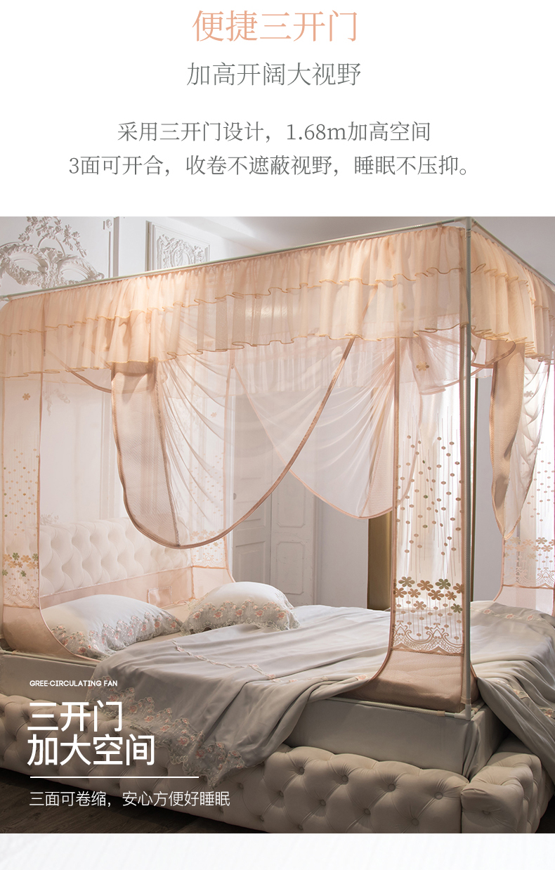 (总)飞轮海蚊帐 2023新款三开门落地遮光蚊帐-L-93,高级灰,芥末绿,奶油黄,香槟