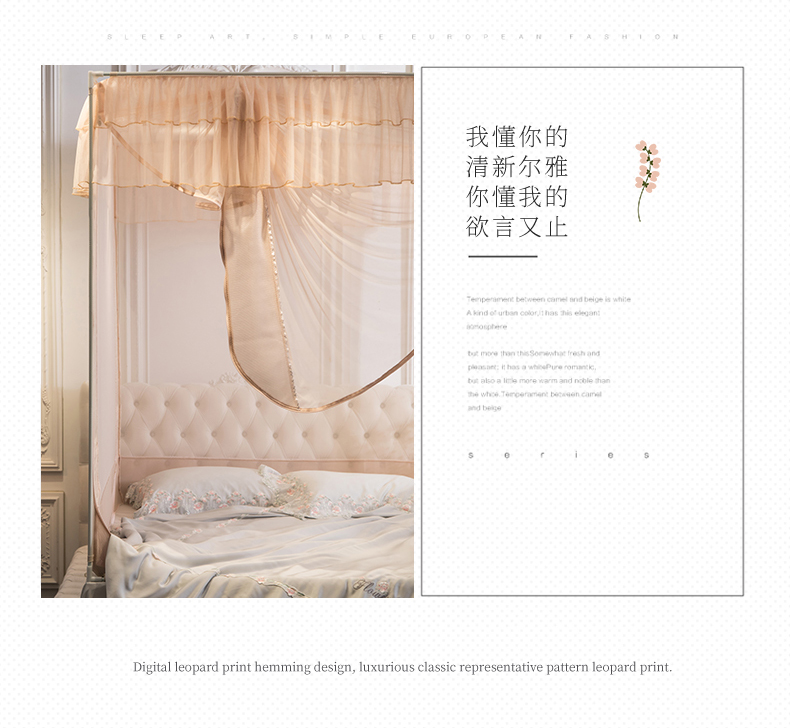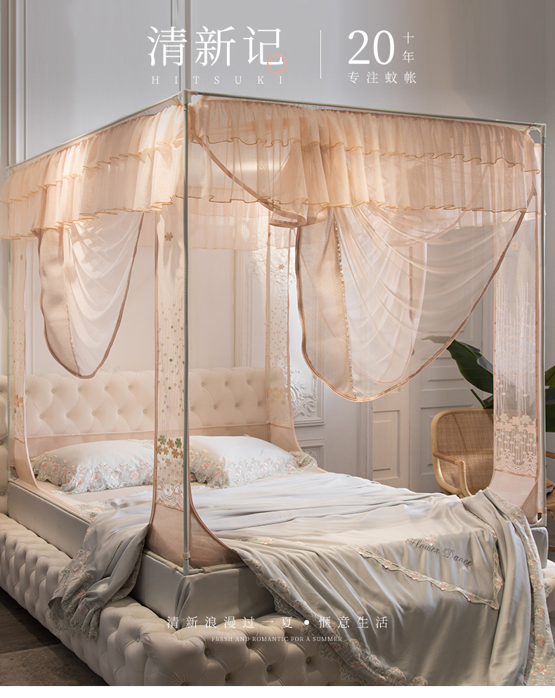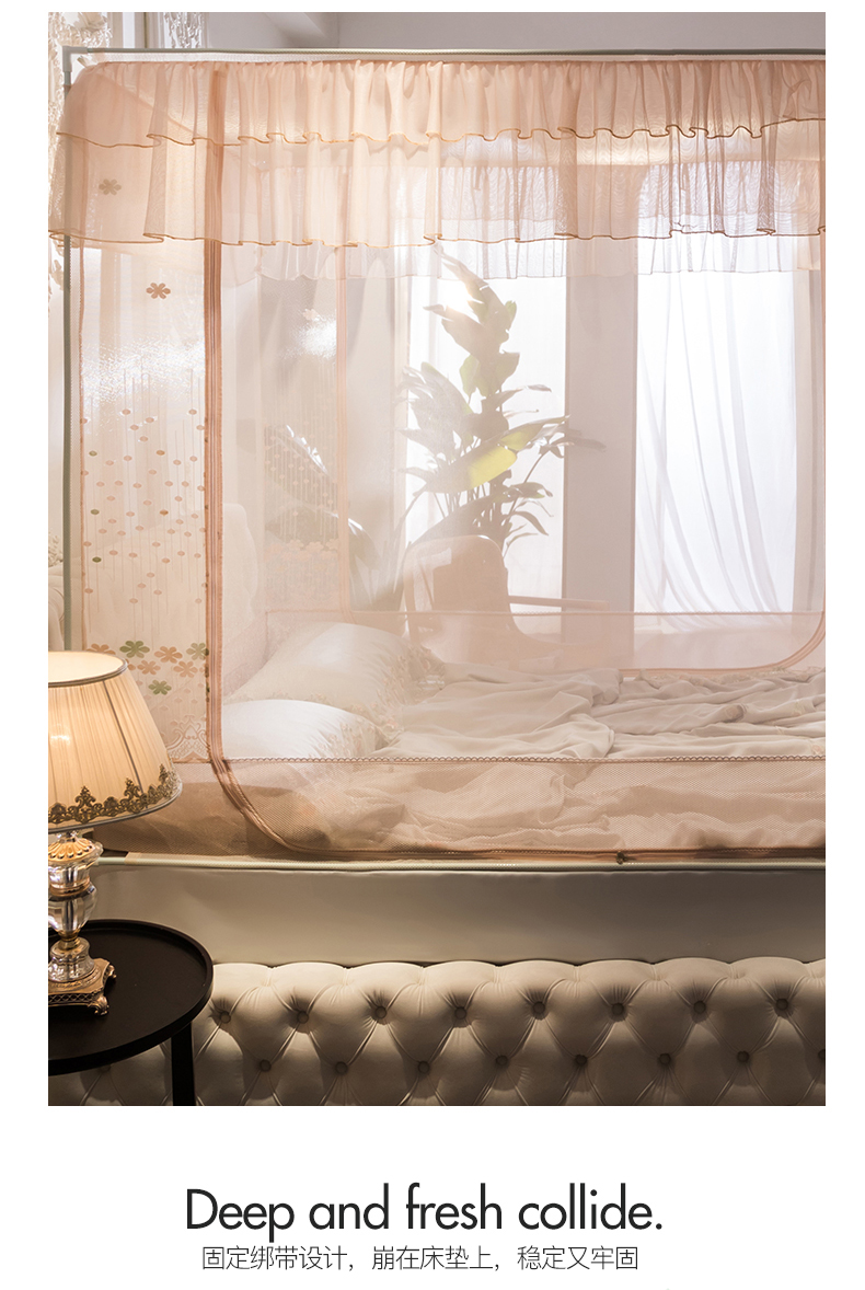 商品名称:飞轮海蚊帐 2025新款全底回底蚊帐方顶防摔坐床蚊帐-Z57风格二 香槟