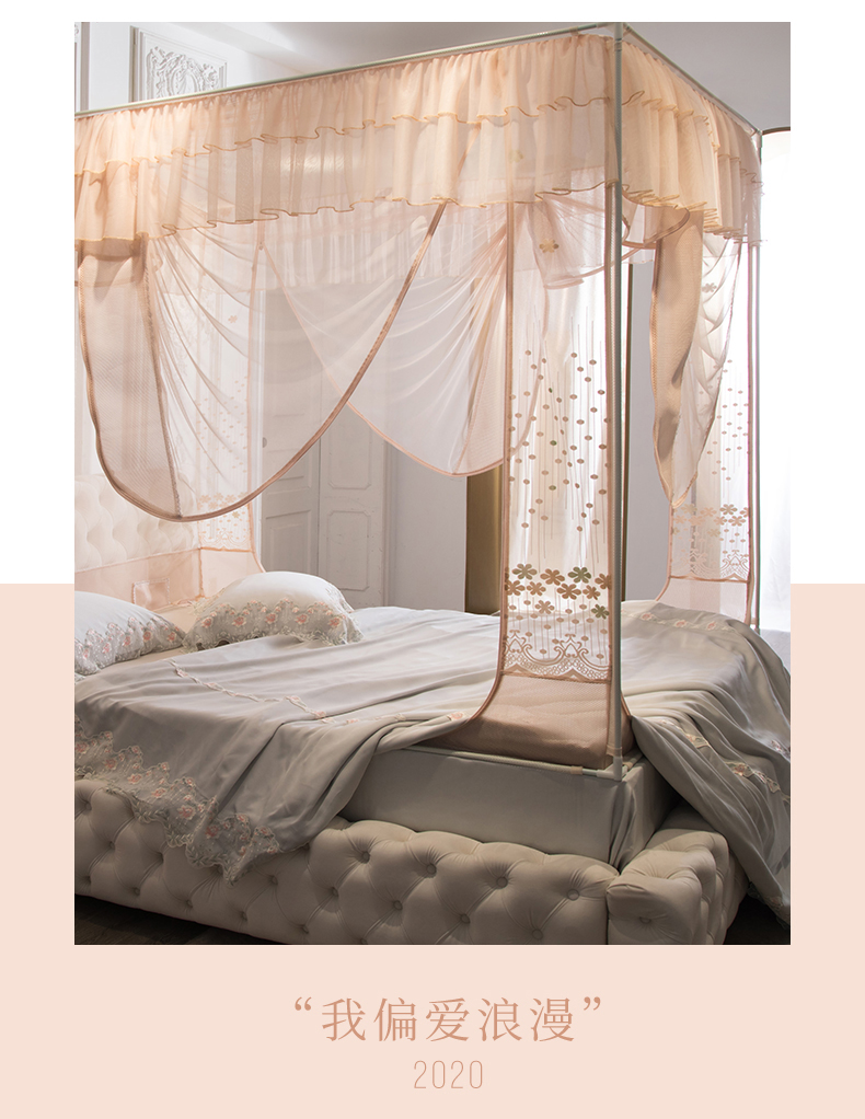 (总)飞轮海蚊帐 新款双层方顶宫廷落地蚊帐-LX91,双层嫩粉,双层香槟,双拼蓝绿,双拼清水蓝