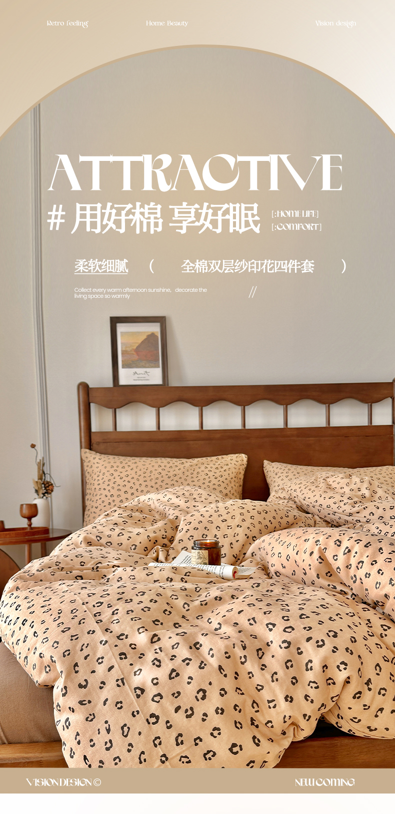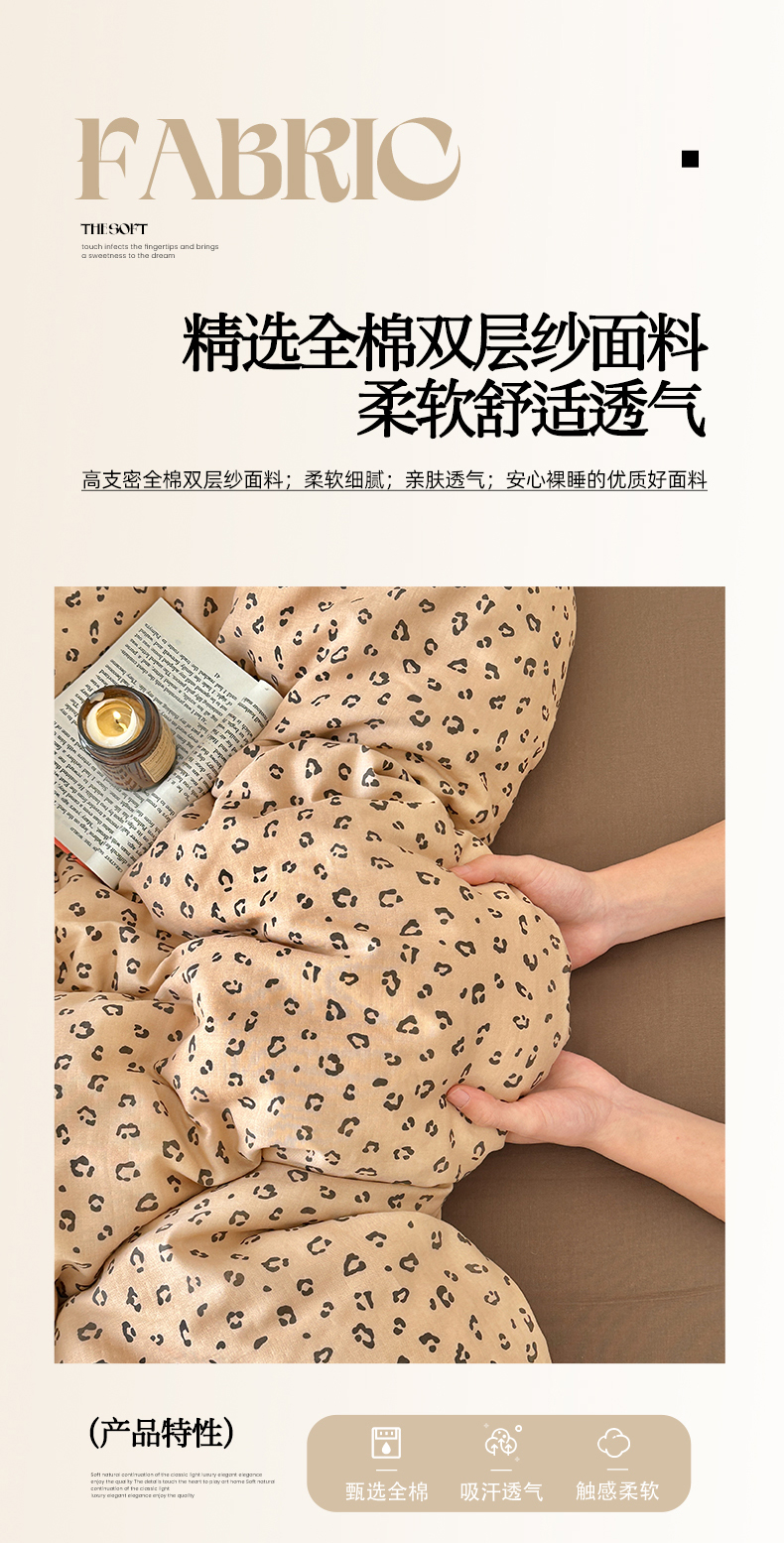 当前位置: 91家纺网 > 商品网购 > 床品套件 > 四件套 > 全棉普通四件套 > 吉象2025新款全棉双层纱四件套 复古豹纹(咖)