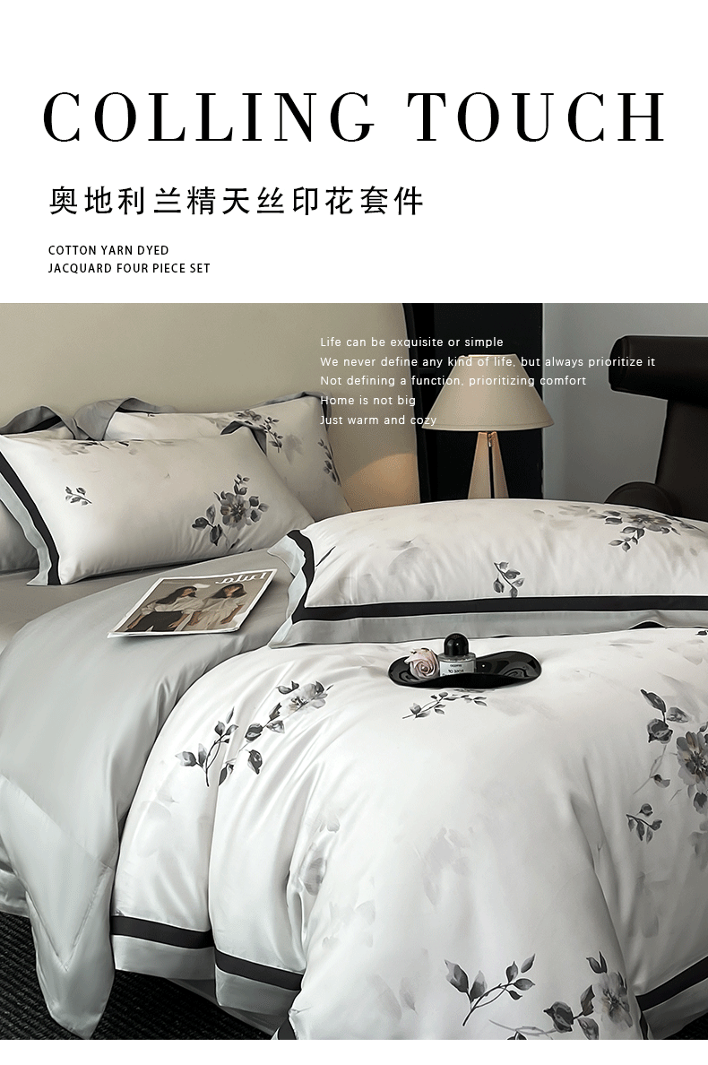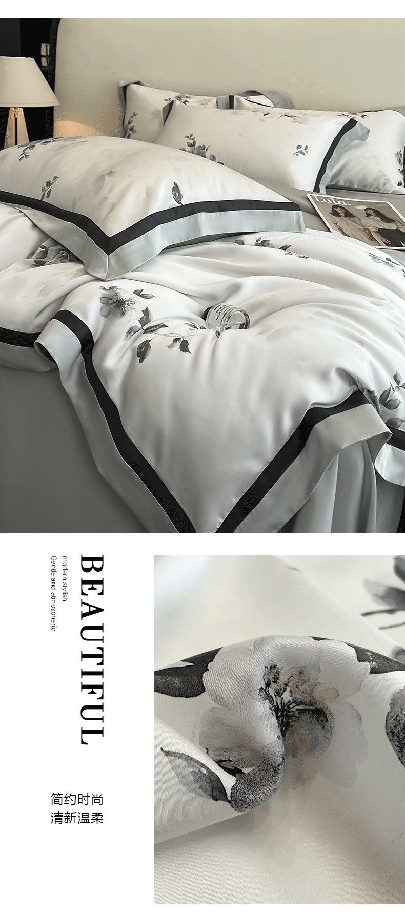 商品名称:618家纺 2025新款A类60S100支兰精天丝数码印花四件套 素瑾