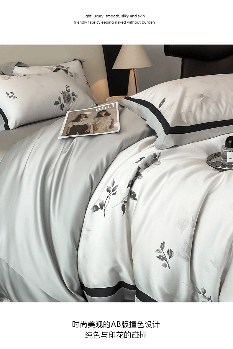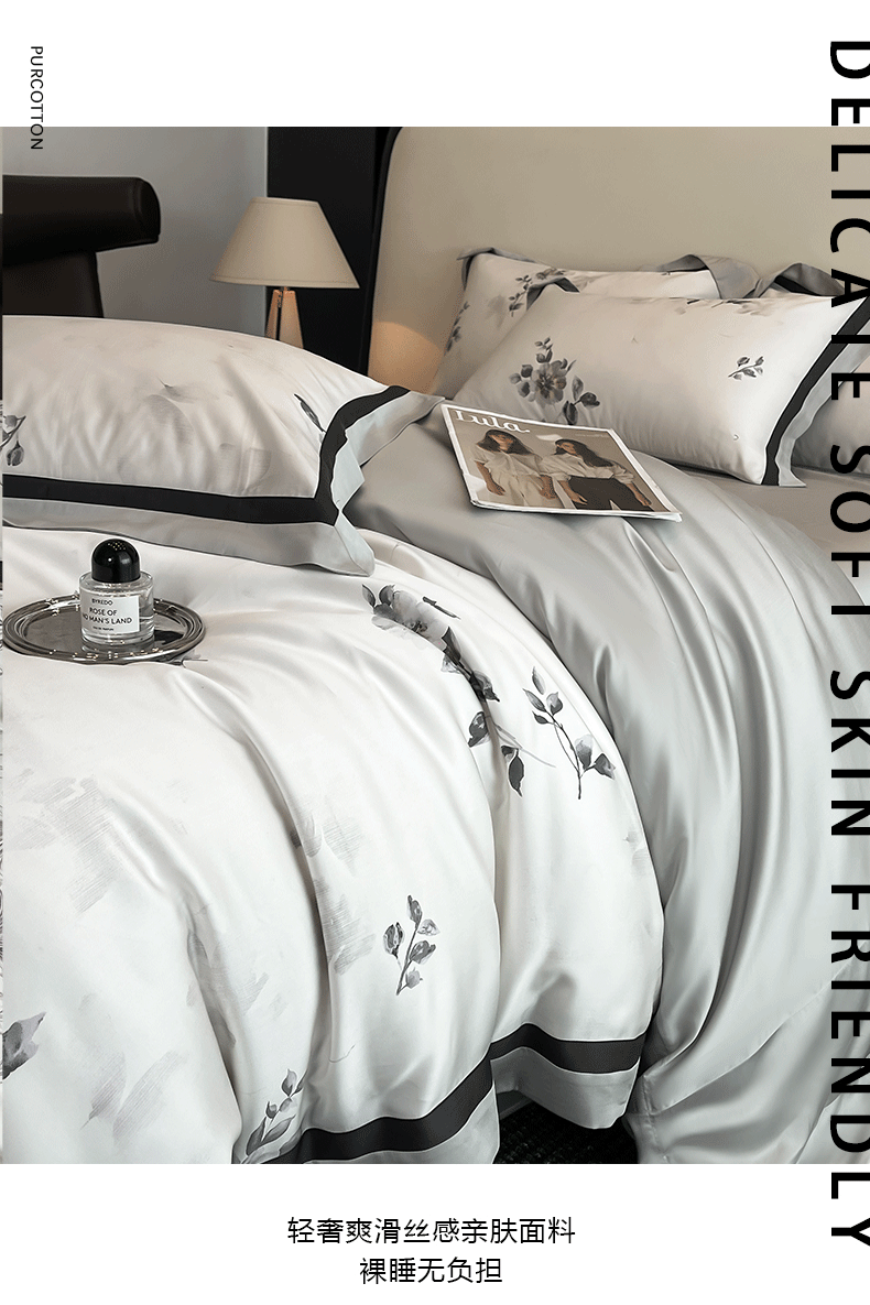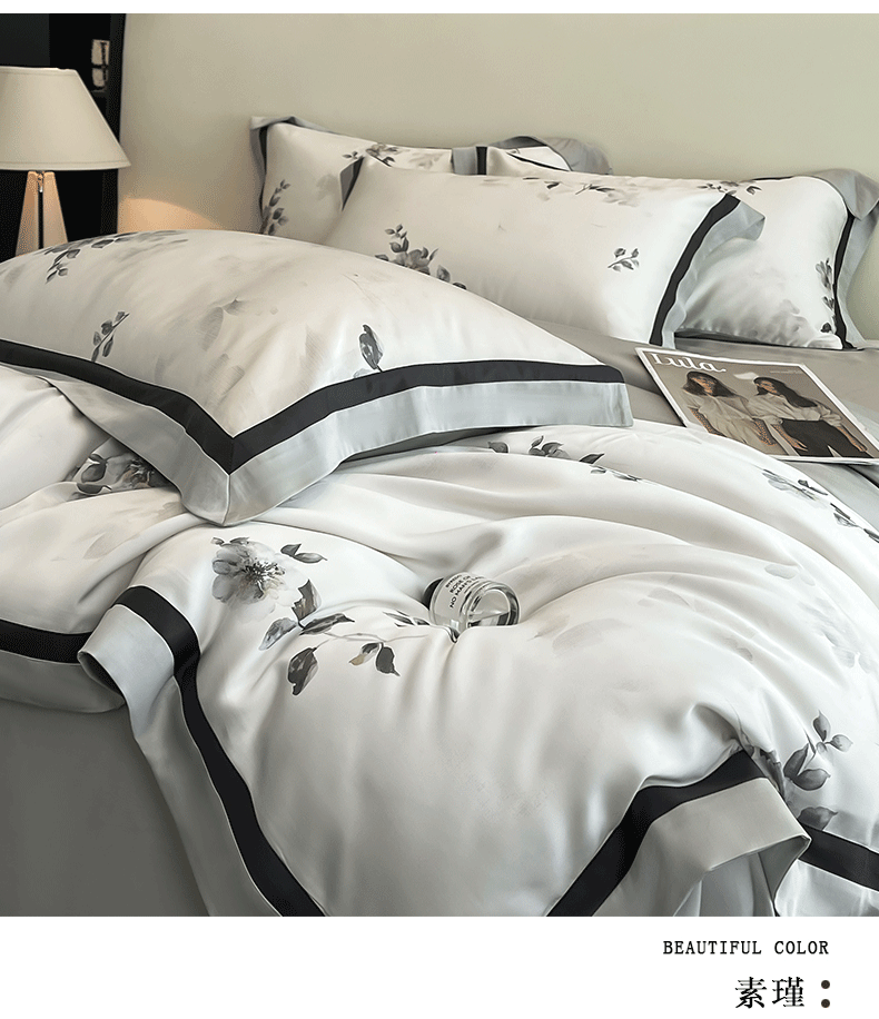 618家纺 2025新款A类60S100支兰精天丝数码印花四件套 素瑾