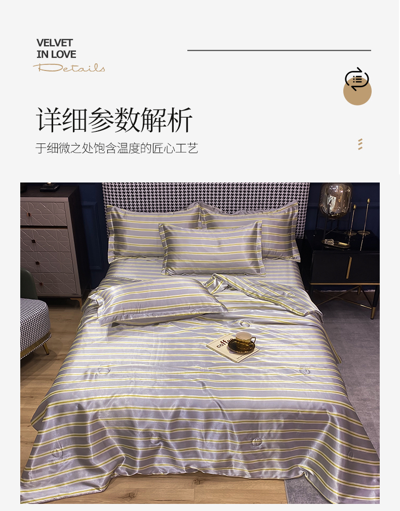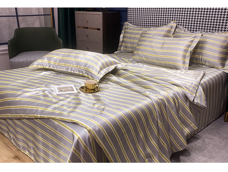 当前位置: 91家纺网 > 商品网购 > 床品套件 > 四件套 > 夏被四件套 > 经年 2025新款条纹丝绸冰丝夏被 灰绿细条-夏被