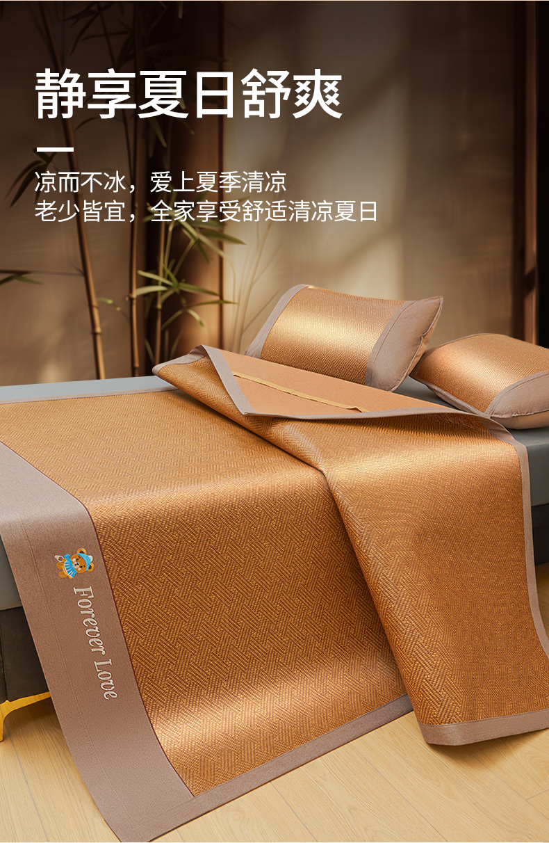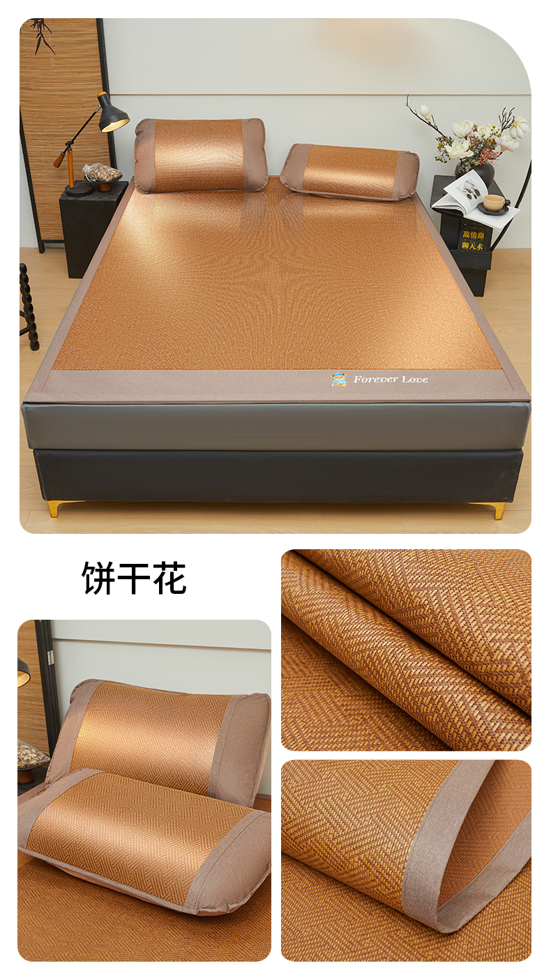 (总)琪琪阁 2026新款冰藤三明治凉席,小米花-灰色,小米花-金色,小米花-绿色,星星-浅灰,星星-深咖,星星-水绿,星星-雾蓝,星星-樱粉