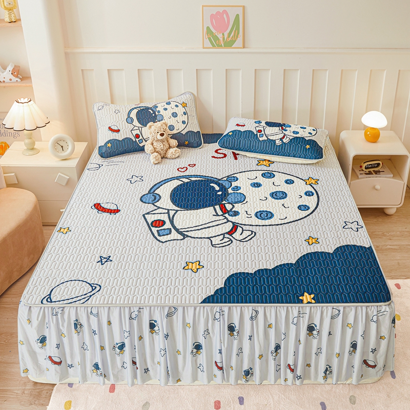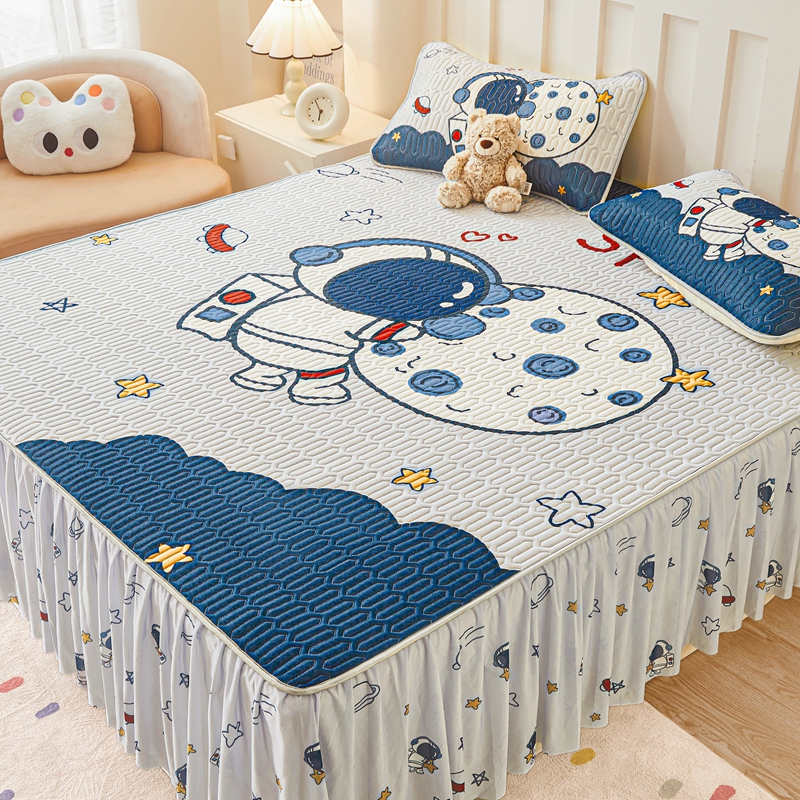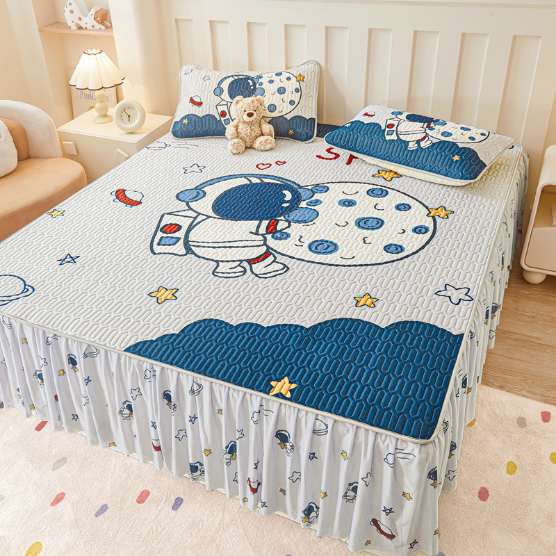 希廷顿 2025新款大版印花乳胶凉席床裙款三件套 遨游太空
