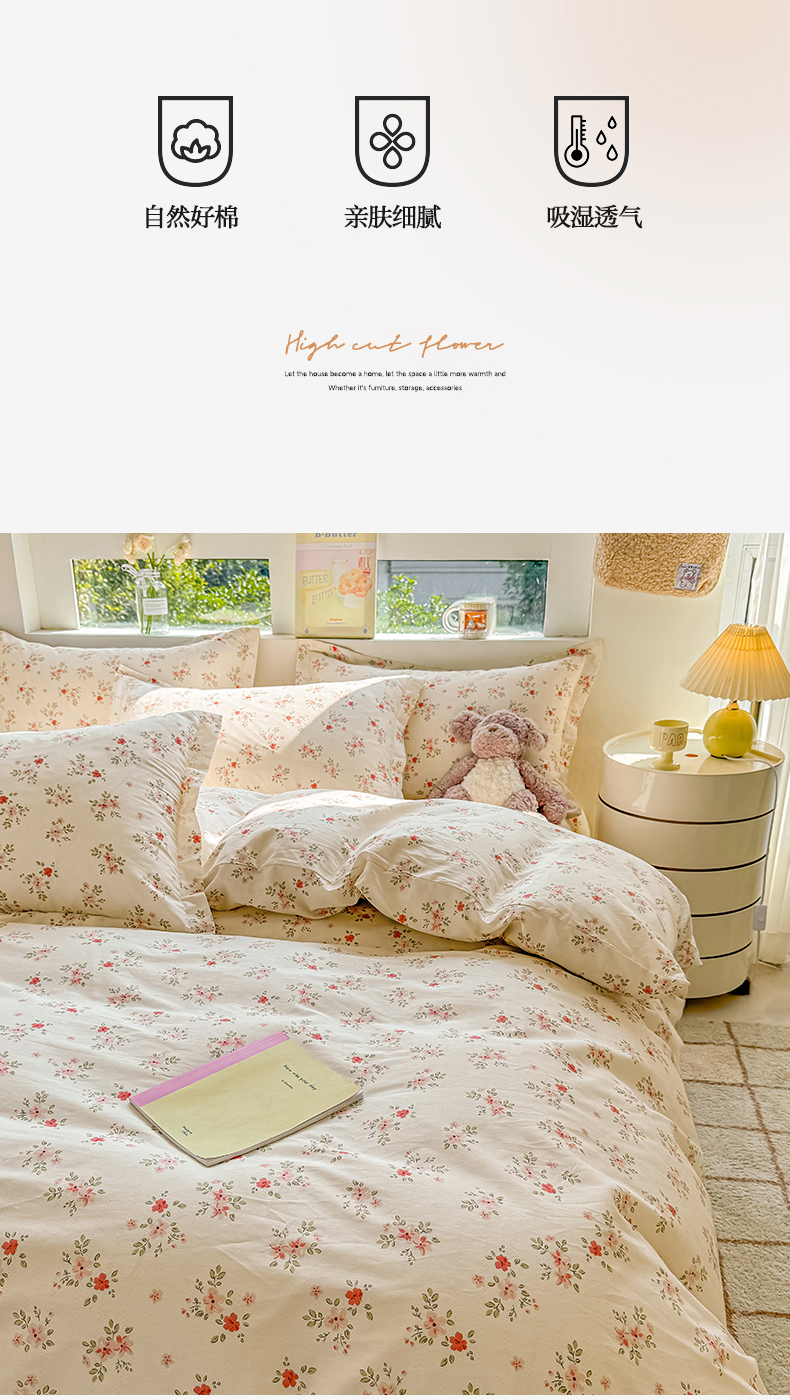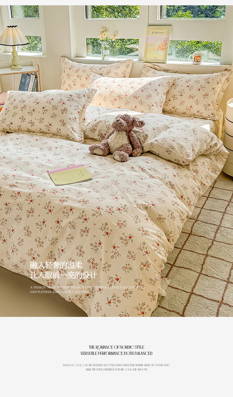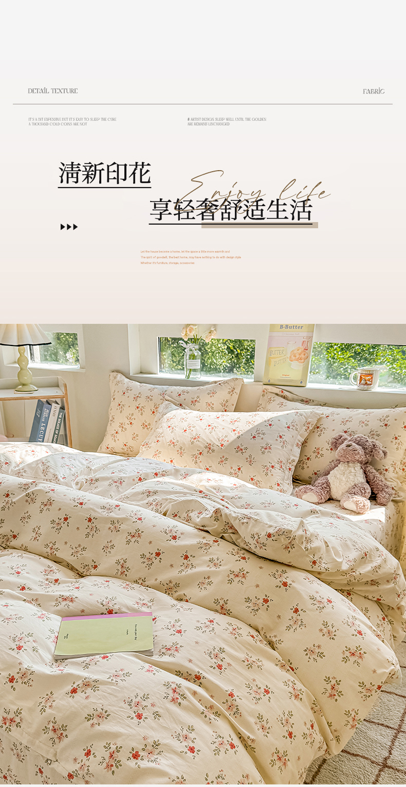 当前位置: 91家纺网 > 商品网购 > 床品套件 > 四件套 > 其它四件套 > 名优家纺 2025新款A类全棉纯棉韩版印花四件套 四季飘香-粉
