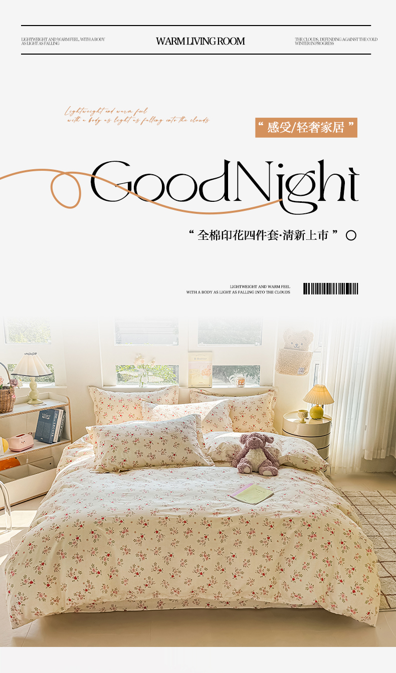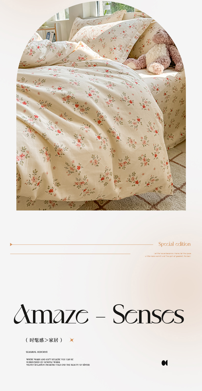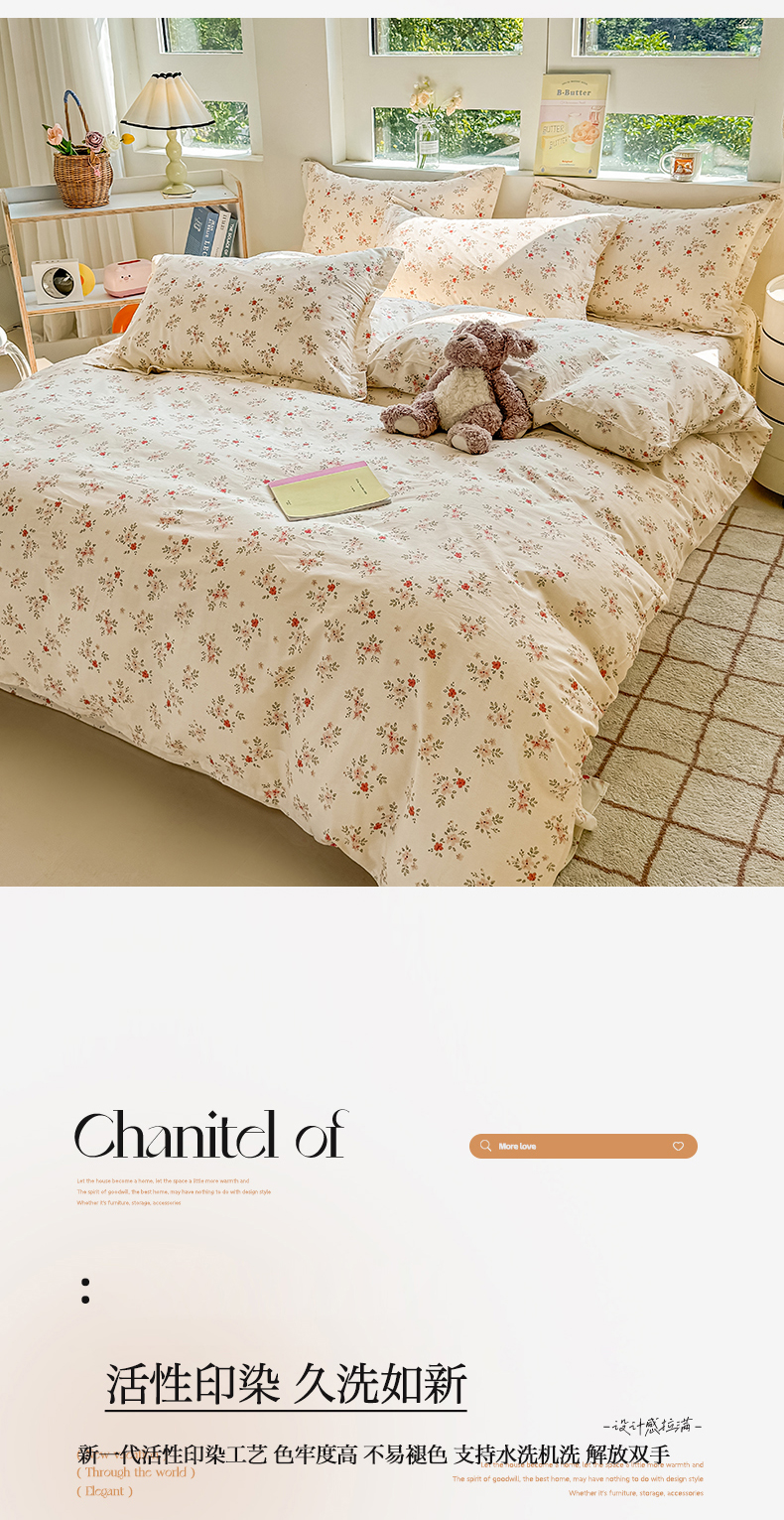 当前位置: 91家纺网 > 商品网购 > 床品套件 > 四件套 > 其它四件套 > 名优家纺 2025新款A类全棉纯棉韩版印花四件套 四季飘香-粉
