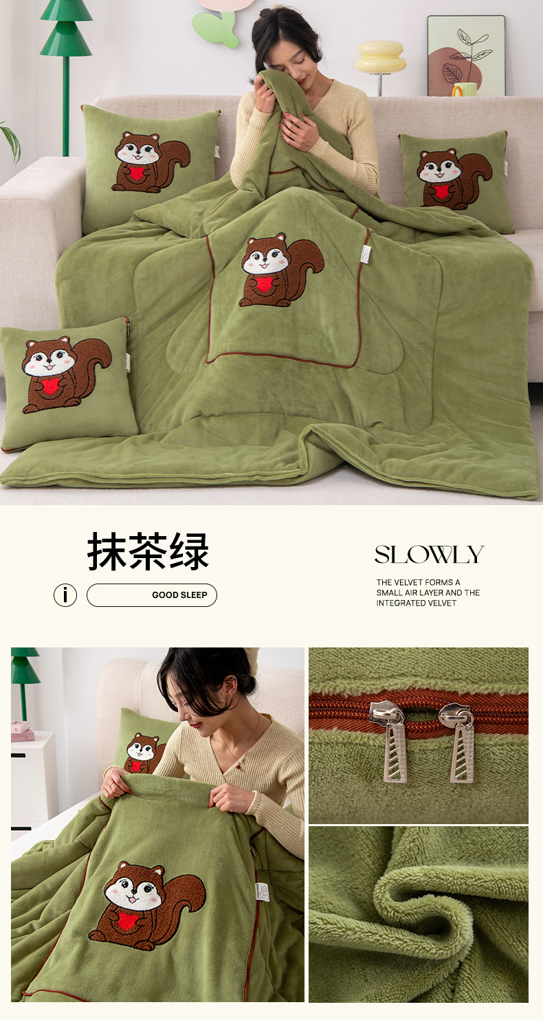 (总)宝马家纺(原梦童画) 2024新款牛奶绒加厚“哈吉米”卡通造型抱枕被,豆沙粉,橄榄绿,高级黑,天空蓝,雾霾蓝,香芋紫