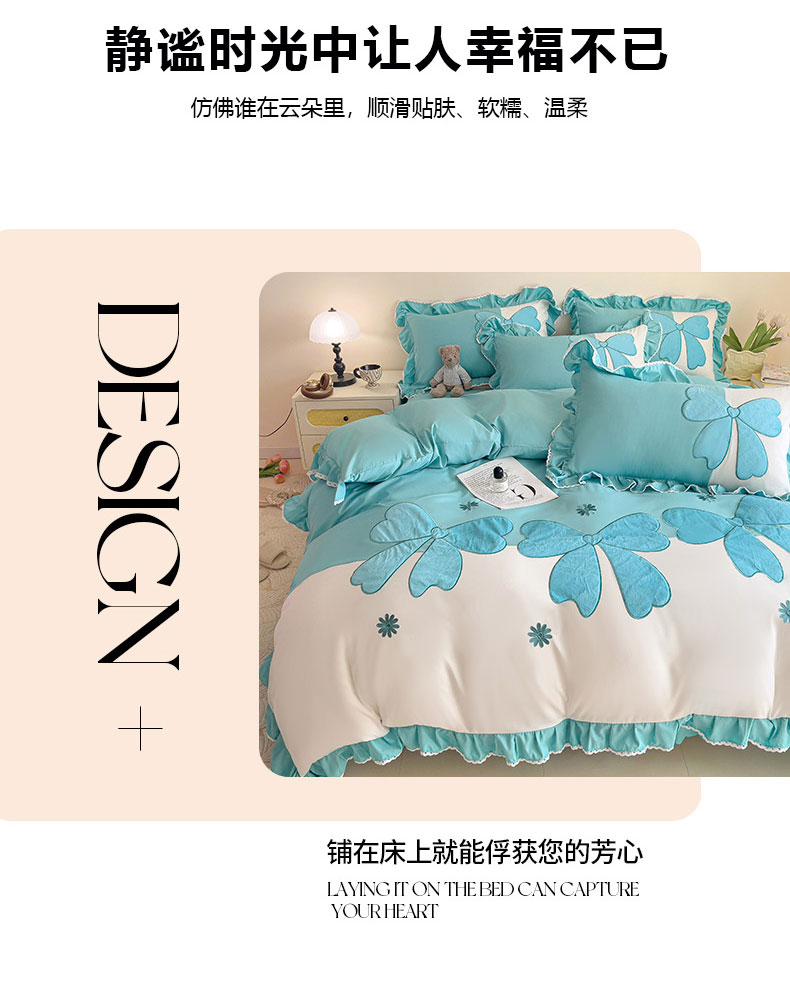 (总)意尚风情 2023新款天丝提花蕾丝刺绣四件套,薄荷绿,宾利兰,豆沙,高级灰,格调灰,姜黄,墨绿,少女粉,香芋紫,雅绿