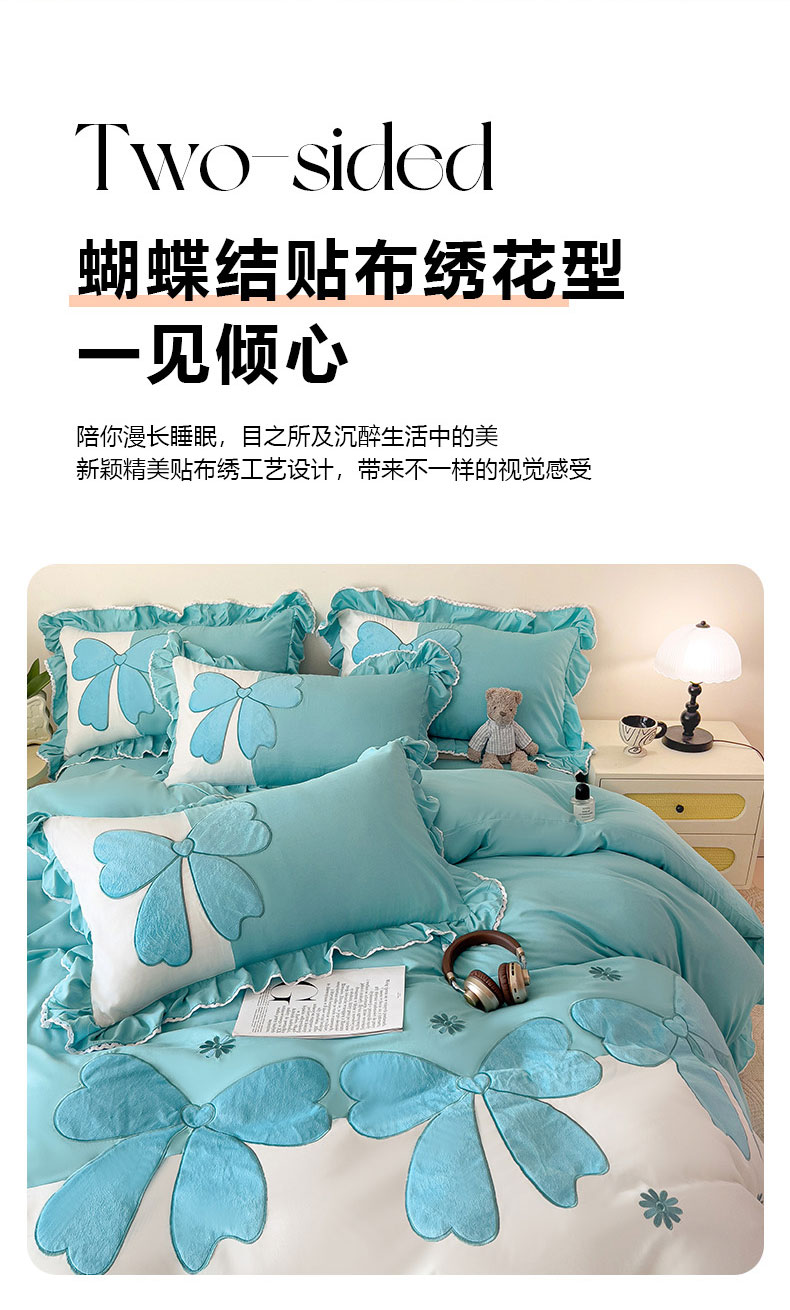 (总)意尚风情 2025新款高定贴布绣水洗磨毛绣花四件套,蝶语-薄荷绿,蝶语-粉色,蝶语-湖水绿,蝶语-黄色,蝶语-蓝色,蝶语-星空灰,蝶语-紫色