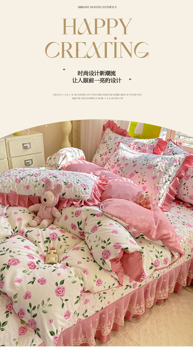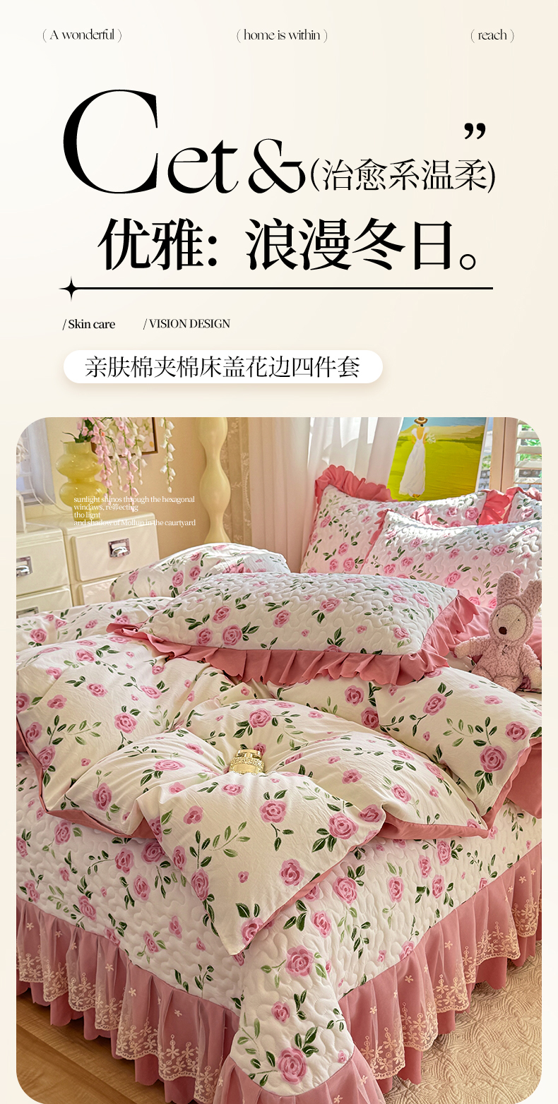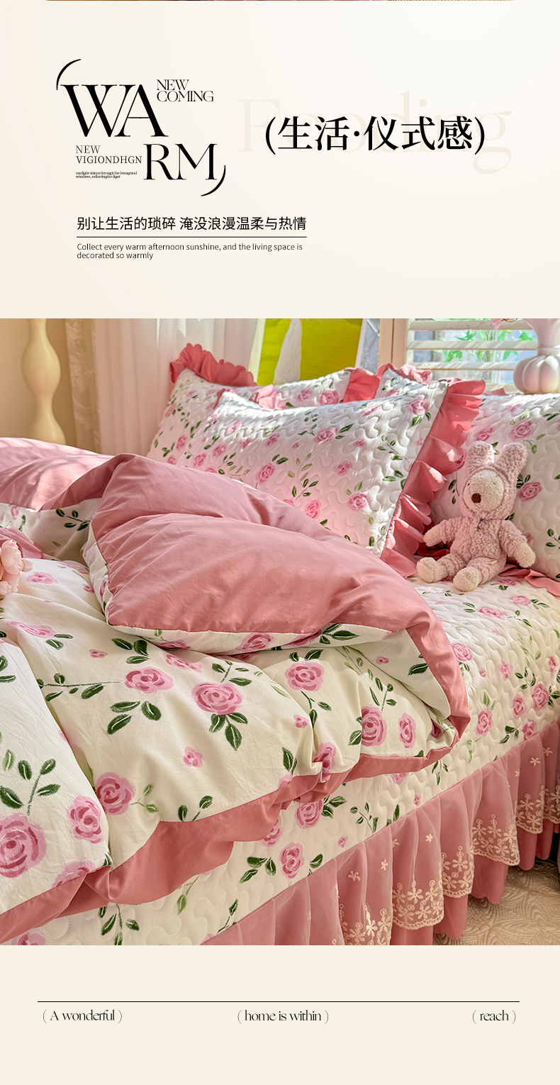 当前位置: 91家纺网 > 商品网购 > 床品套件 > 四件套 > 其它四件套 > 九诺家纺 2025新款韩式云朵棉印花床盖四件套 满庭香-粉