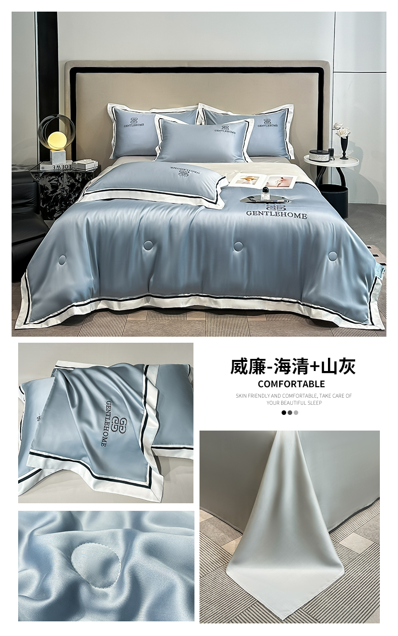 笙意家纺2025新款水洗真丝夏被 威廉-海清+山灰