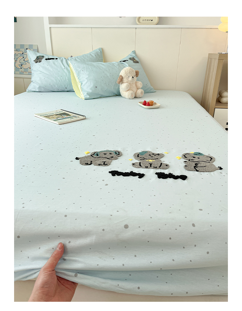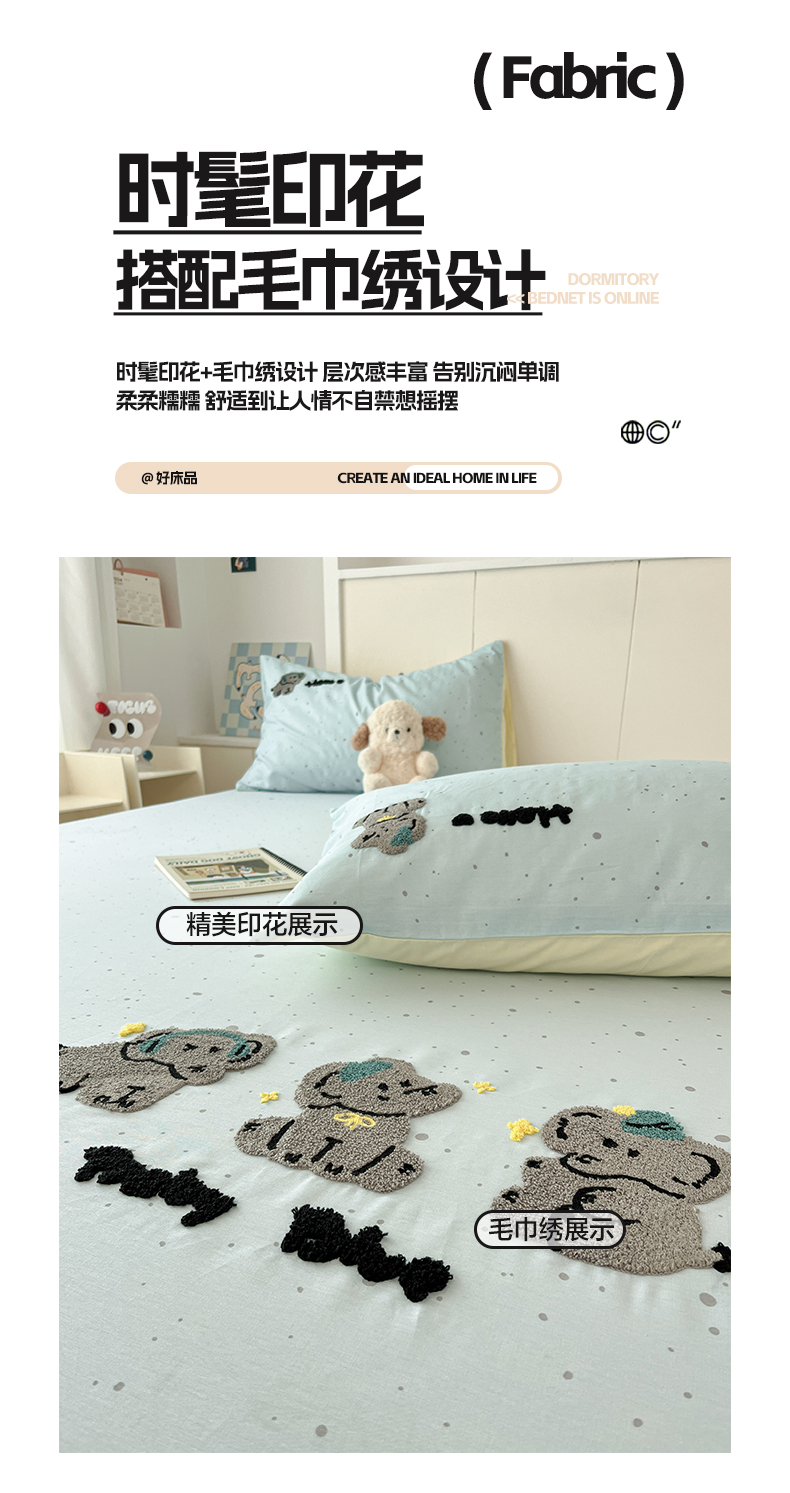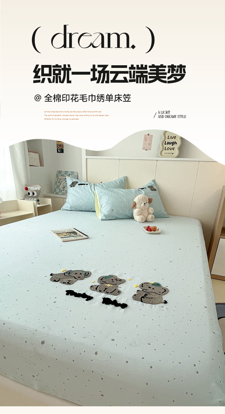 商品名称:雅居纺家纺 2025春夏新款全棉纯棉毛巾绣系列单床笠 床笠单件 幸福一家人