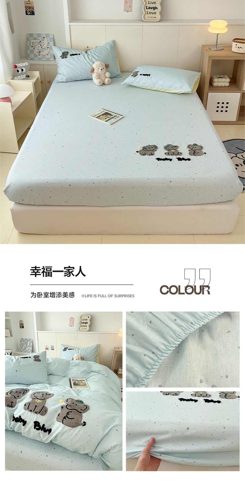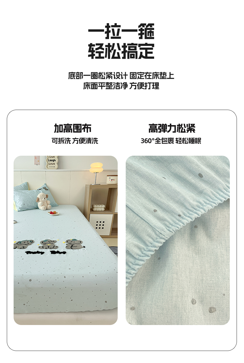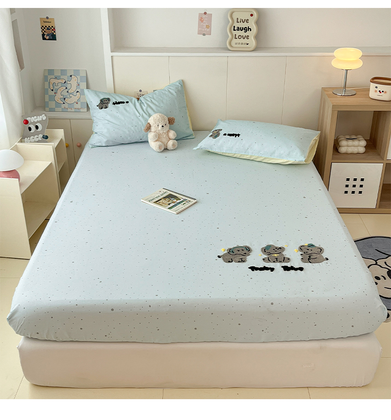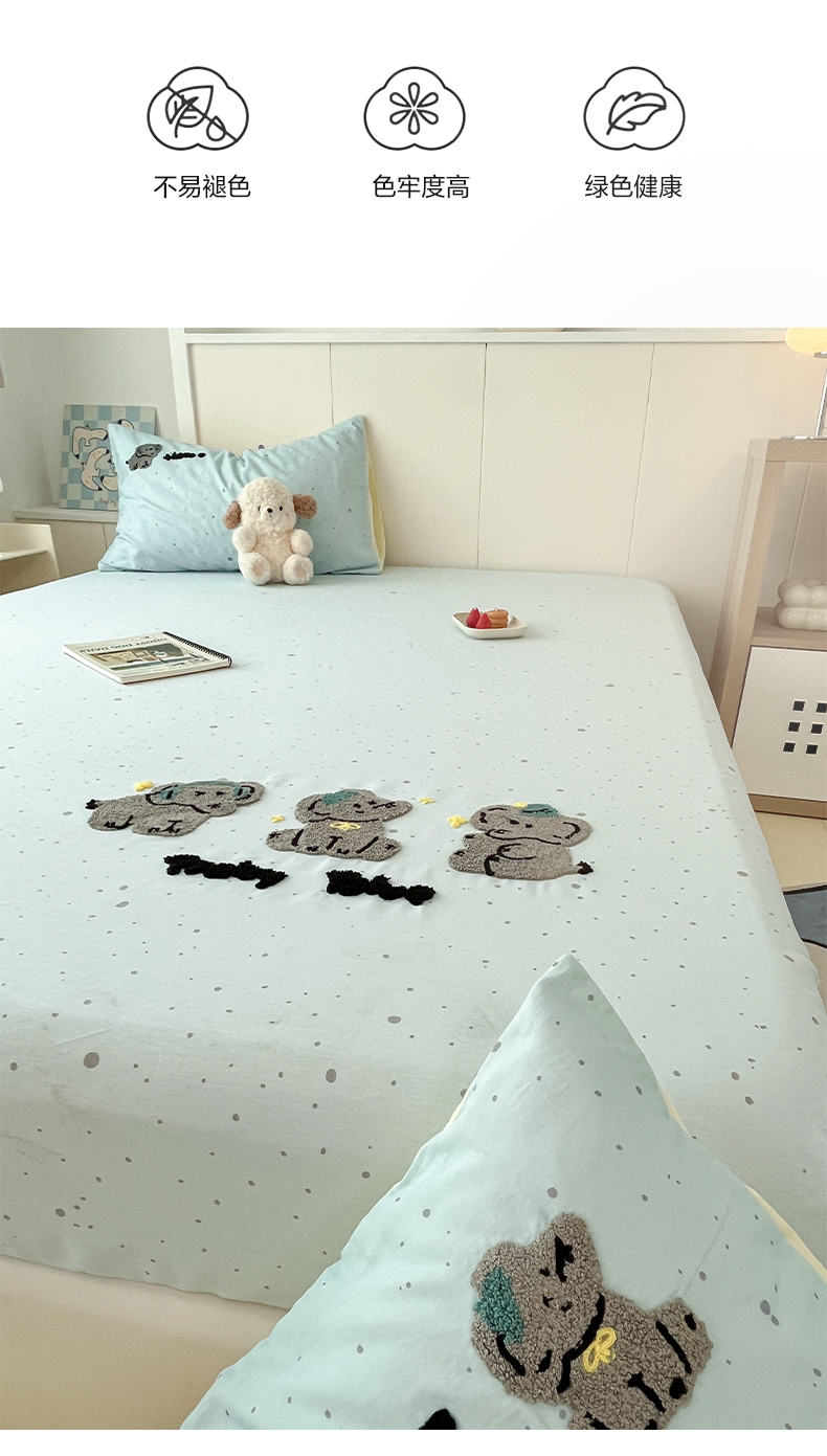 商品名称:雅居纺家纺 2025春夏新款全棉纯棉毛巾绣系列单床笠 床笠单件 幸福一家人
