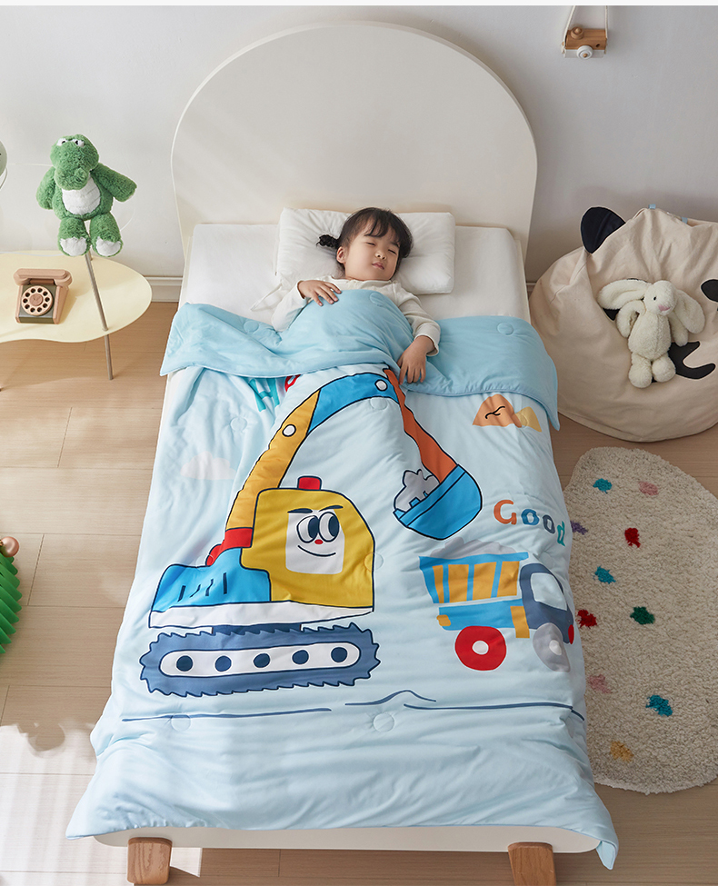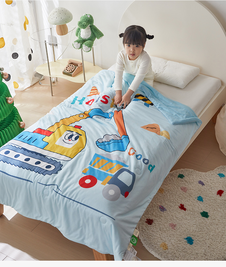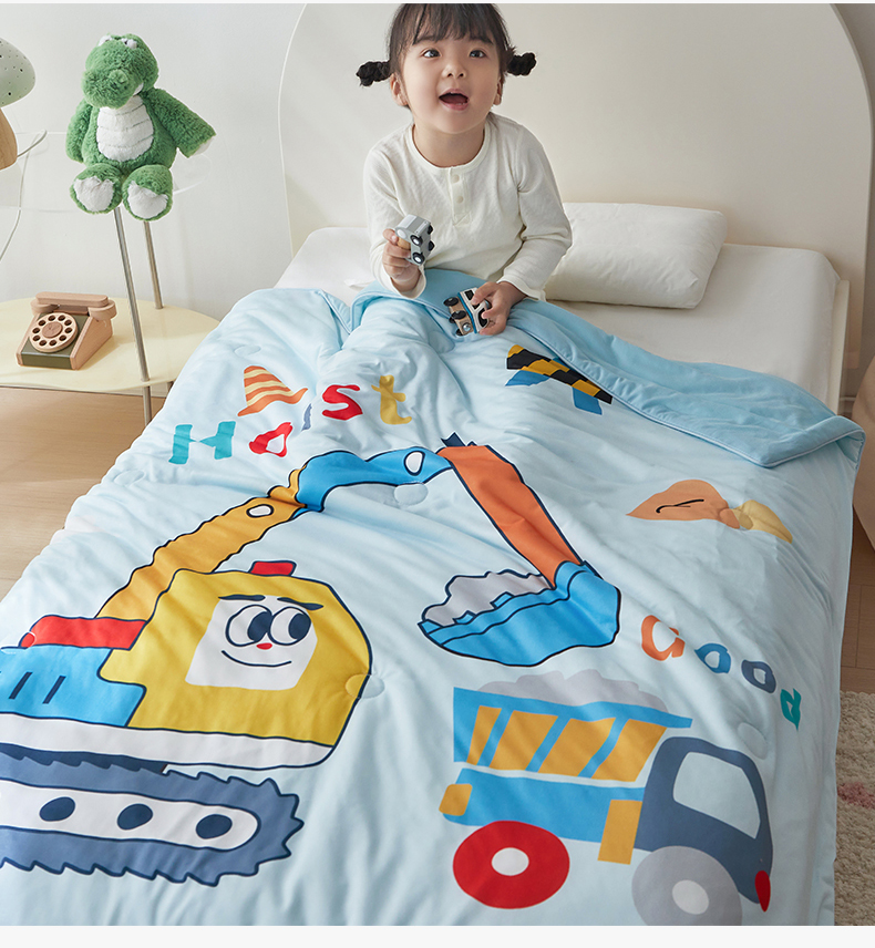 荷马之梦 2025新款卡通数码印花大版针织棉儿童夏被-绵绵系列 工程小车队